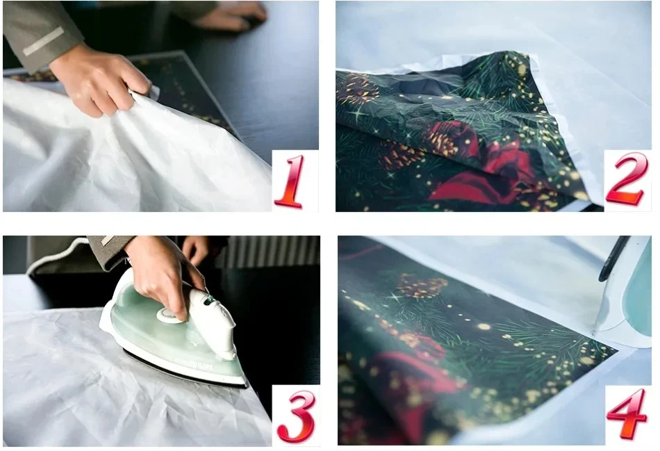 Passe a ferro a parte de trás (não o lado da imagem) com temperatura baixa para remover facilmente o vinco. Para evitar possíveis danos ao vapor, coloque uma camada de pano seco entre o pano de fundo e o ferro