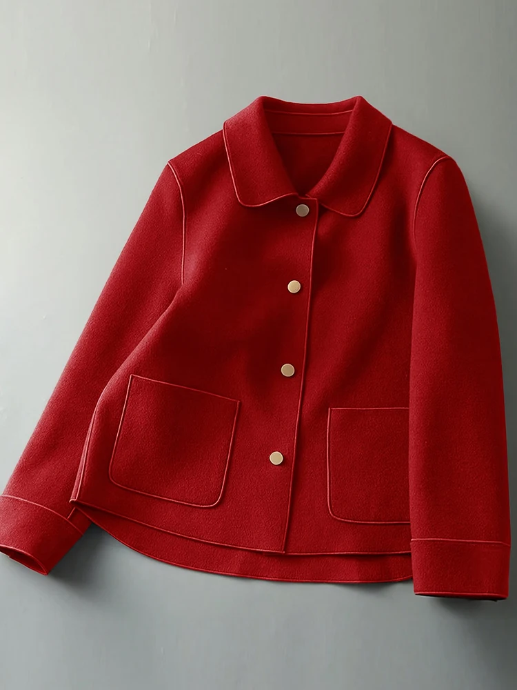 Clássico sólido curto casacos de lã para mulher outono inverno quente mulher roupas botão acima casaco feminino outfits novo em outerwears
