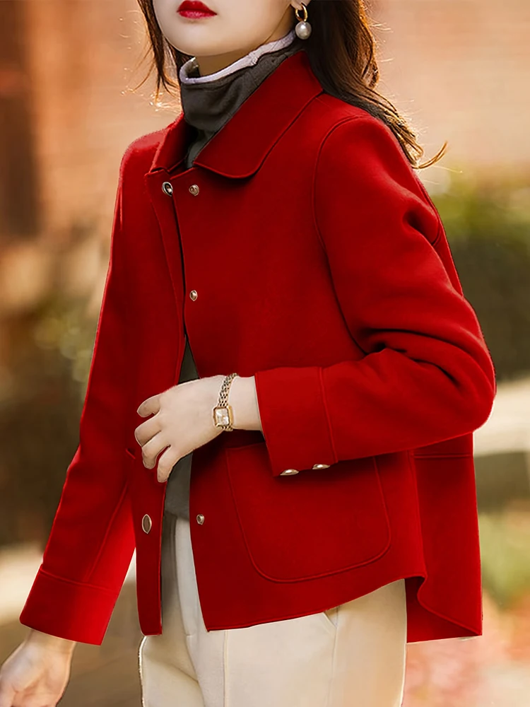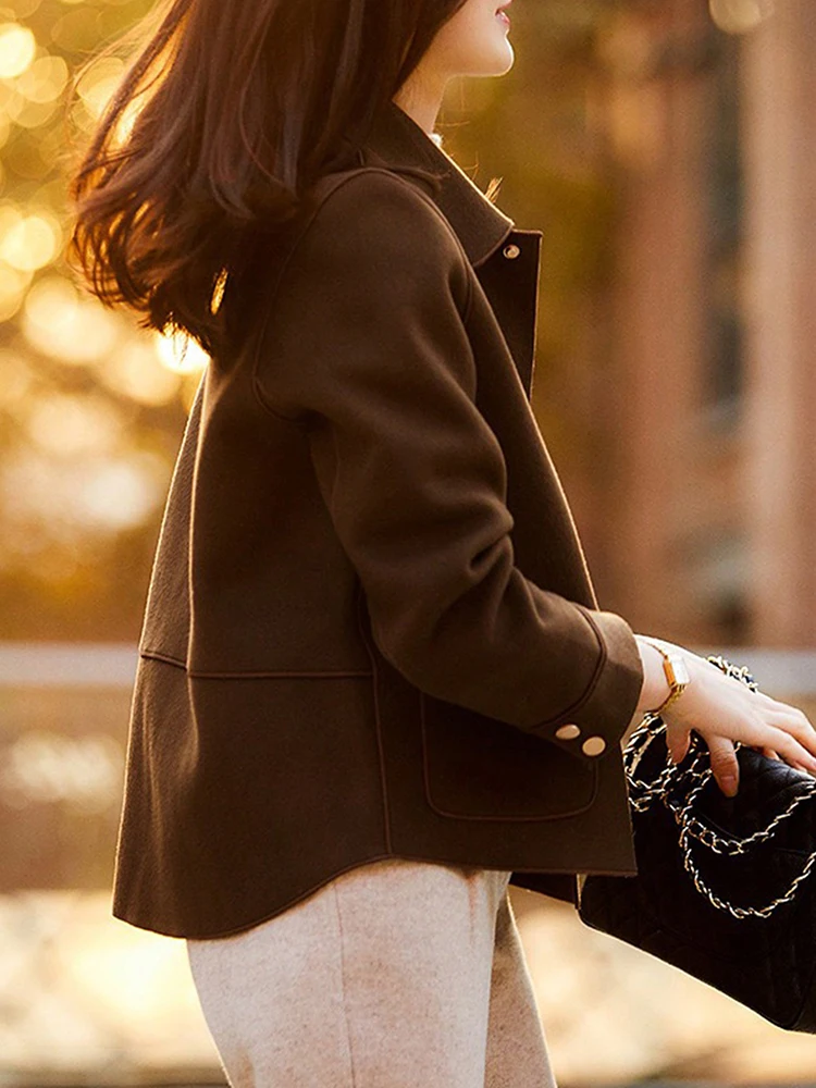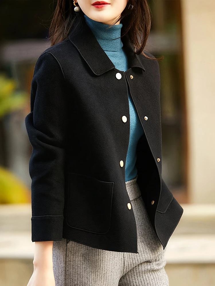 - > Clássico sólido curto casacos de lã para mulher outono inverno quente mulher roupas botão acima casaco feminino outfits novo em outerwears