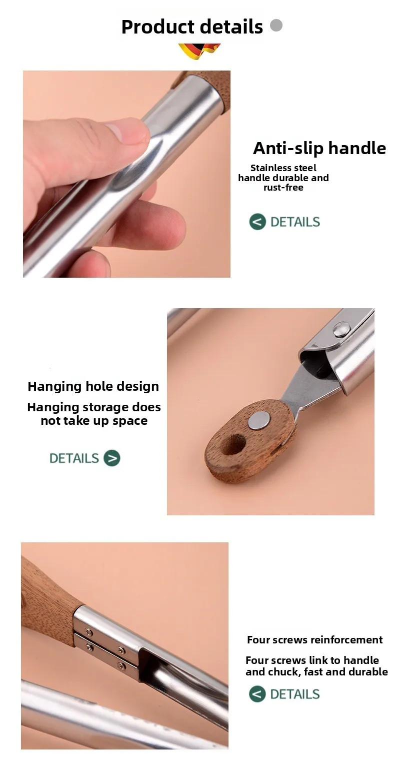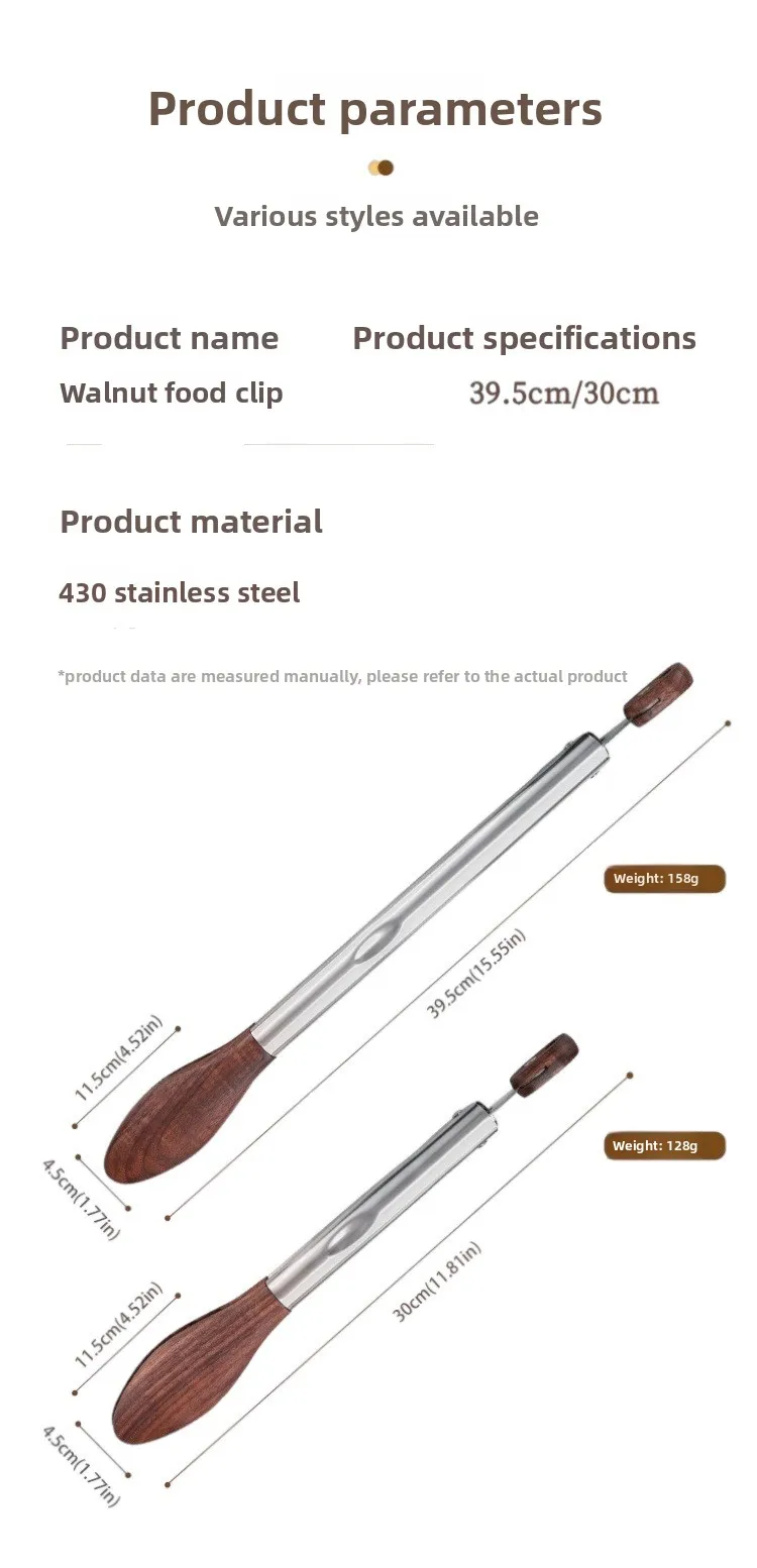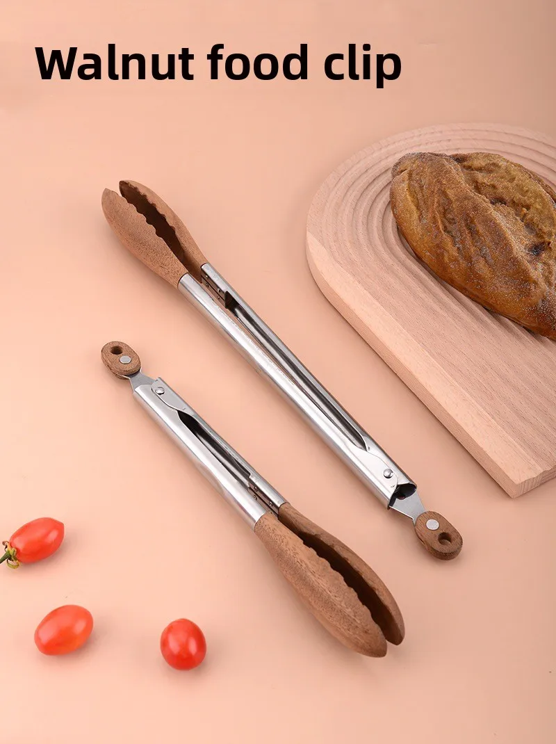 Clipe de comida de nogueira clipe de comida de aço inoxidávelBBQPadeiras de churrasco, pinças de churrasco, cabeça de flor de ameixa