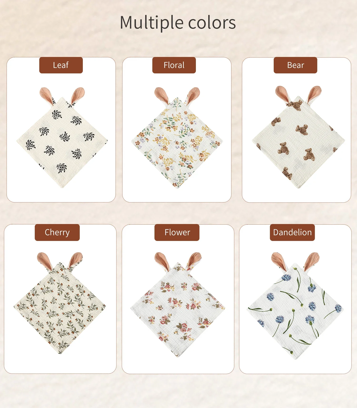- > Cobertor de segurança para bebês com design de coelho, lenço multiuso de musselina de algodão para calmar a saliva e toalhinha macia para recém-nascidos