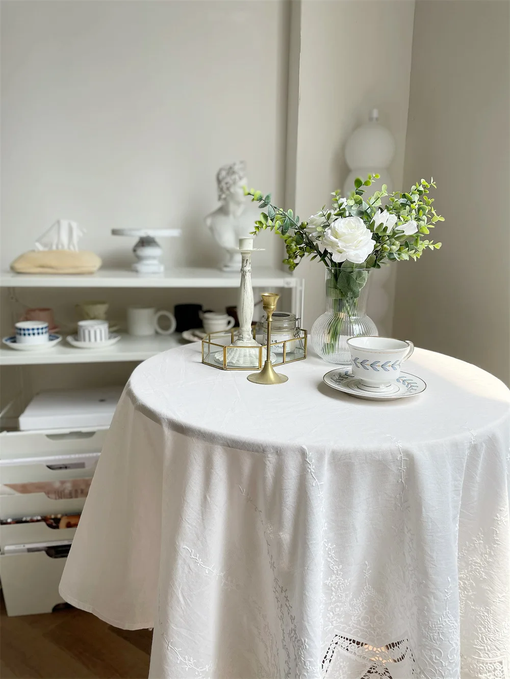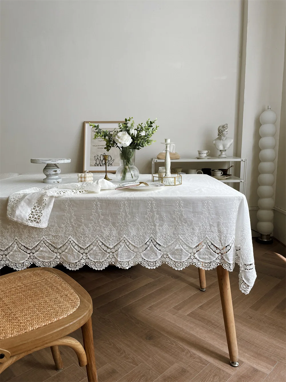 Cobertura De Mesa Luxuosa Com Bordado De Flor De Renda, 100% Toalha De Mesa De Algodão, Decoração De Festa De Casamento, Francês Branco