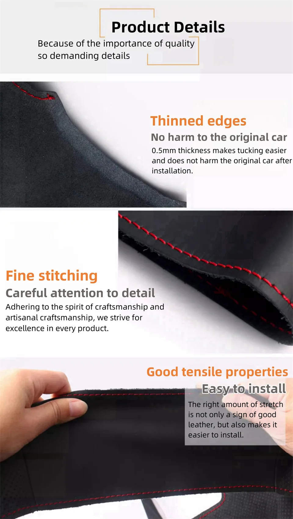 Esta capa personalizada foi submetida a testes e refinamento completos para garantir um ajuste perfeito para o seu volante. Além disso, melhora significativamente a aparência do volante após a instalação.