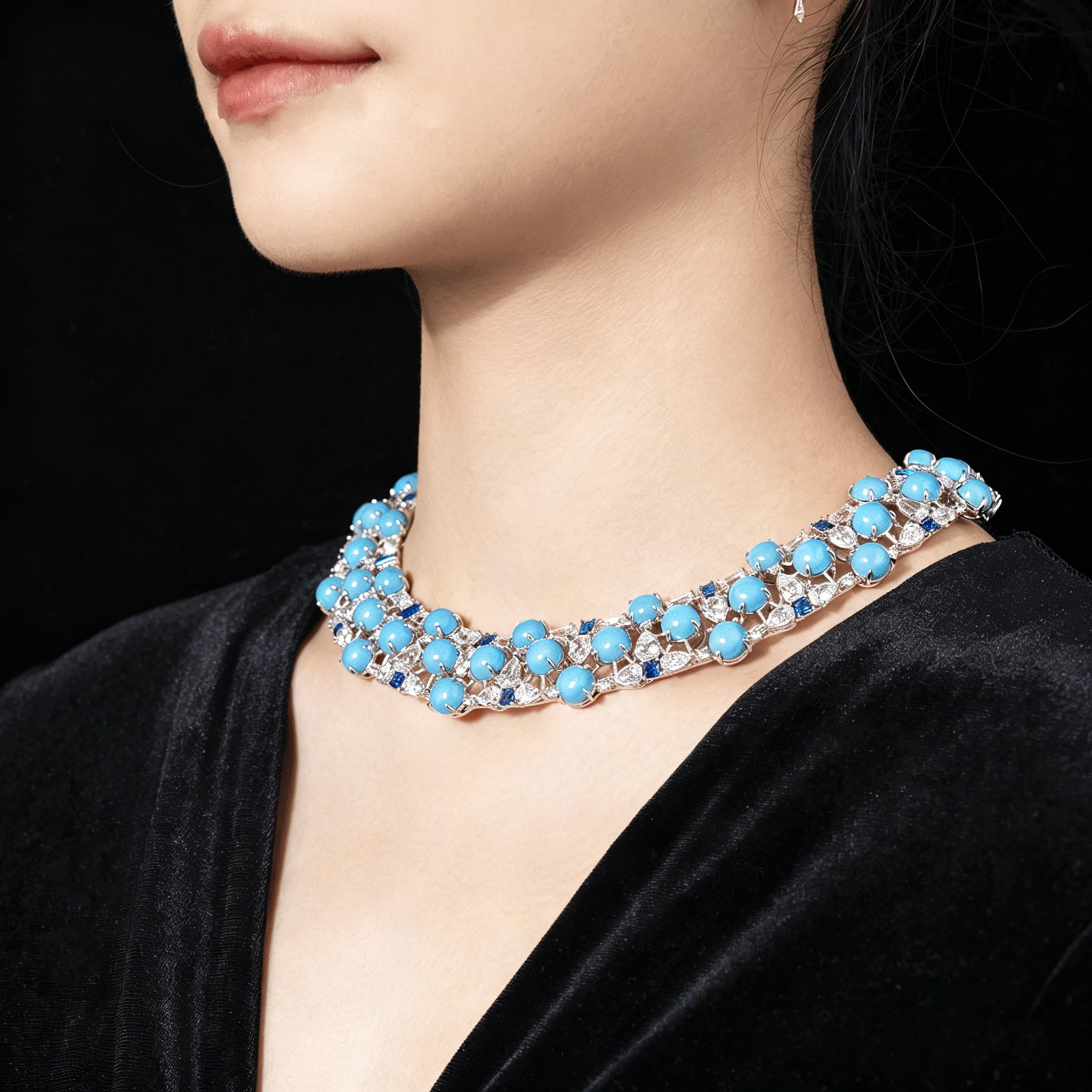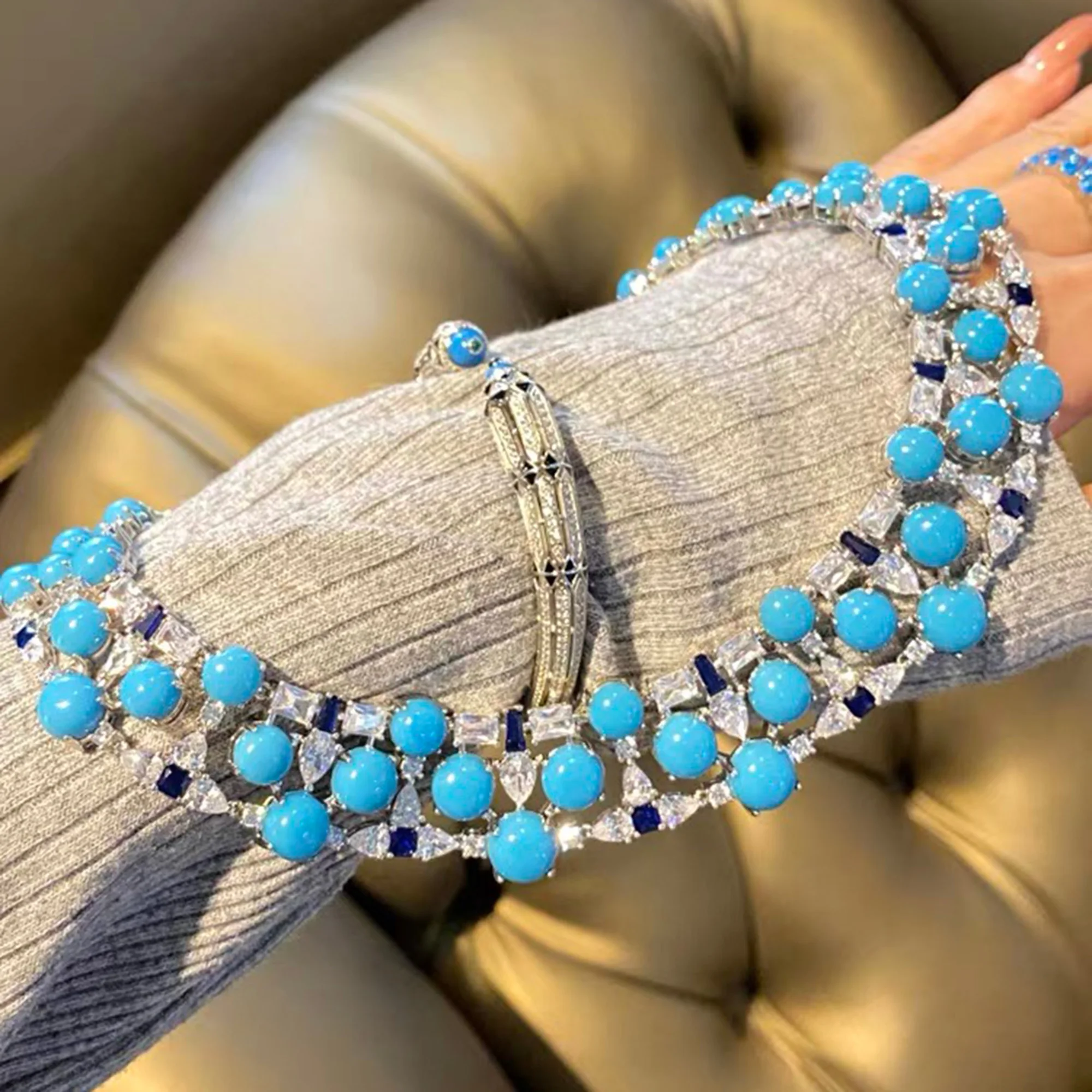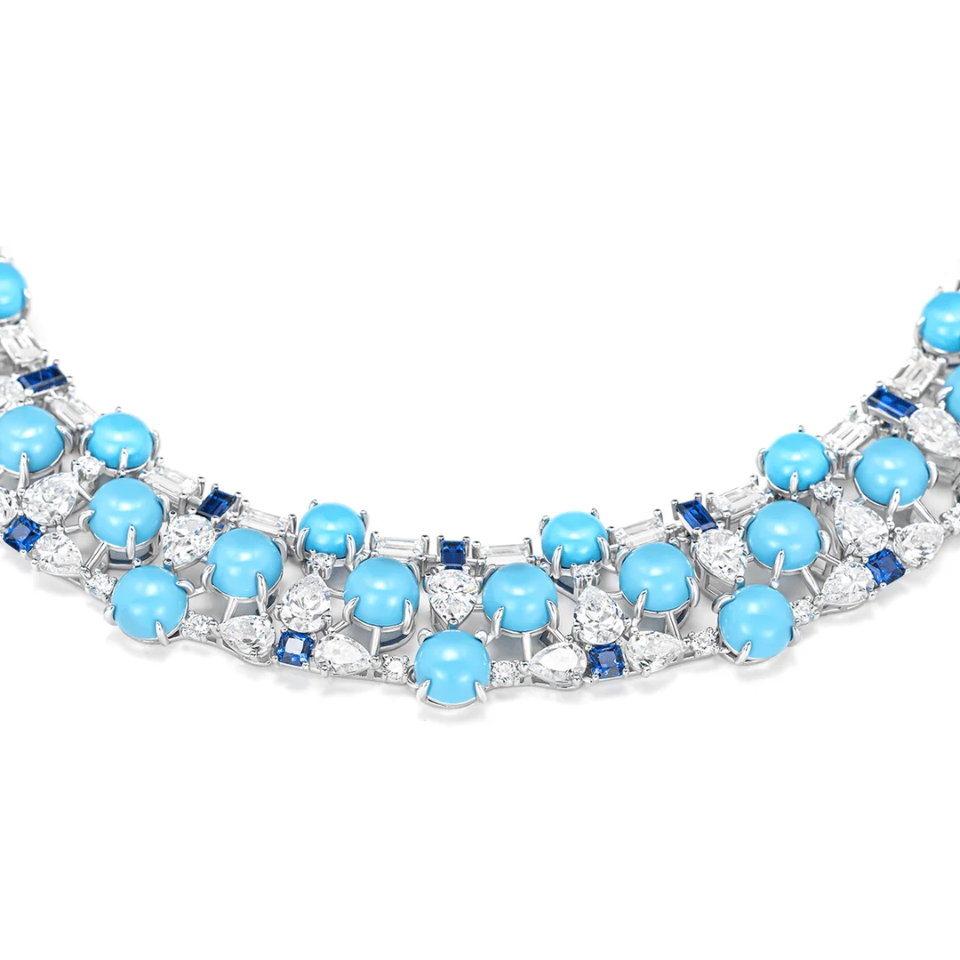 Colar de Turquesa Artificial Luxuoso, Joia Fina em Prata Esterlina 925, Presente para Casamento e Festa de Coquetel para Mulheres