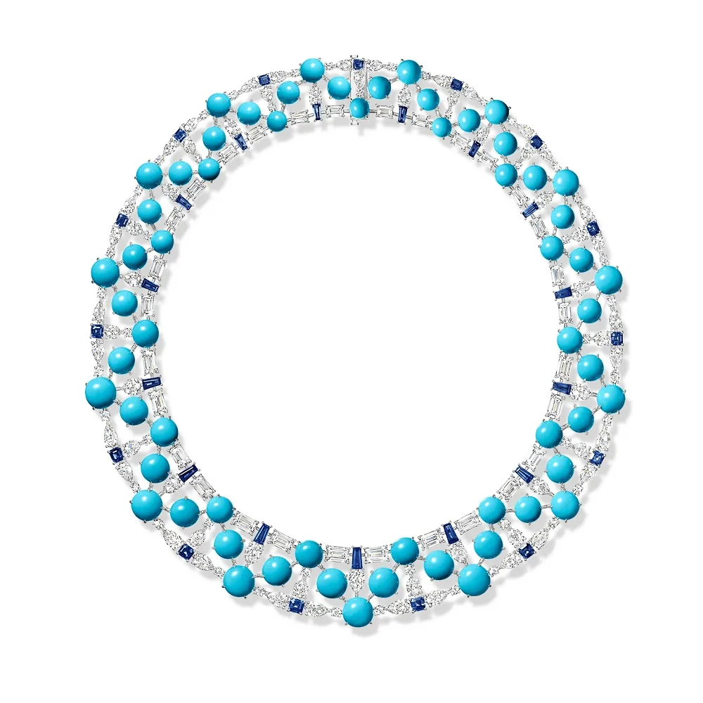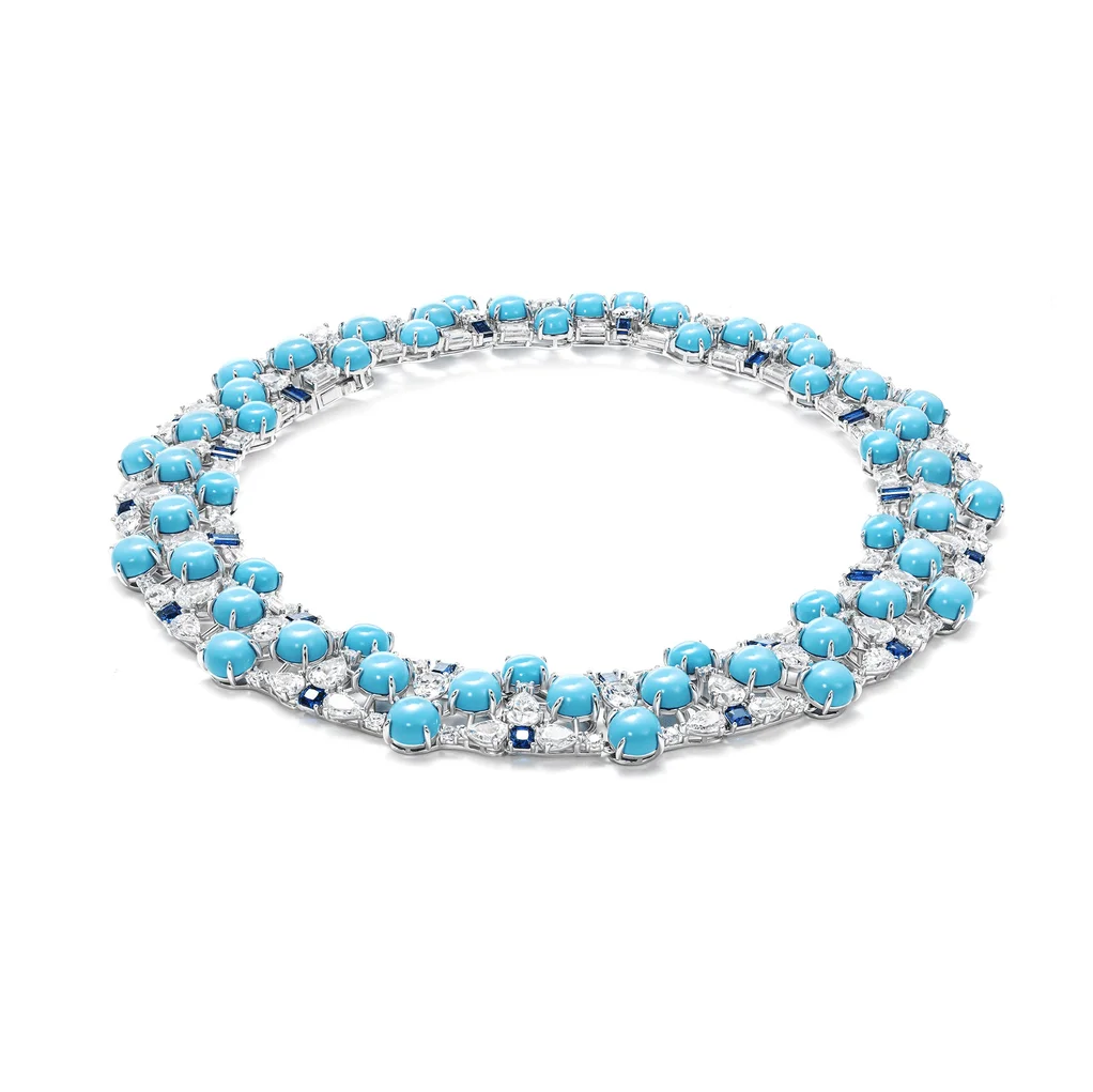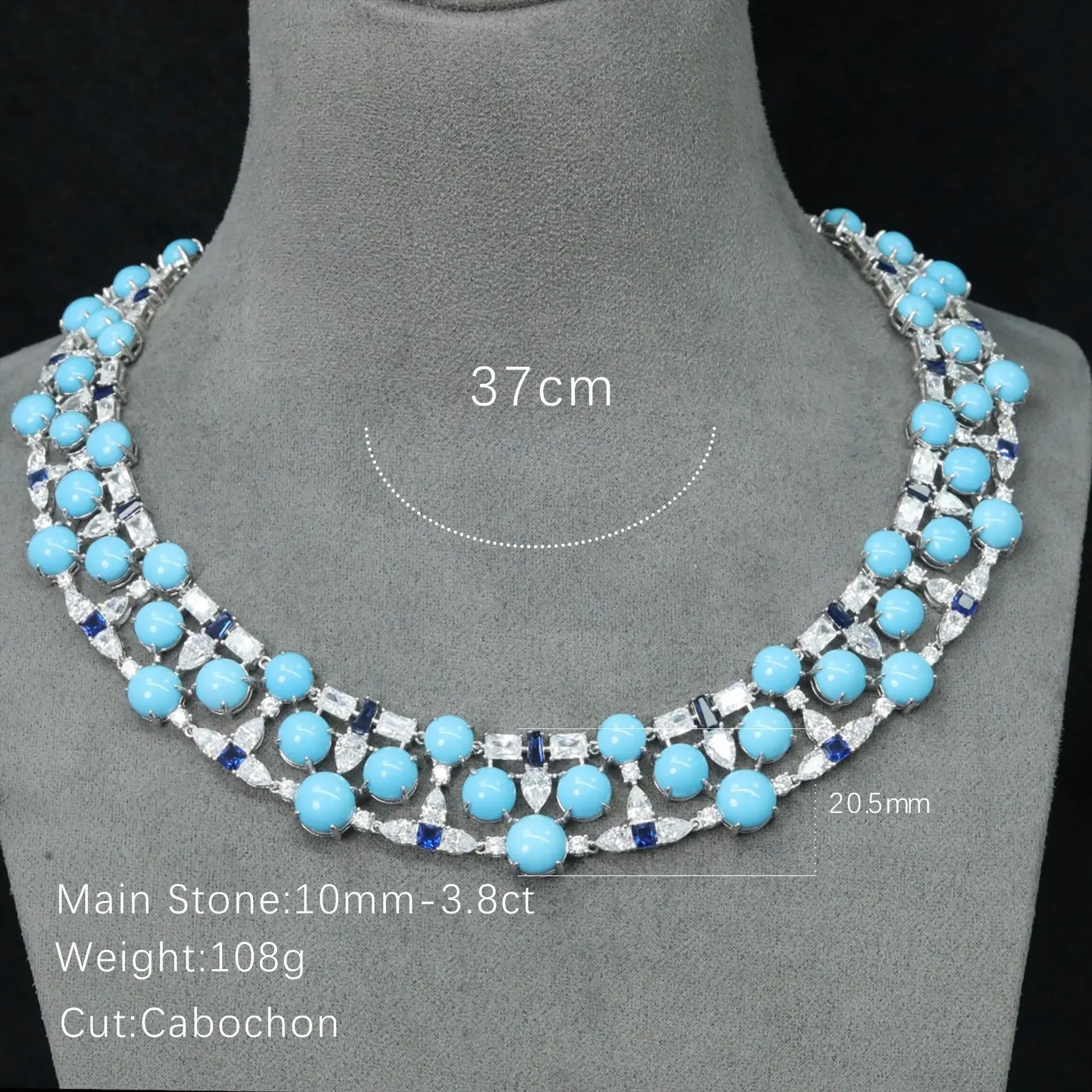 As pedras turquesa artificiais adicionam um toque de cor e brilho, realçando o apelo estético geral do colar.
