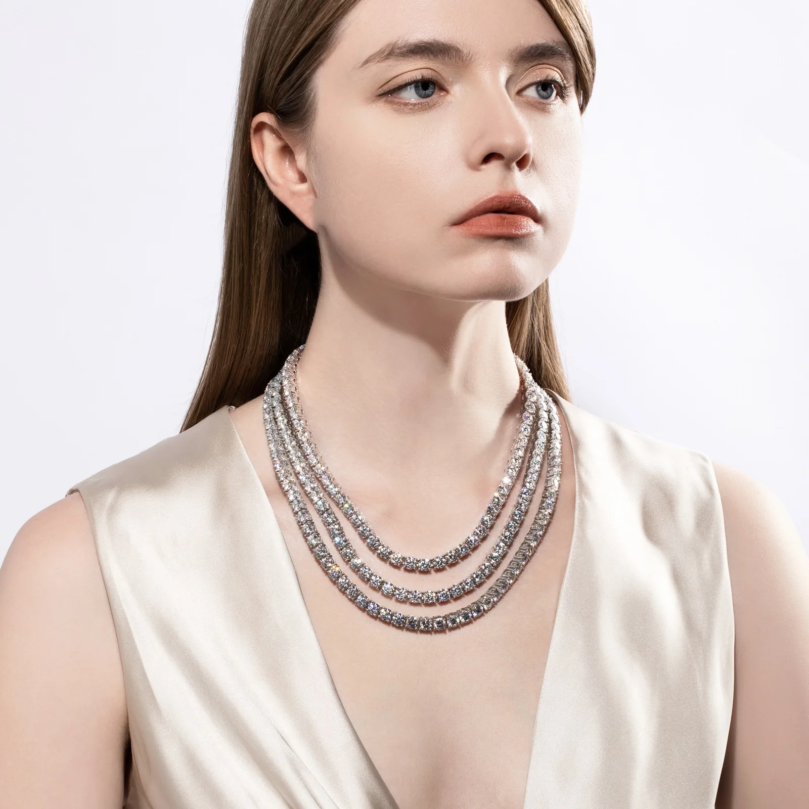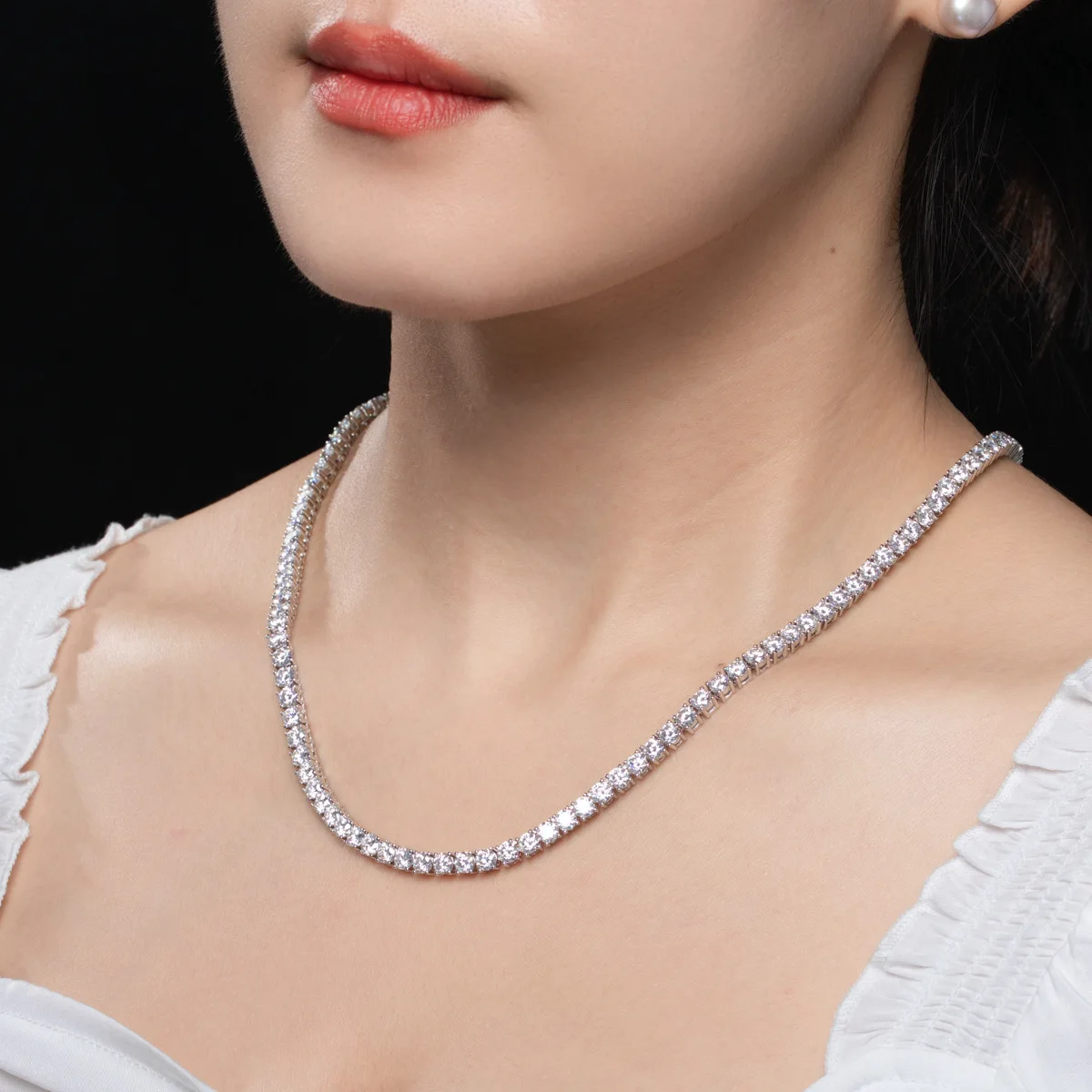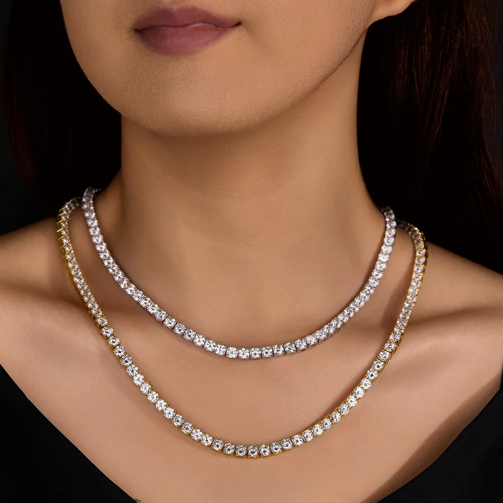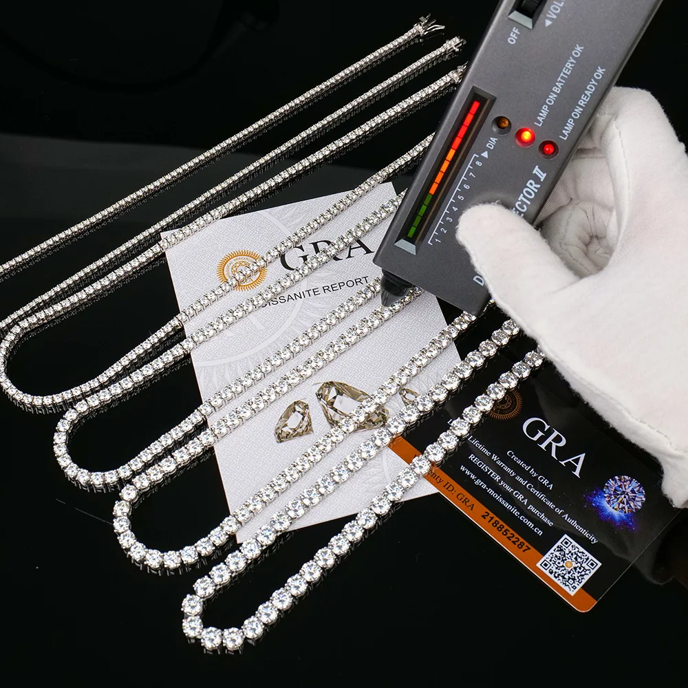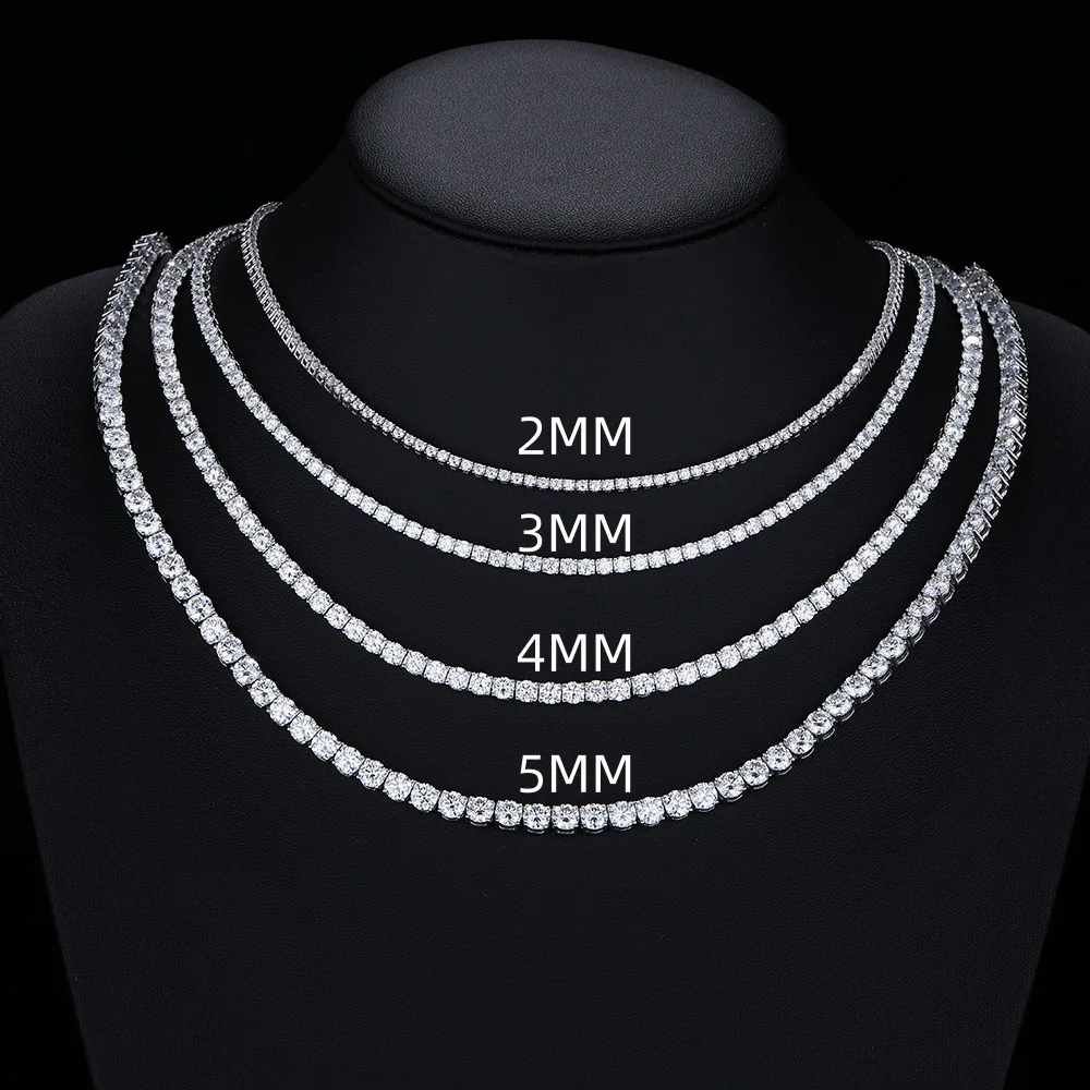 - > Colar Tennis de Moissanite GRA Certificado 3/4/5/6mm em Prata Esterlina 925 Sólida, Colares Tennis de Diamante para Mulheres e Homens MS035