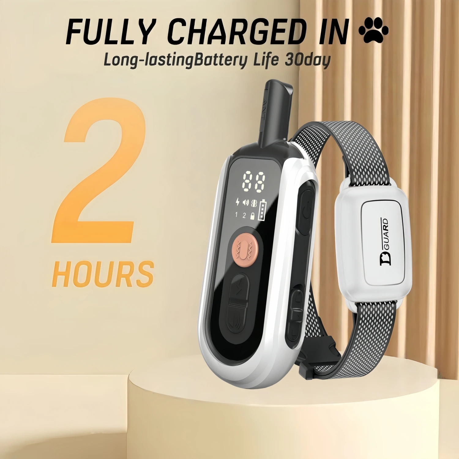 Features1: Can be trained/prevent biting, barking, and making noise/prevent getting lost