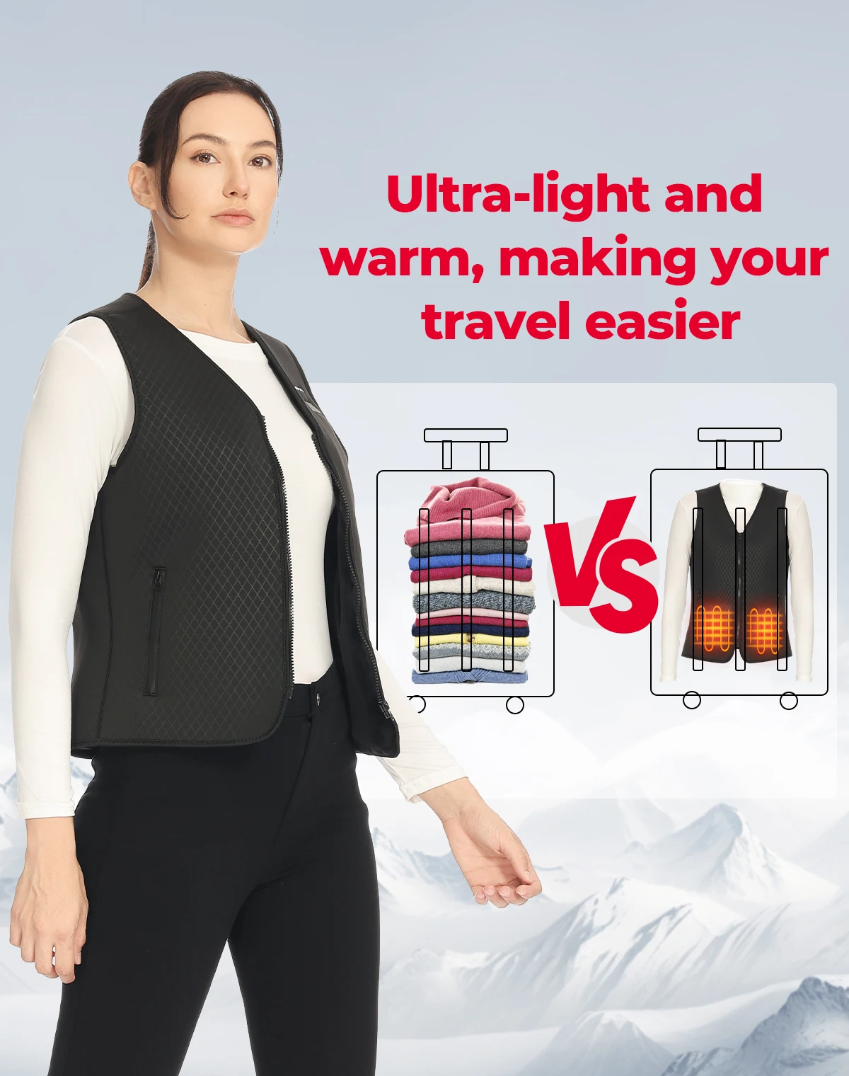 【Aquecimento de 6 zonas】 O colete aquecido está equipado com 6 zonas de aquecimento (estômago 2 e costas 4), proporcionando calor de 360 graus.