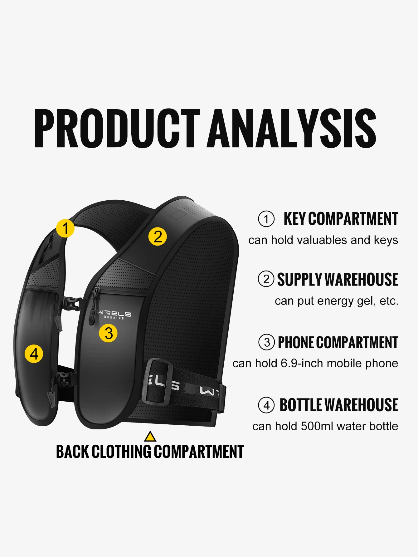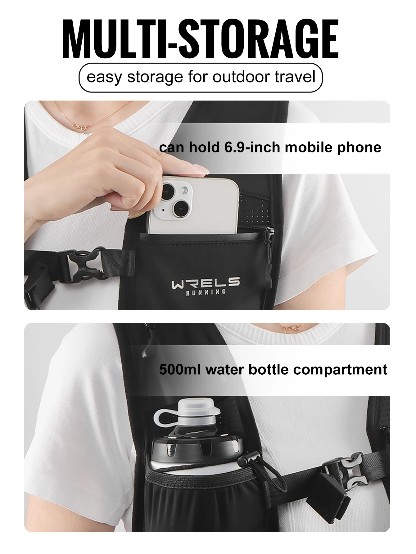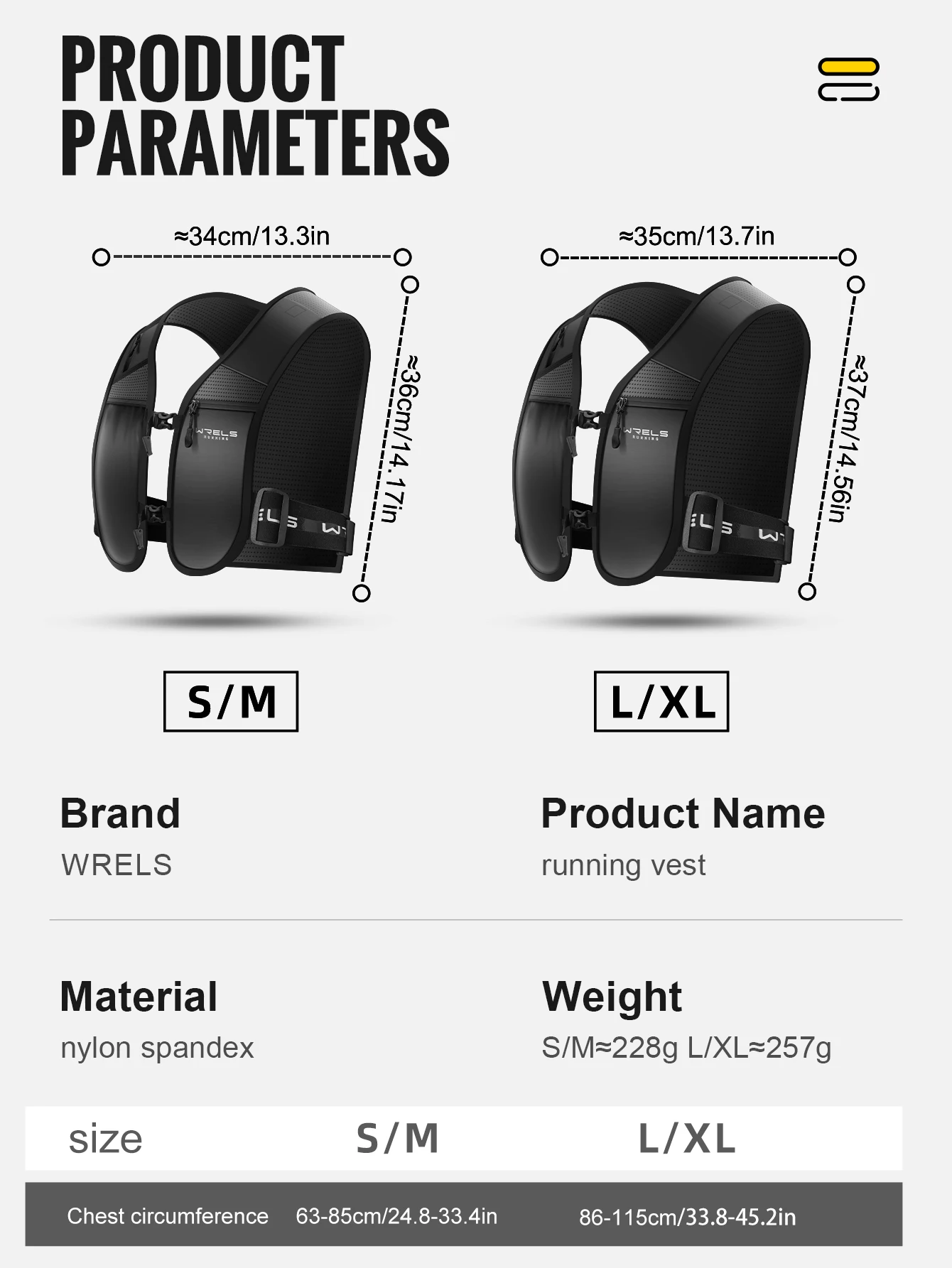 Colete de hidratação para corrida WRELS, leve e respirável, pacote de corrida de maratona para homens e mulheres