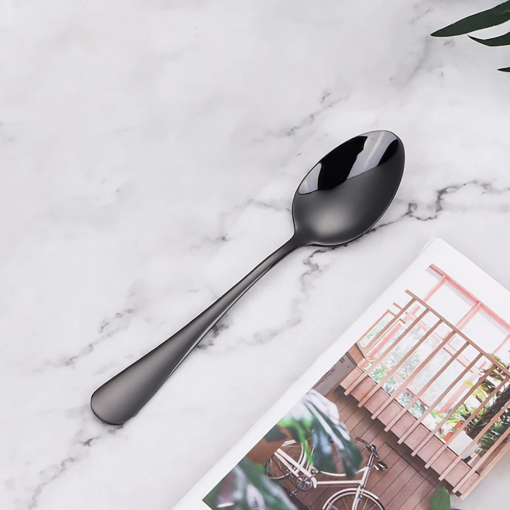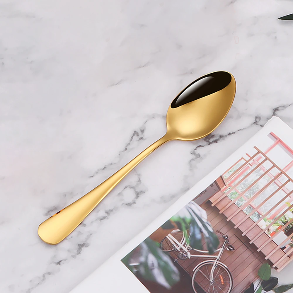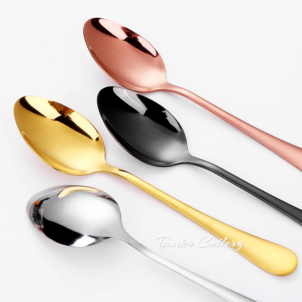 1.Colher de sobremesa em aço inoxidável de 4 cores, polimento espelhado.