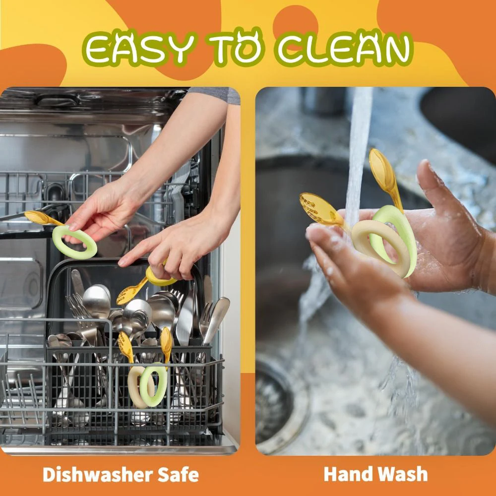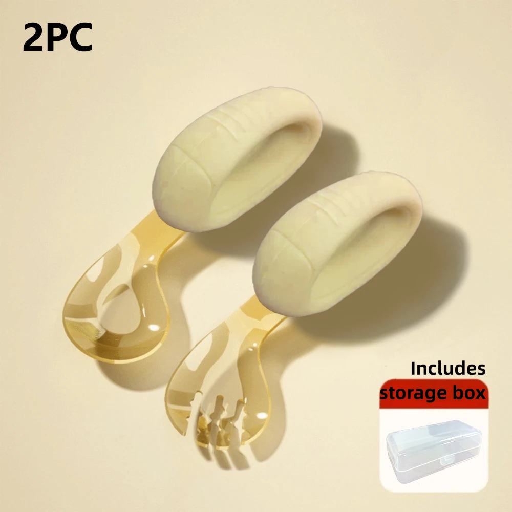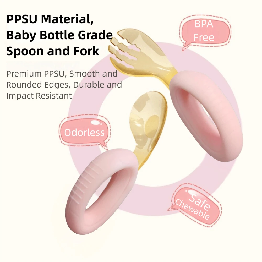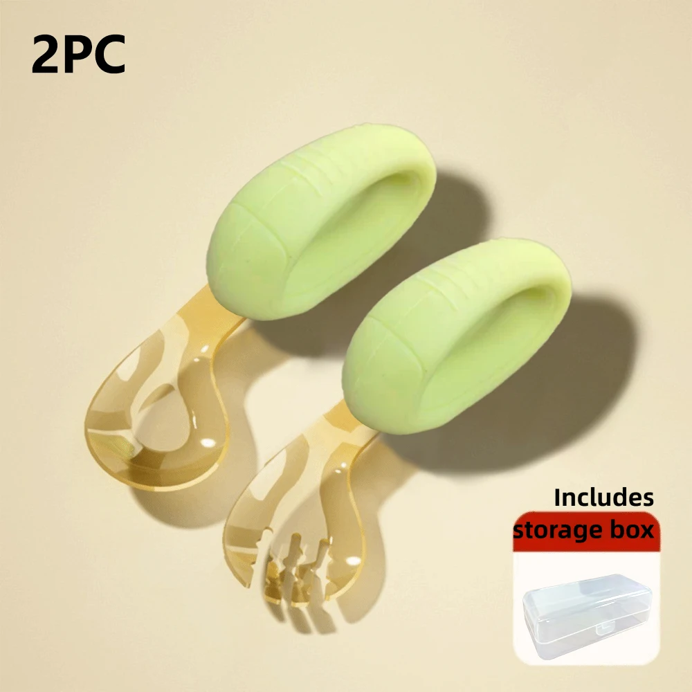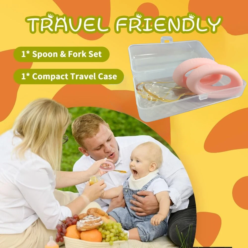 - > Colher e garfo para crianças com alça de silicone dobrável e caixa de armazenamento de cabeça PPSU para alimentação automática do bebê
