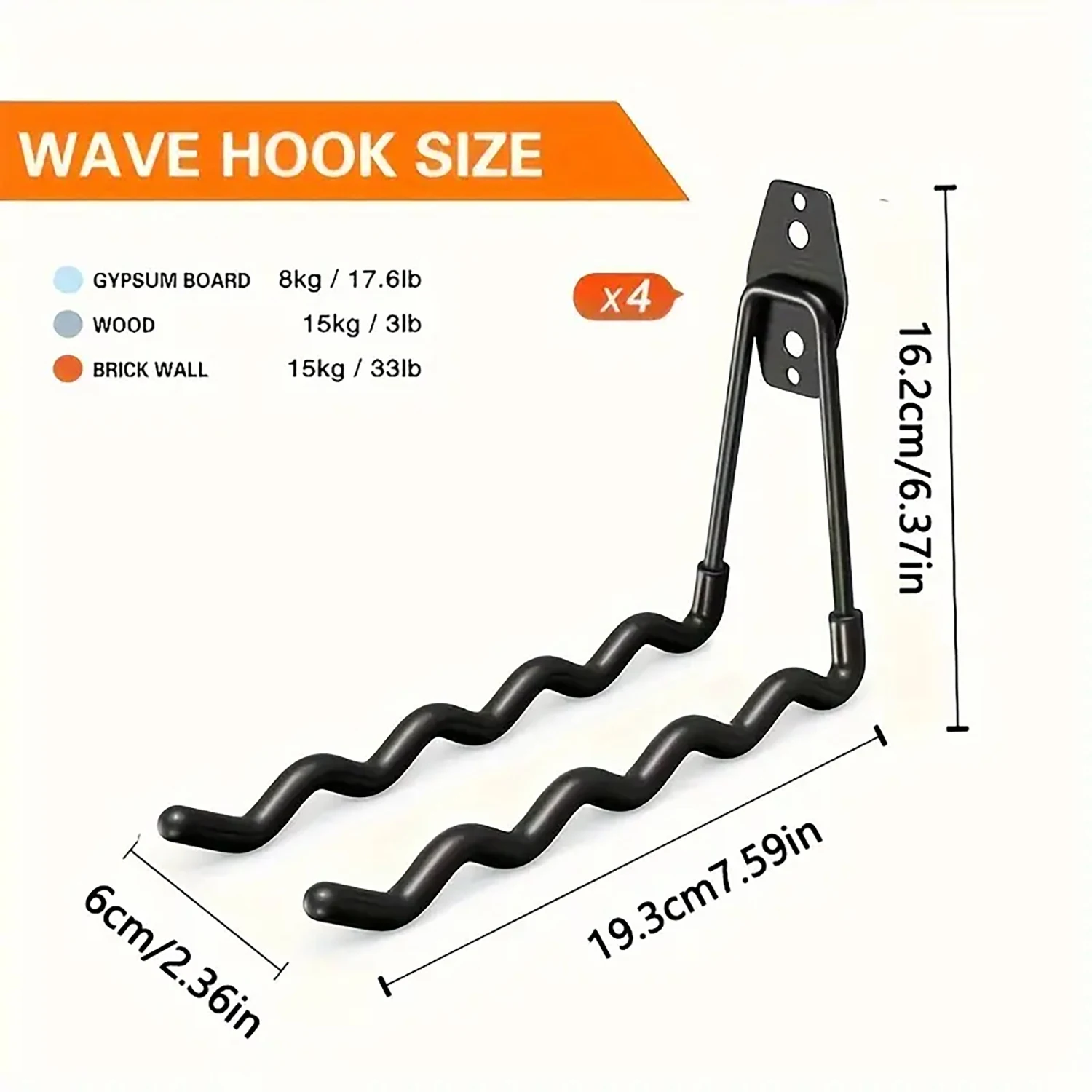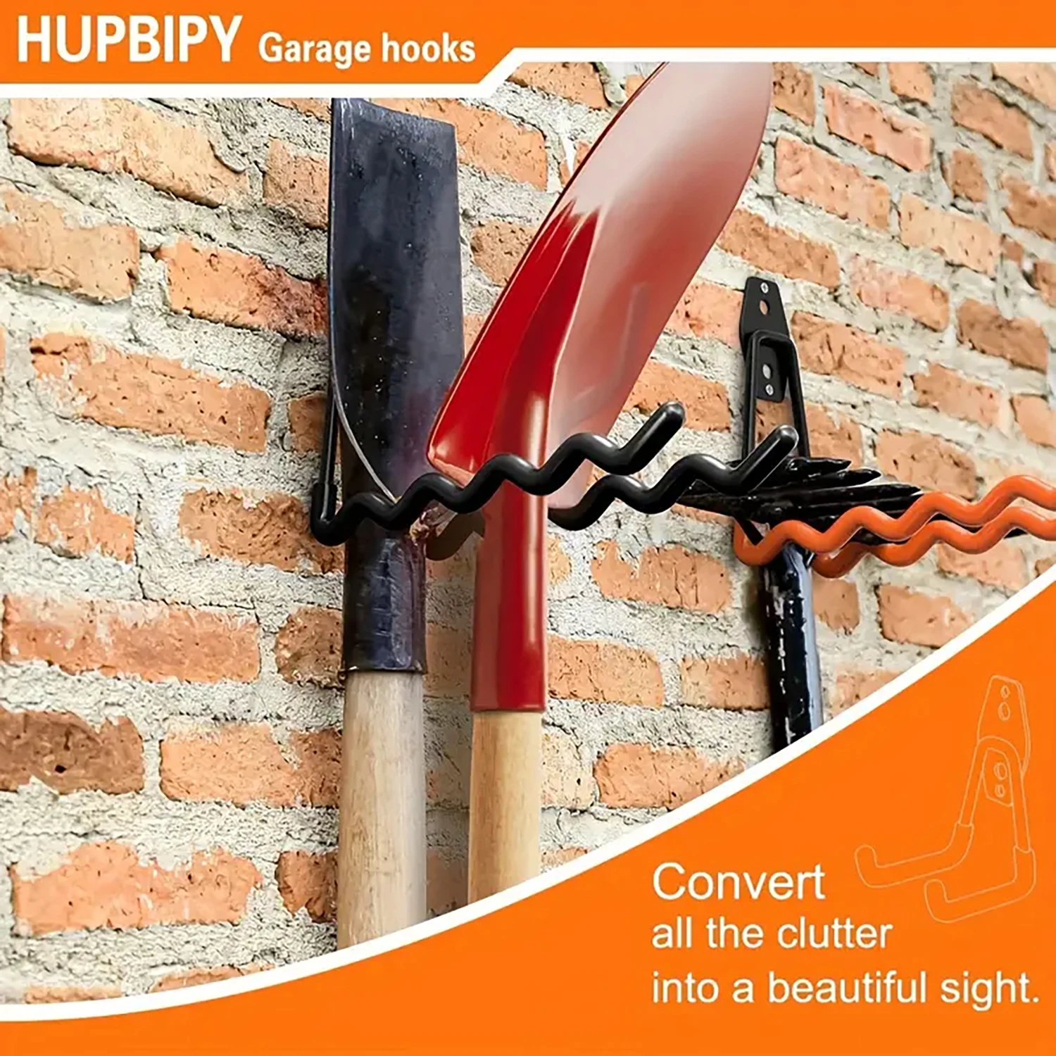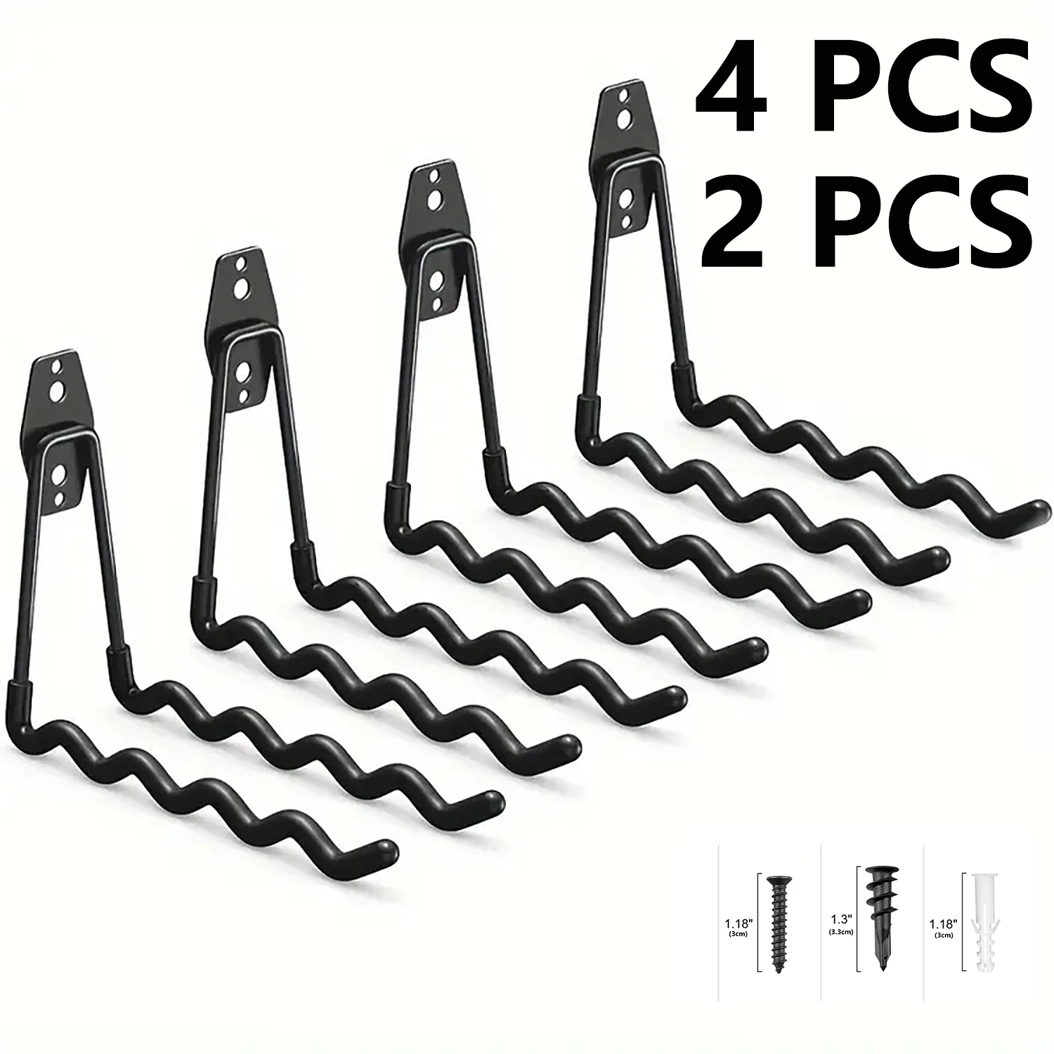 Conjunto de 2 peças/4 peças de ganchos de garagem de metal resistentes, rack de armazenamento de parede para escadas, ferramentas de jardinagem, equipamentos esportivos e mangueiras, inclui hardware de montagem, sem necessidade de eletricidade.