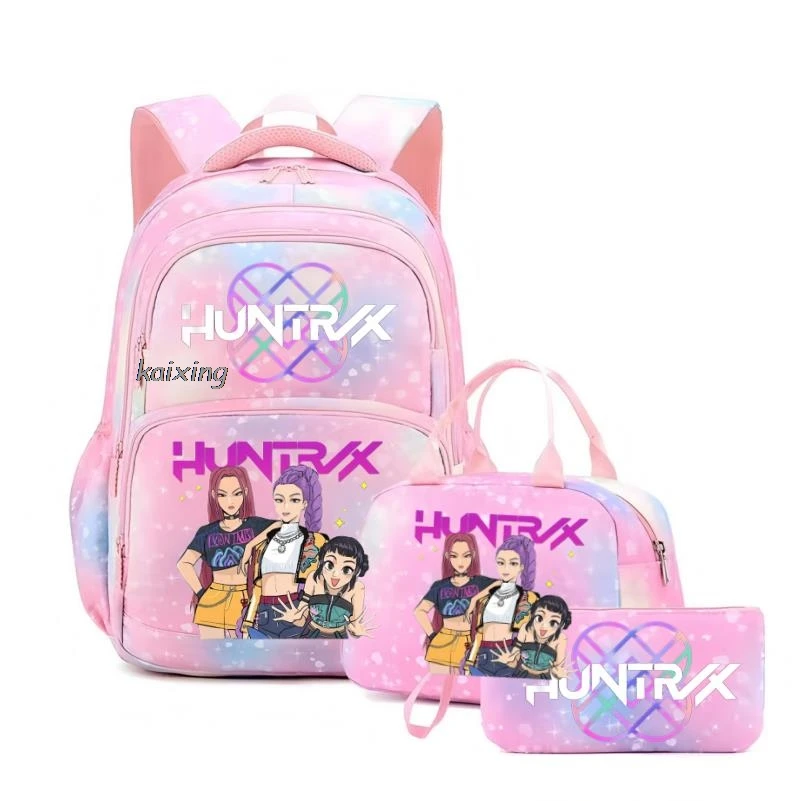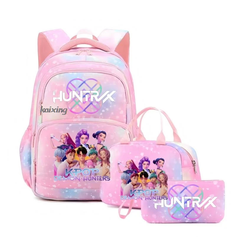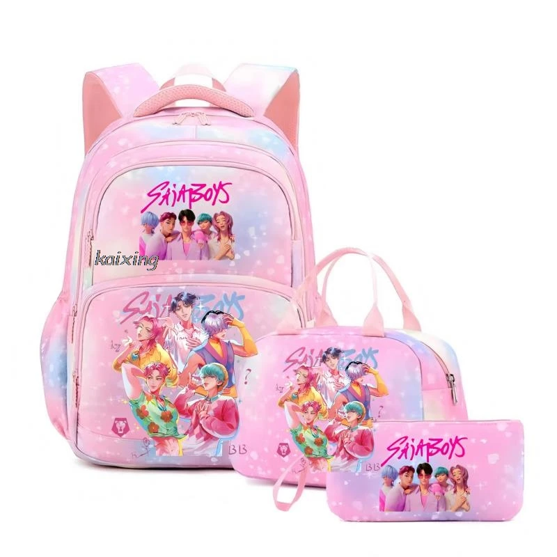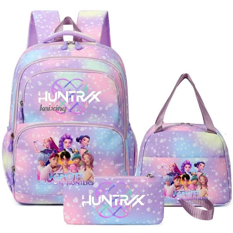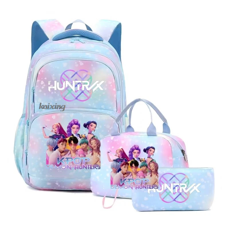 - > Conjunto de 3 Peças KPop Demon Hunters Saja Boys: Mochila Colorida com Lancheira e Mochila Casual para Meninas, Mulheres e Estudantes