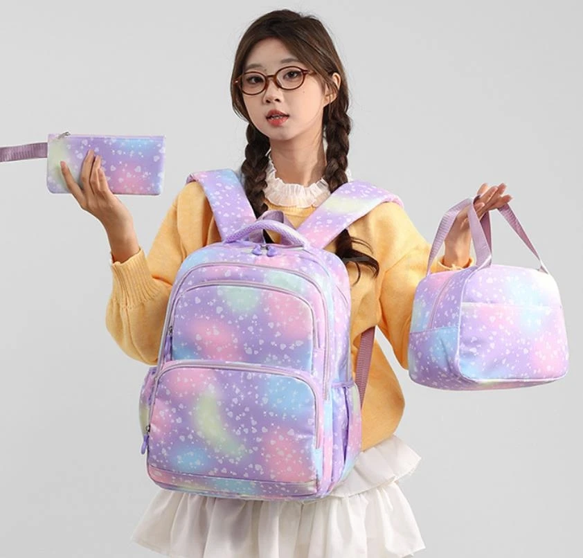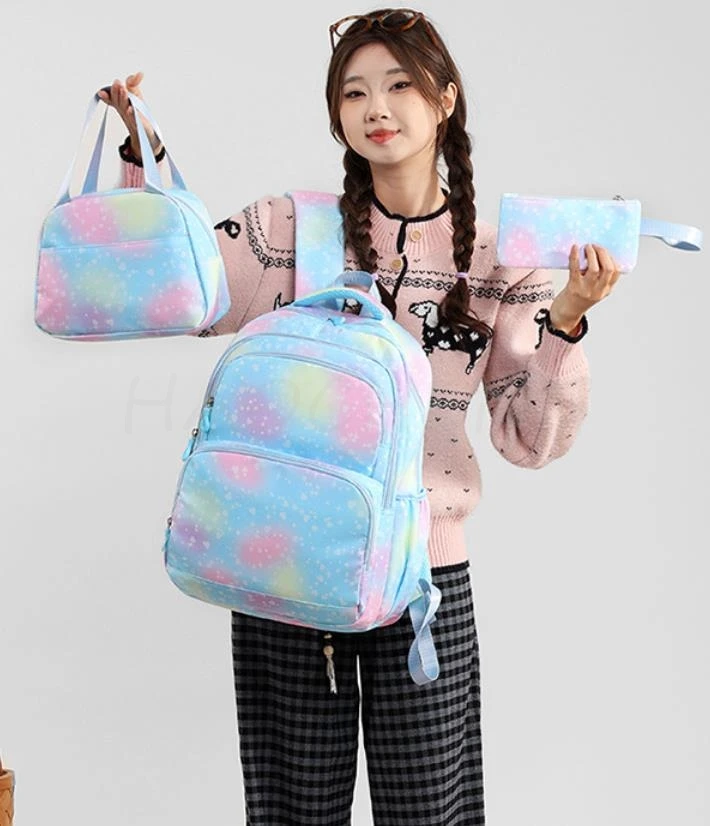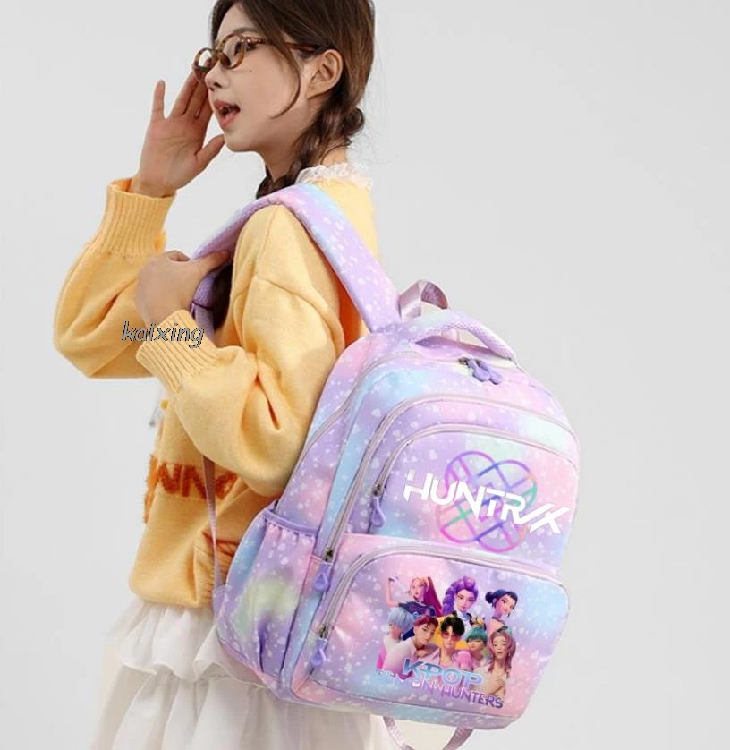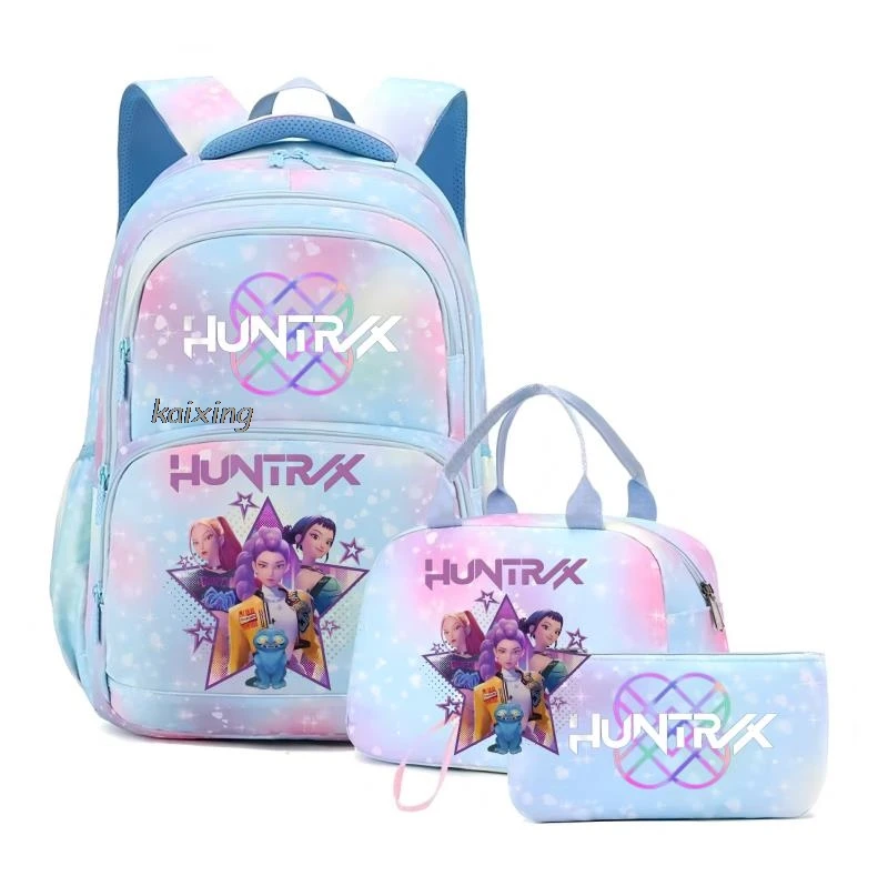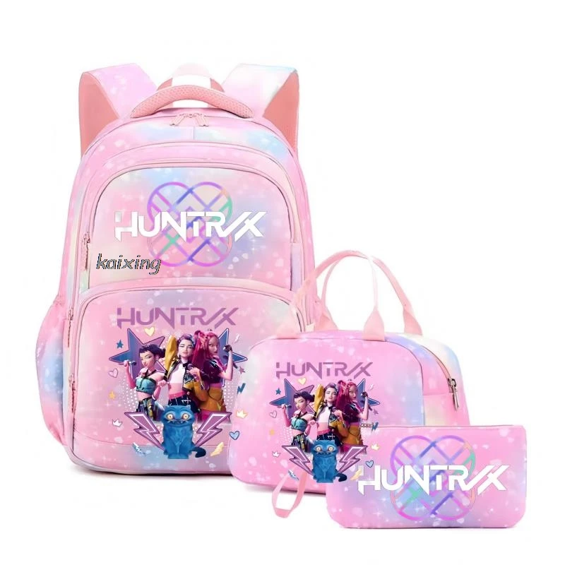 - > Conjunto de 3 Peças KPop Demon Hunters Saja Boys: Mochila Colorida com Lancheira e Mochila Casual para Meninas, Mulheres e Estudantes