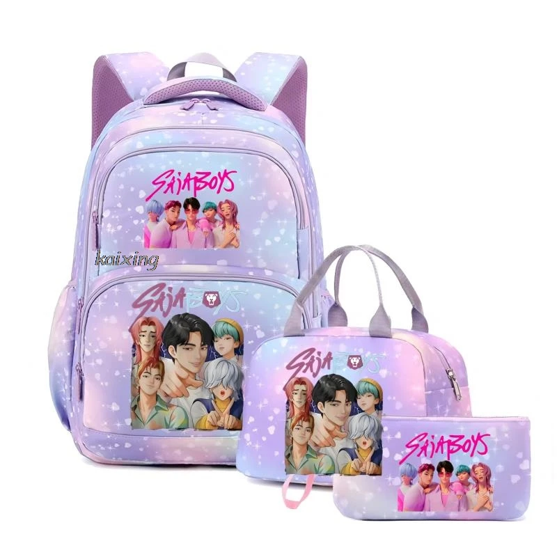 Conjunto de 3 Peças KPop Demon Hunters Saja Boys: Mochila Colorida com Lancheira e Mochila Casual para Meninas, Mulheres e Estudantes