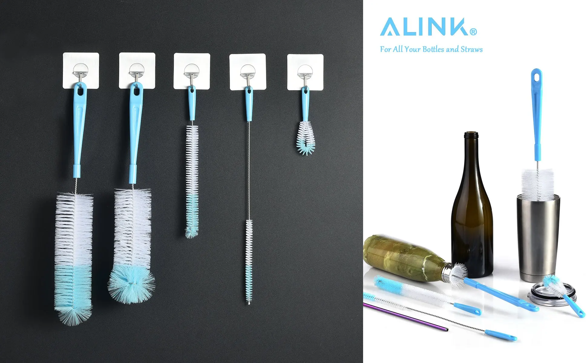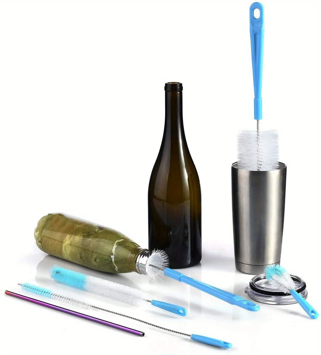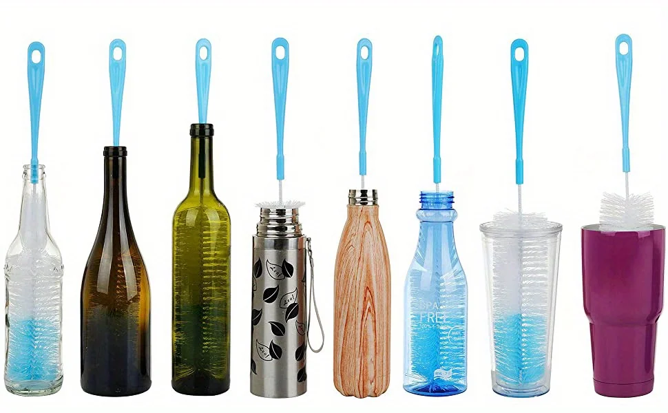 Conjunto de 8 escovas de limpeza de garrafas – limpador de cabo longo para garrafas de cerveja, térmicas, garrafas esportivas e escovas de palha de chaleira