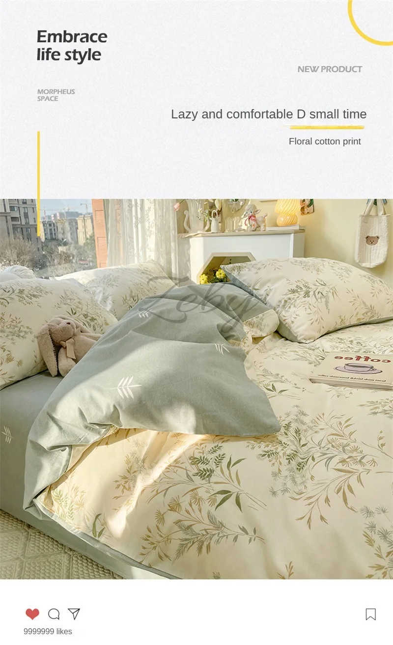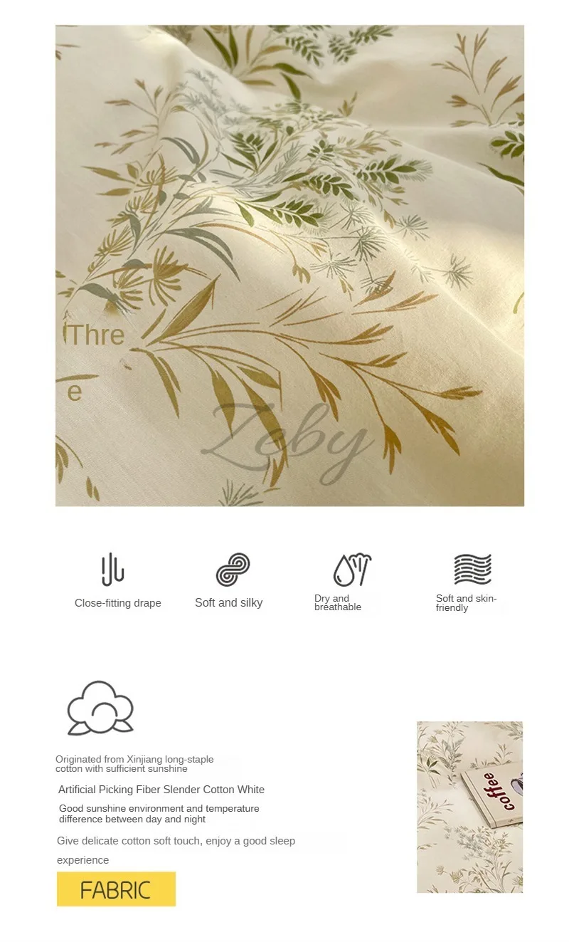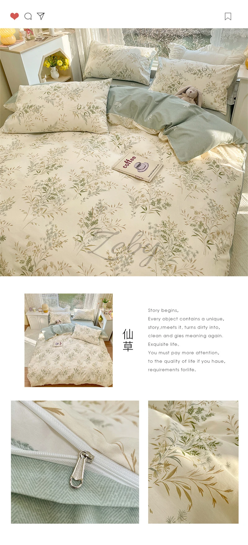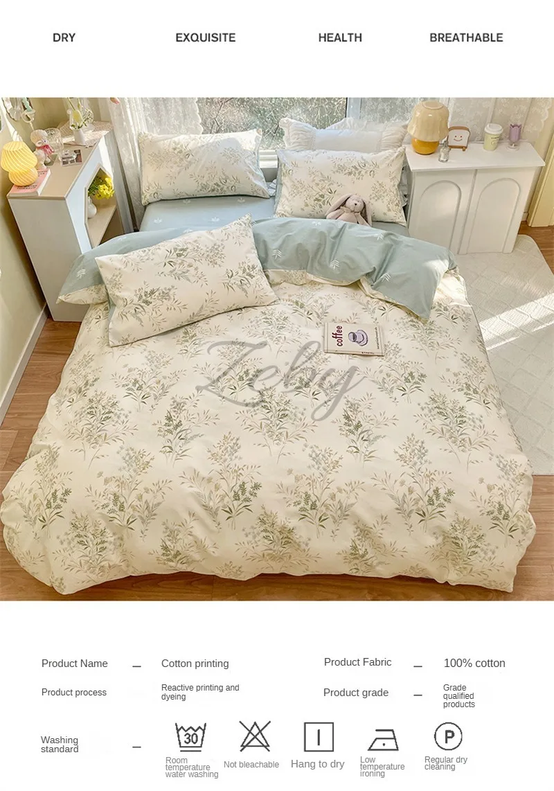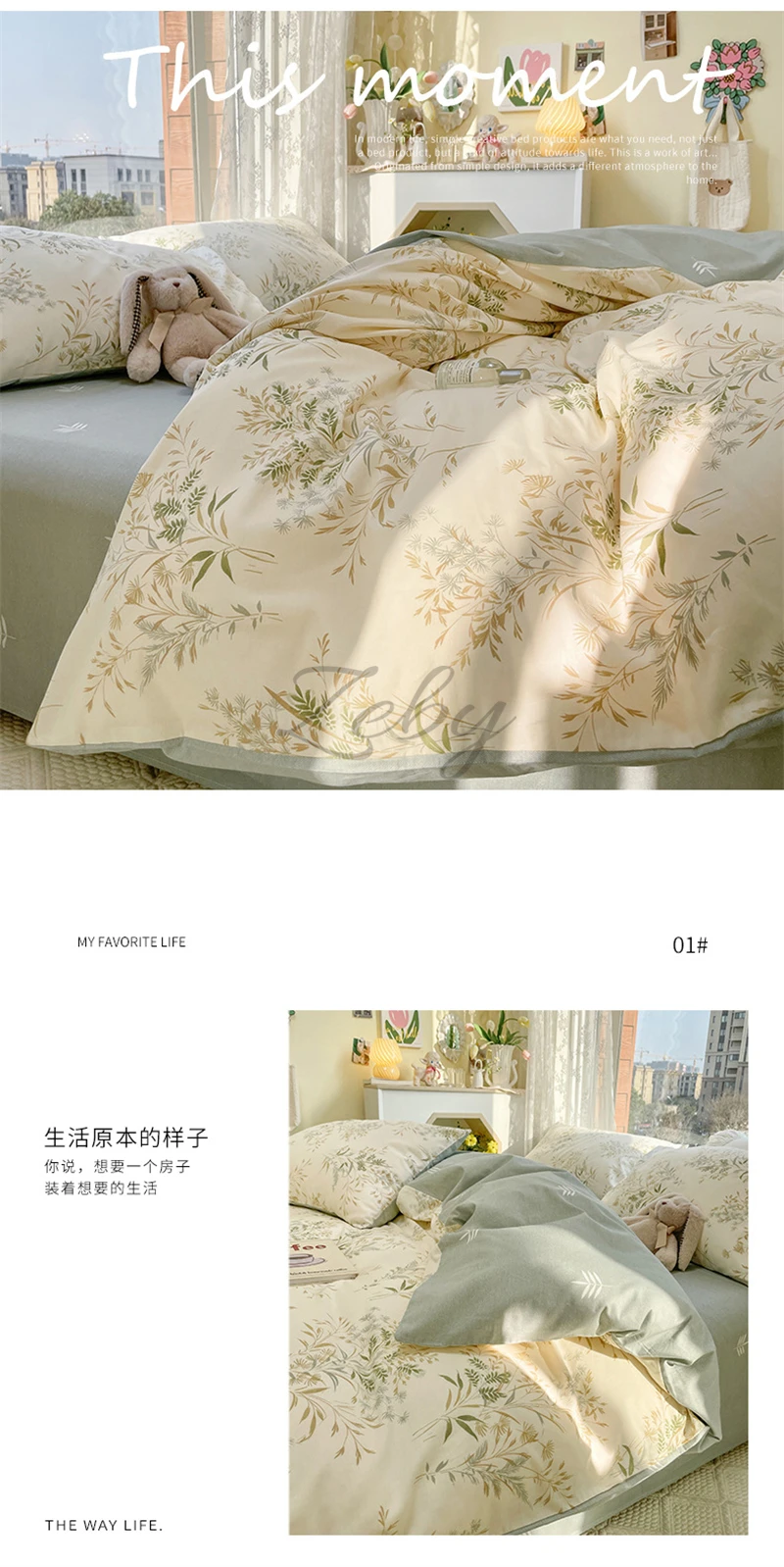 Conjunto de capa de edredom 100% algodão floral, conjunto de capa de edredom dupla pele amigável, cobertor, conjunto de cama, tamanho personalizado, sem folhas