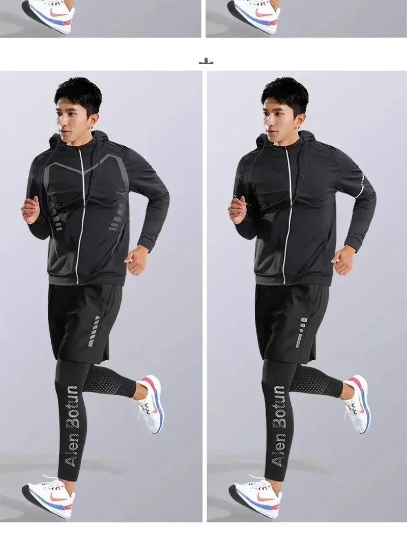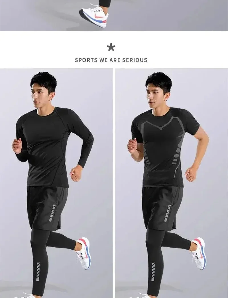 - > Conjunto de corrida de fitness masculino apertado-ajuste roupas de secagem rápida para o outono noite corra treinamento ciclismo novo equipamento esportivo roupas masculinas