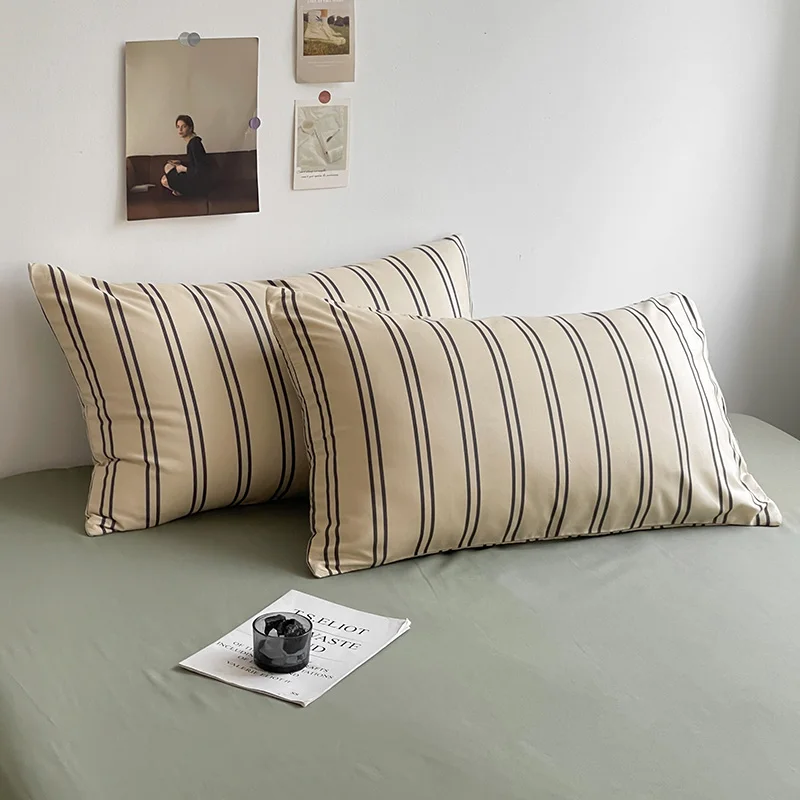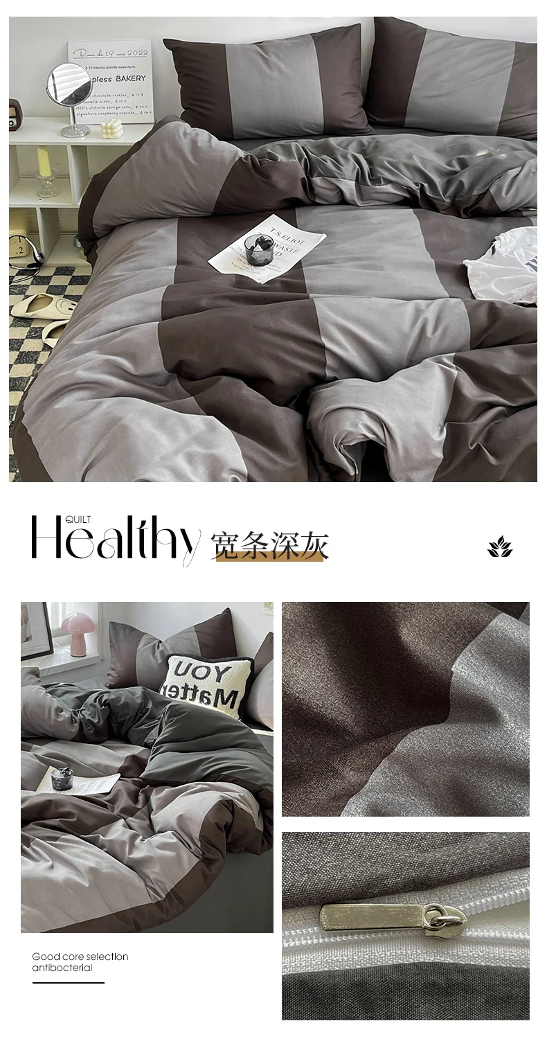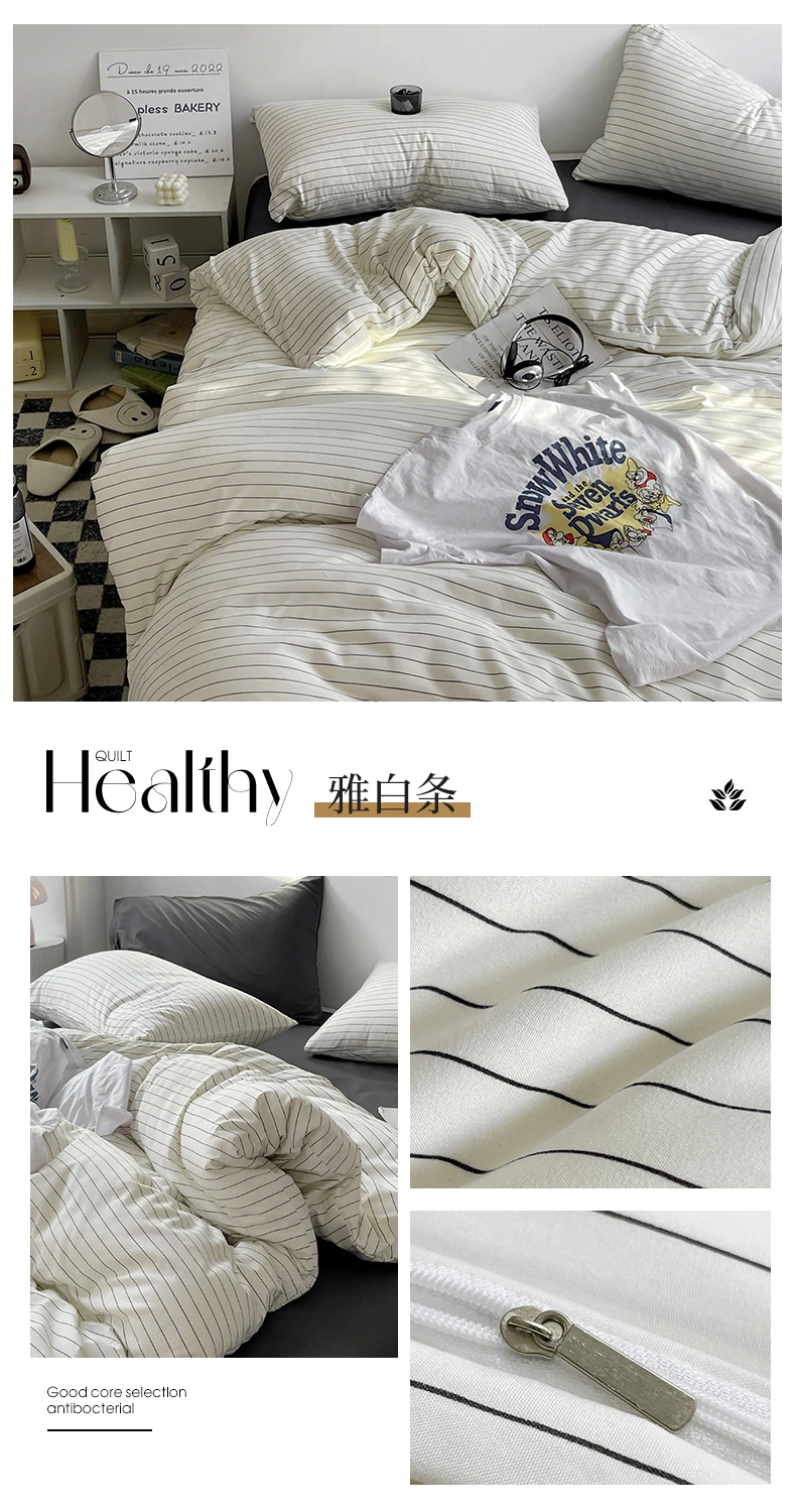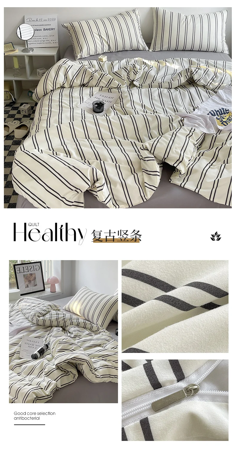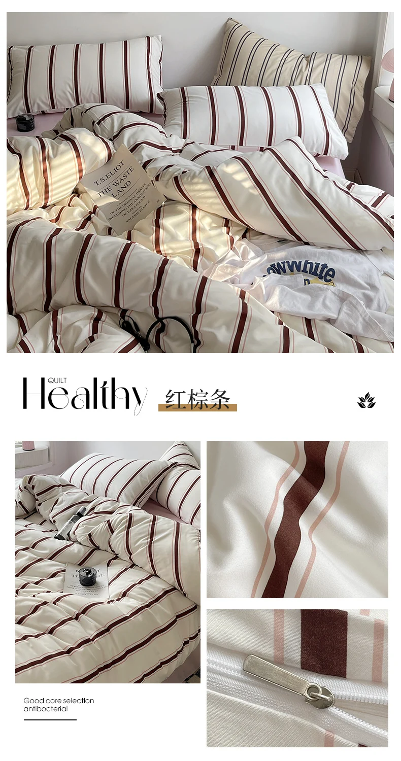 Conjunto de edredom listrado com fronha, lençol de cama individual, tamanho integral, conjunto de capa de edredom, queen/king, cama de solteiro de casal
