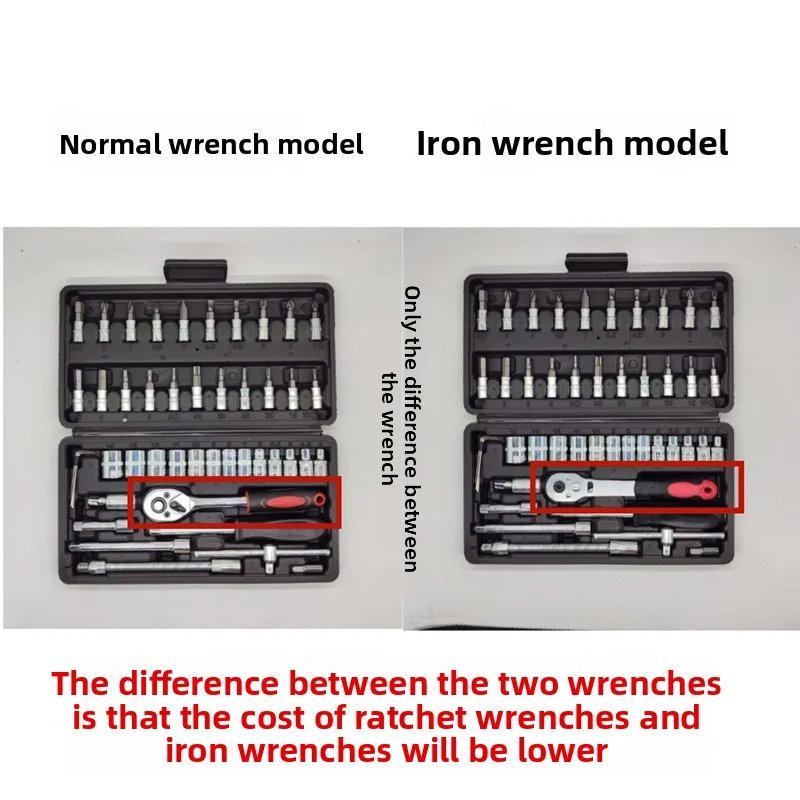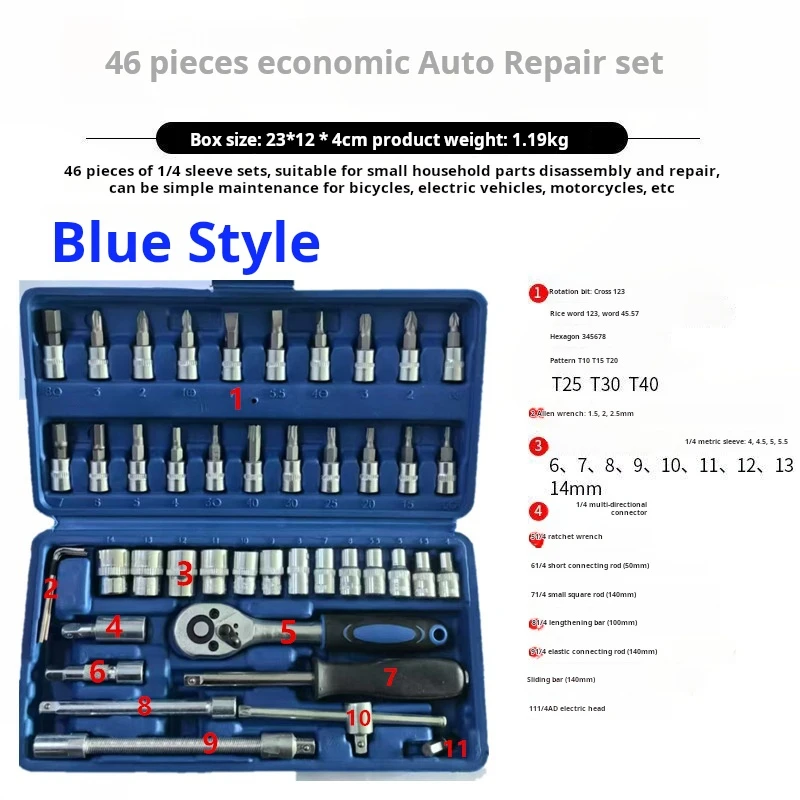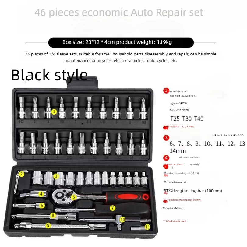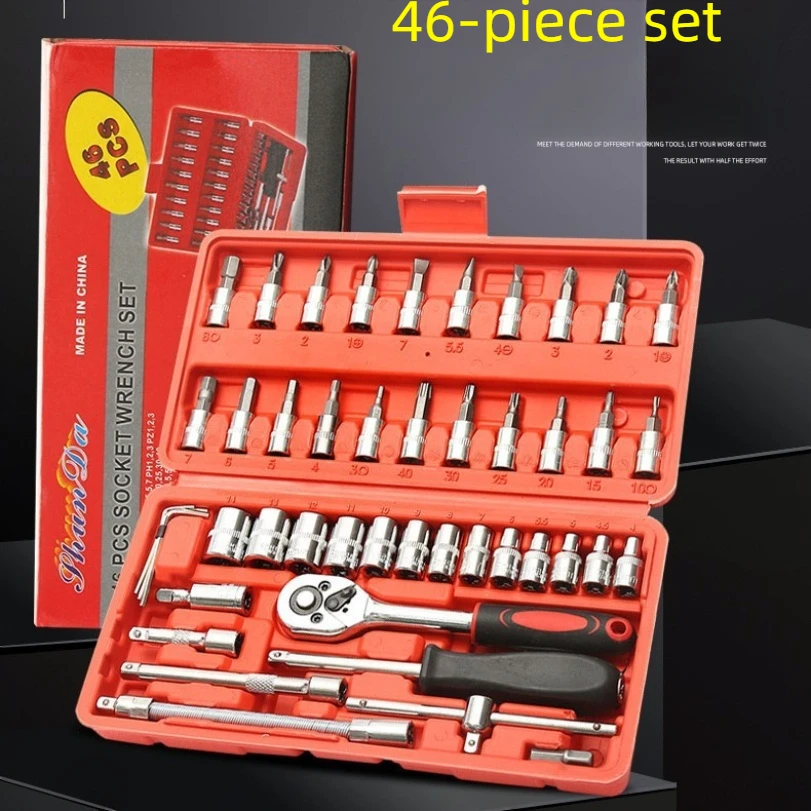 - > Conjunto de ferramentas de chave de soquete de 46 peças para reparo de automóveis com chaves e conjunto de chave de catraca 1/4