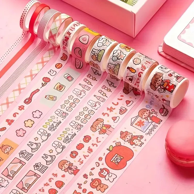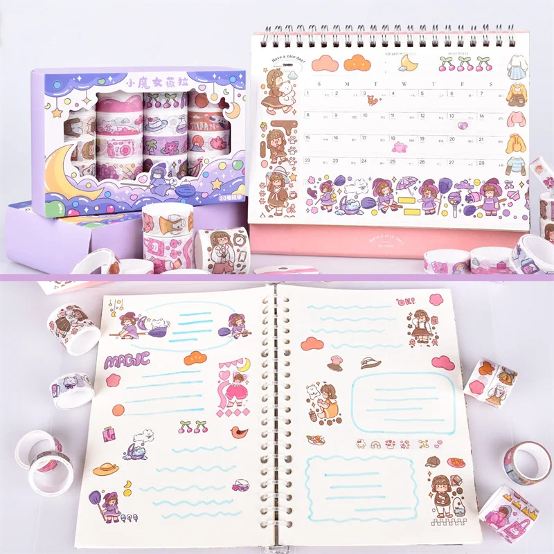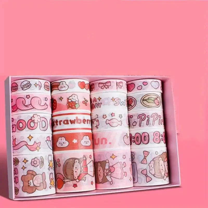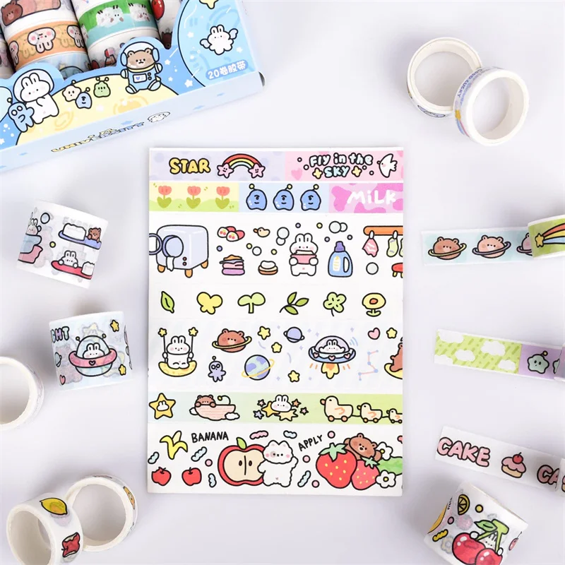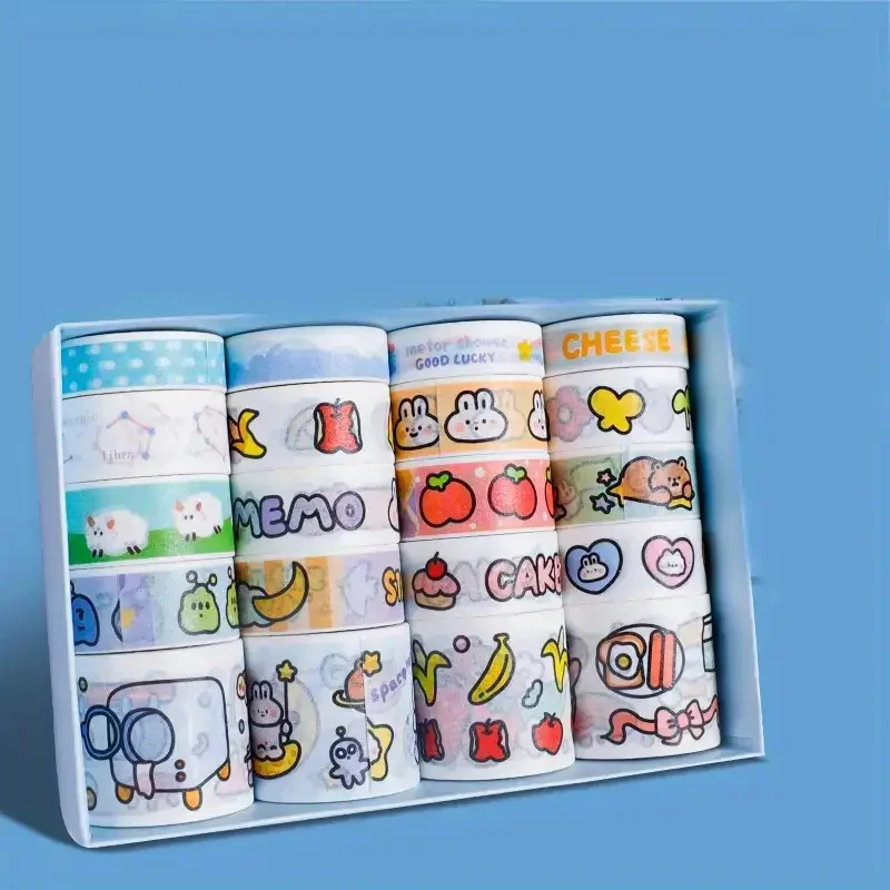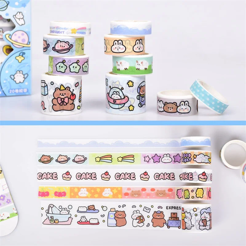 - > Conjunto de fita washi kawaii em caixa de 20 rolos, fita adesiva diy de desenho animado fofo, papel de nota pegajosa de grade para scrapbooking e diário
