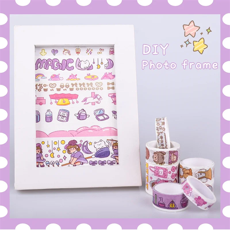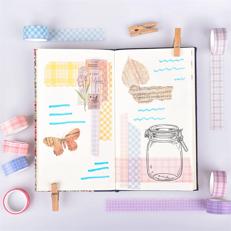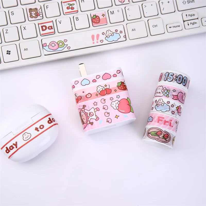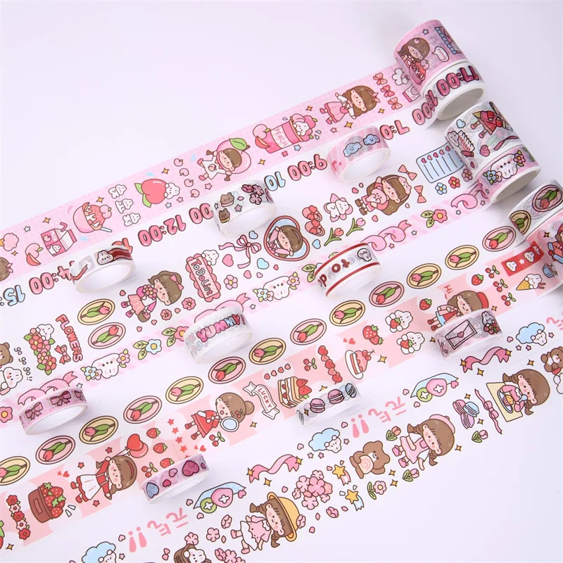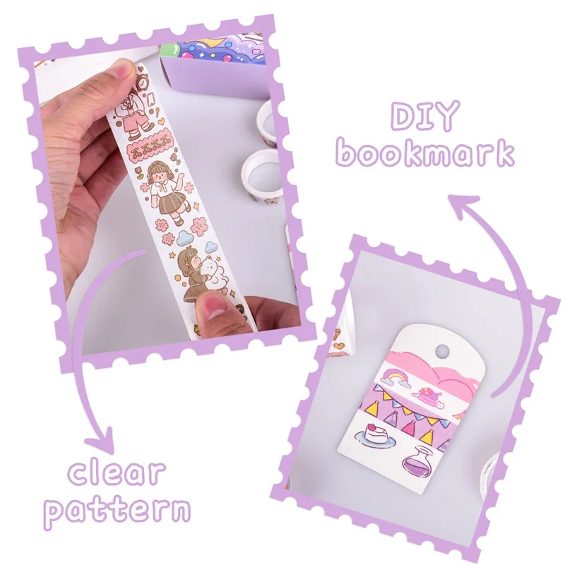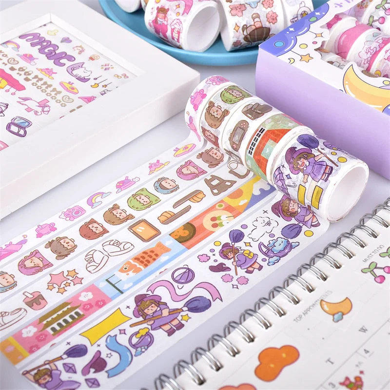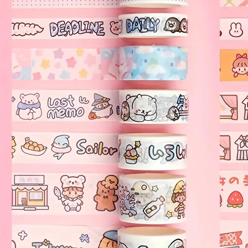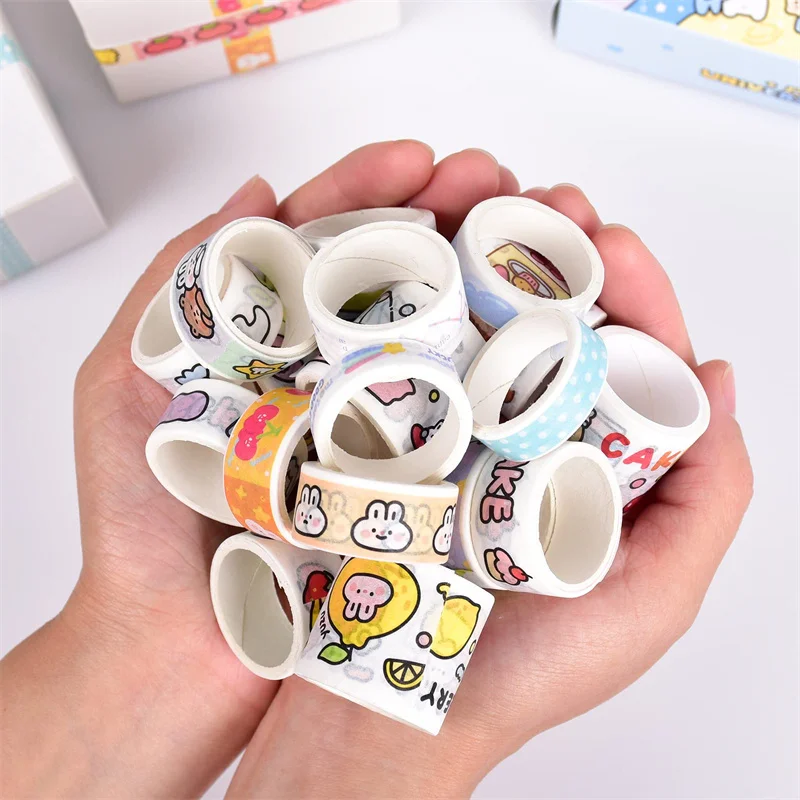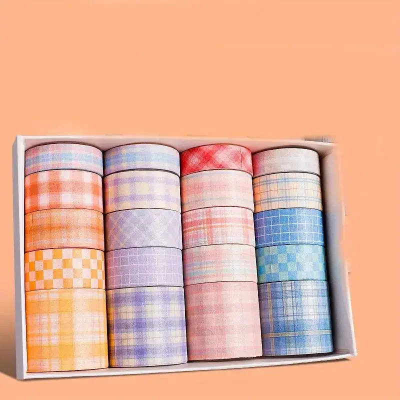 Conjunto de fita washi kawaii em caixa de 20 rolos, fita adesiva diy de desenho animado fofo, papel de nota pegajosa de grade para scrapbooking e diário