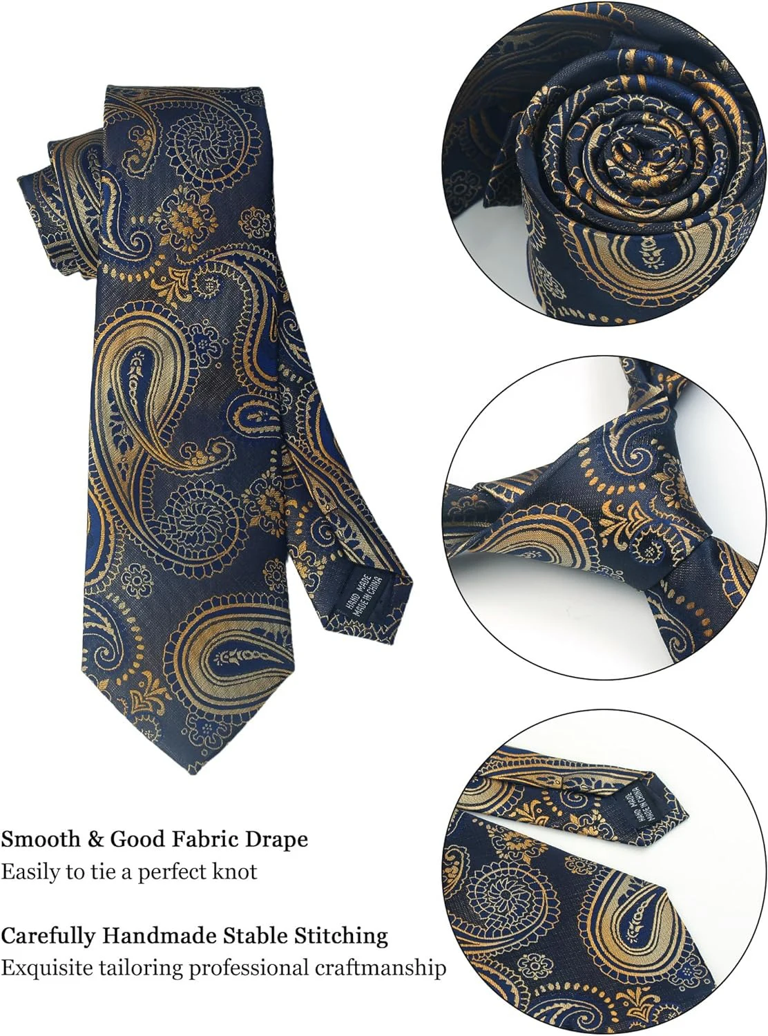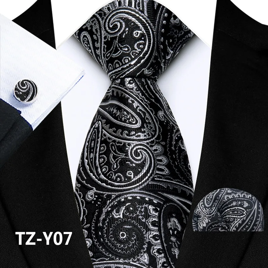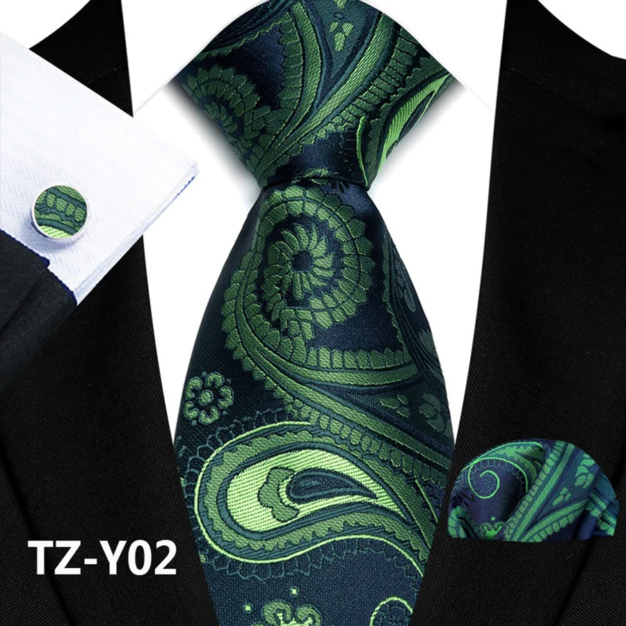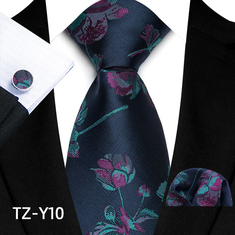- > Conjunto de gravata de seda masculina clássico paisley gravata lenço abotoaduras conjunto listra floral gravata para homem formal negócios festa de casamento