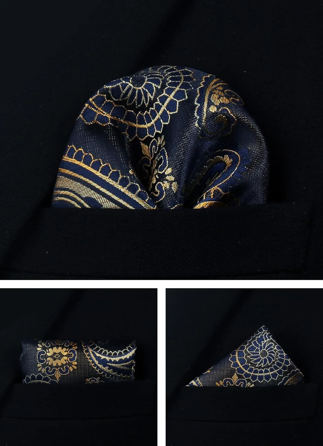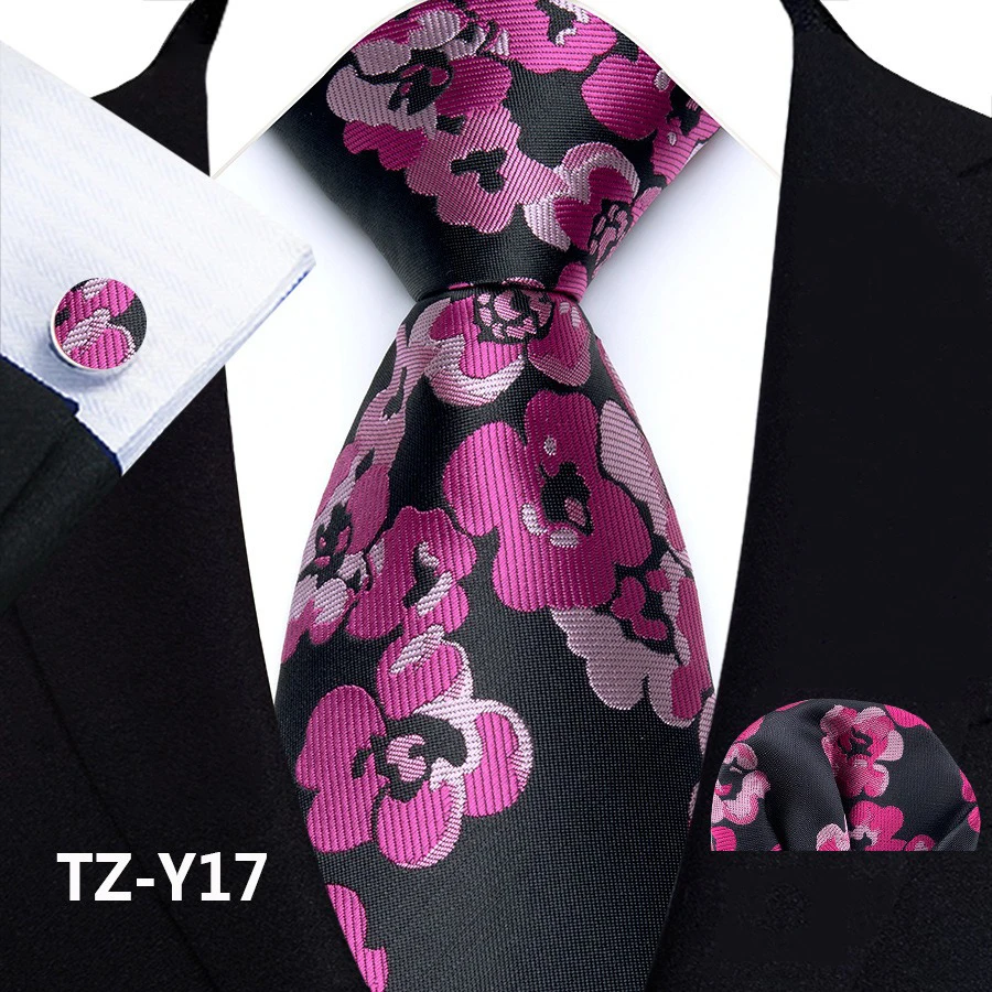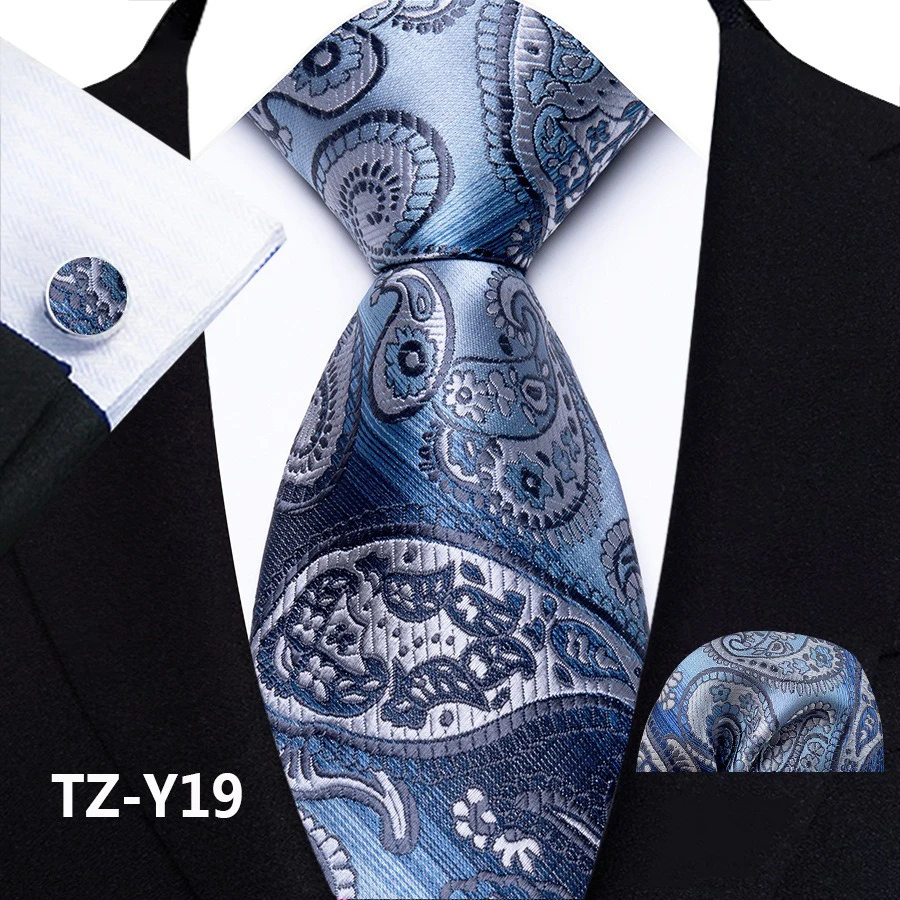 - > Conjunto de gravata de seda masculina clássico paisley gravata lenço abotoaduras conjunto listra floral gravata para homem formal negócios festa de casamento