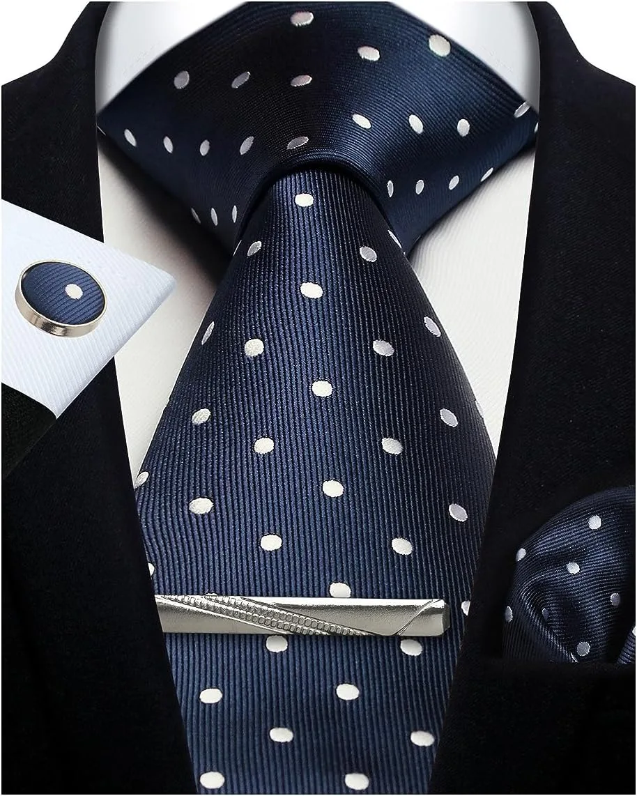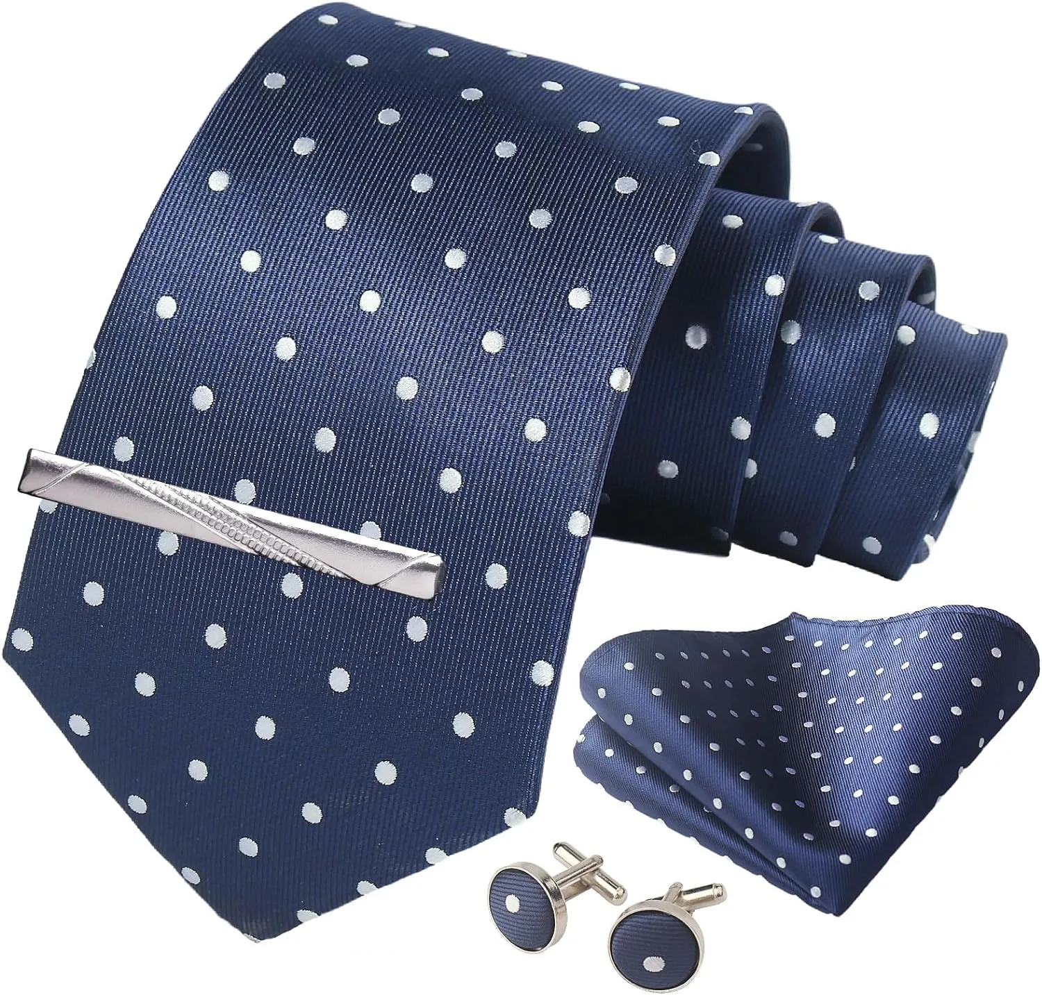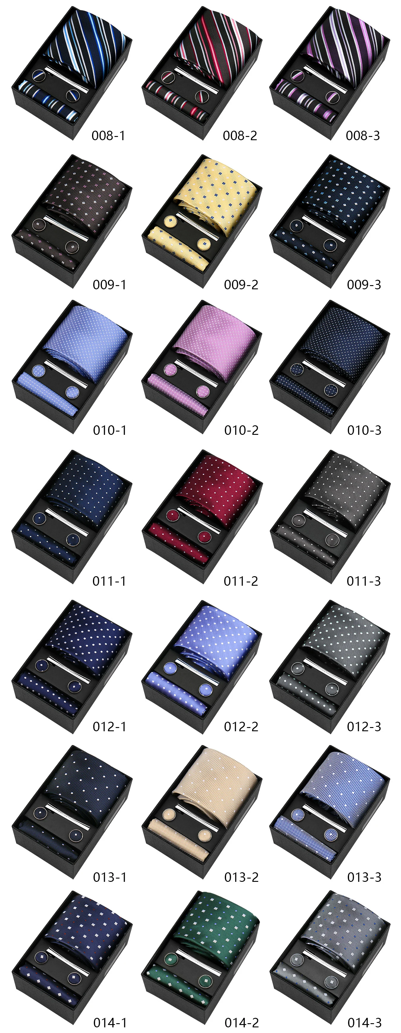 - > Conjunto de gravata masculina de alta qualidade, elegante, jacquard, listrado, bolinhas, bolso, abotoaduras quadradas, caixa de clipe de gravata para presente masculino, casamento, negócios