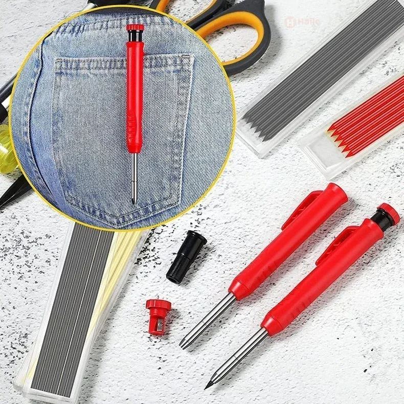 - > Conjunto de lápis de carpinteiro sólido, lápis mecânico, 3 cores, recarga, marcação de carpintaria, ferramentas de construção, ferramentas para trabalhar madeira