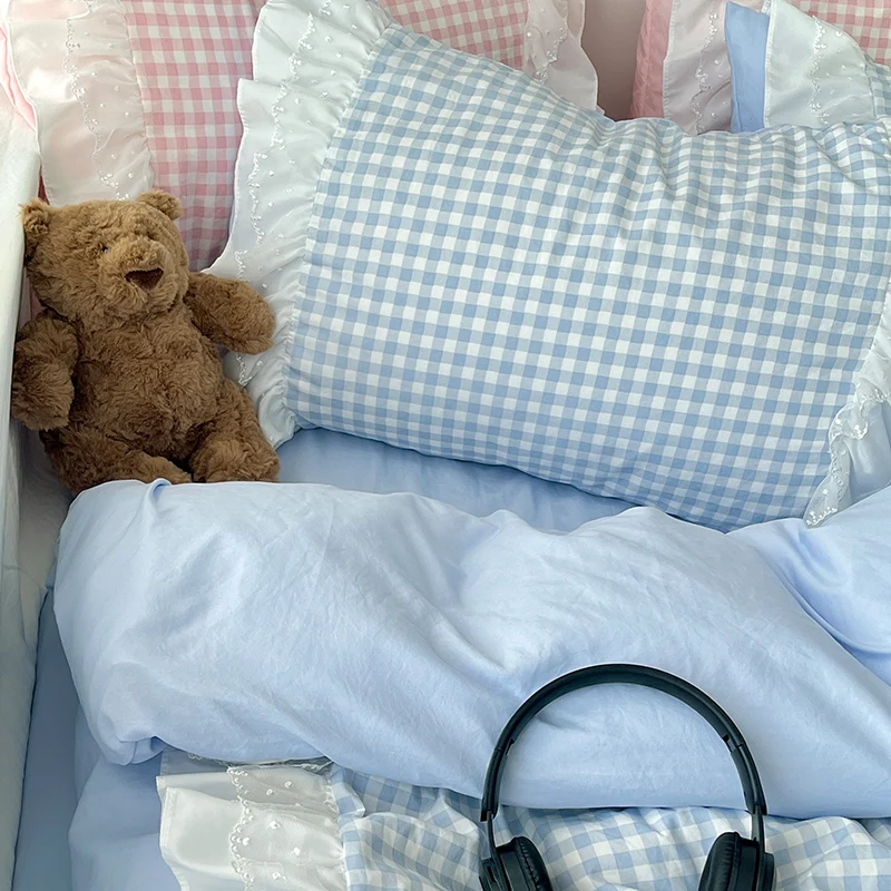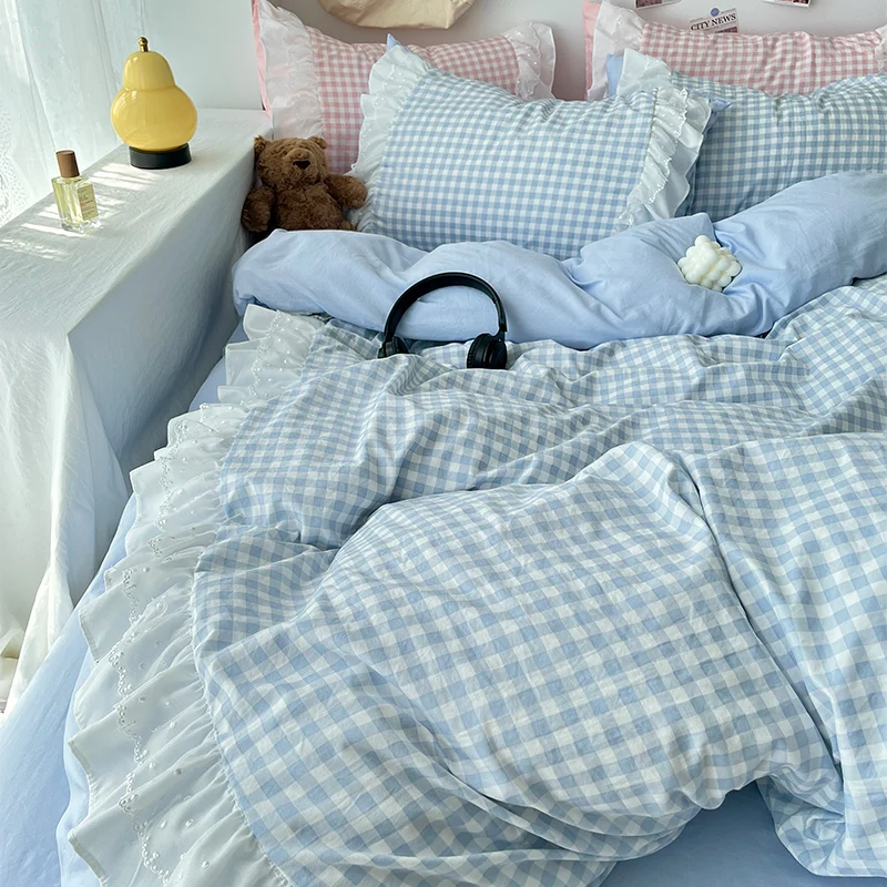 Conjunto de lençóis de 3 peças, conjunto de capa de edredom xadrez rosa, conjunto de cama confortável, colcha para todas as estações