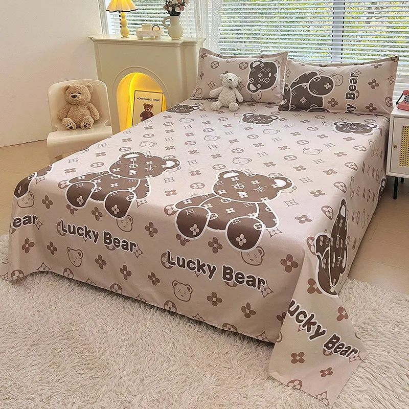 Conjunto de lençóis de flanela de cor sólida, algodão lavado, 3 peças, dormitório individual, todas as estações, casa simples e aconchegante