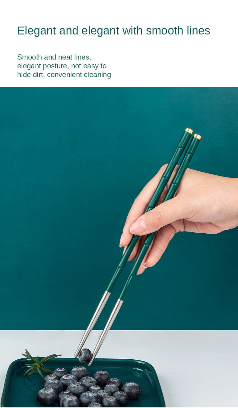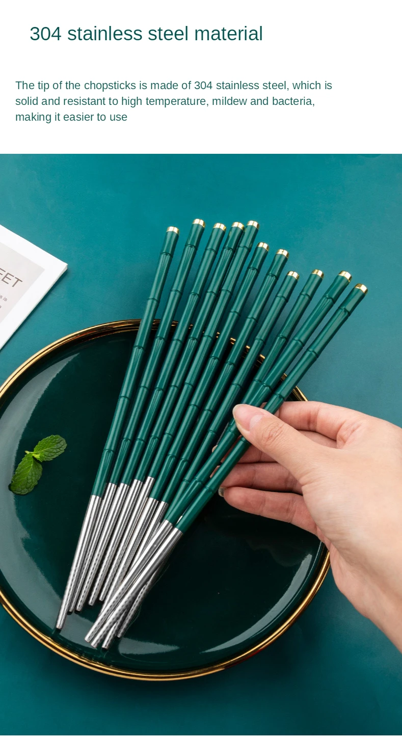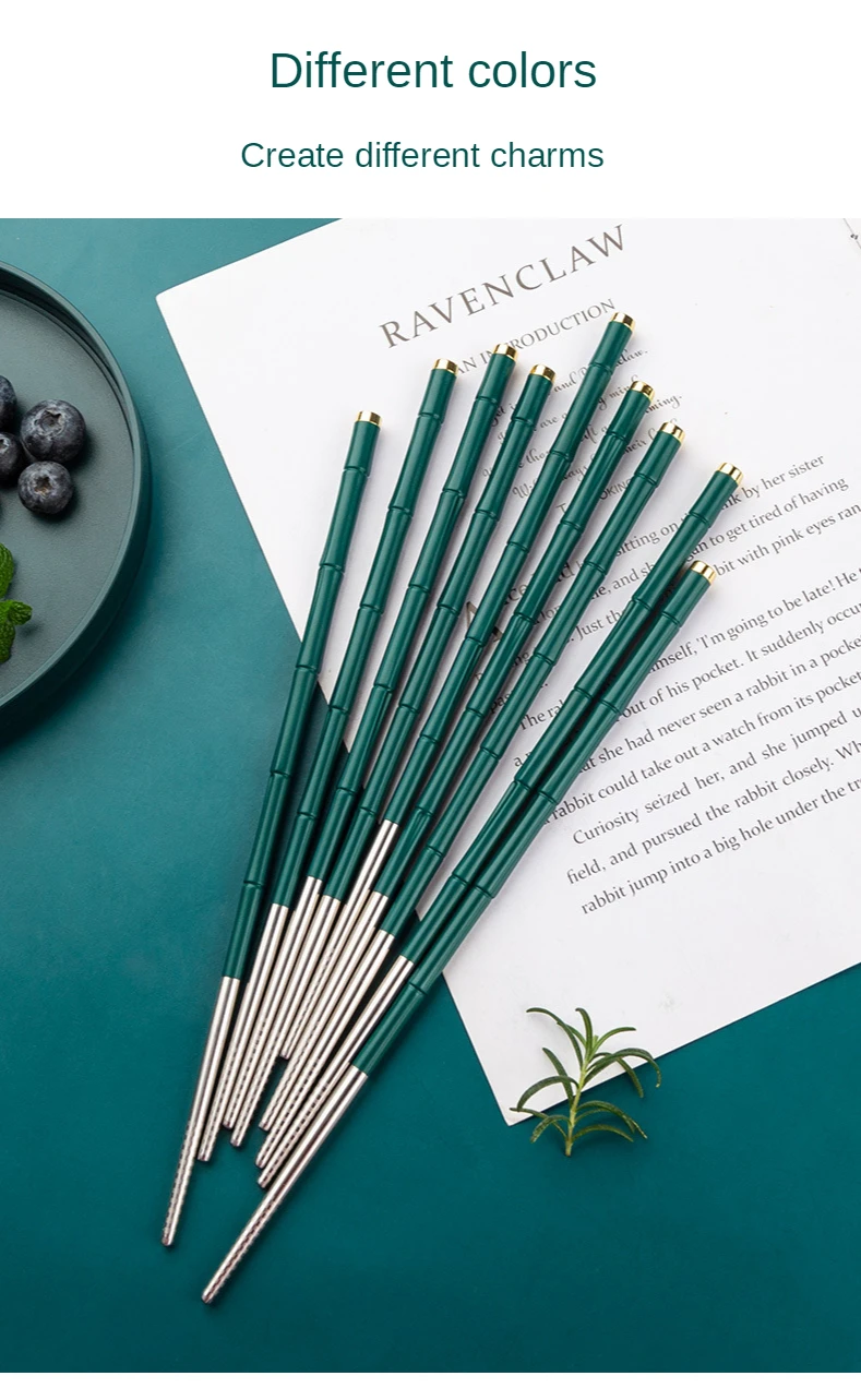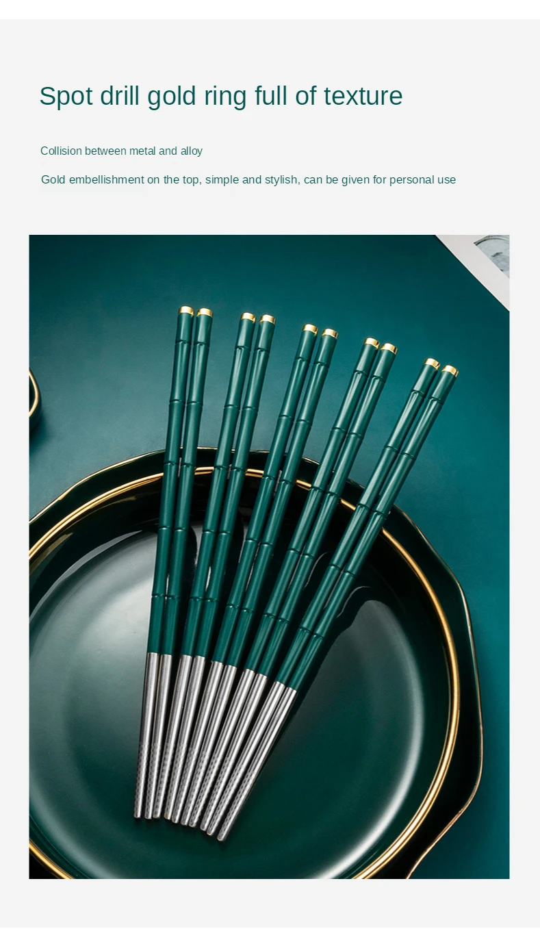 Conjunto de pauzinhos de aço inoxidável japonês chinês de bambu verde/preto de alta qualidade pauzinhos de aço antiderrapante de metal reutilizáveis alimentos sushi varas ferramentas de cozinha