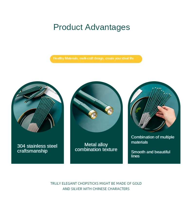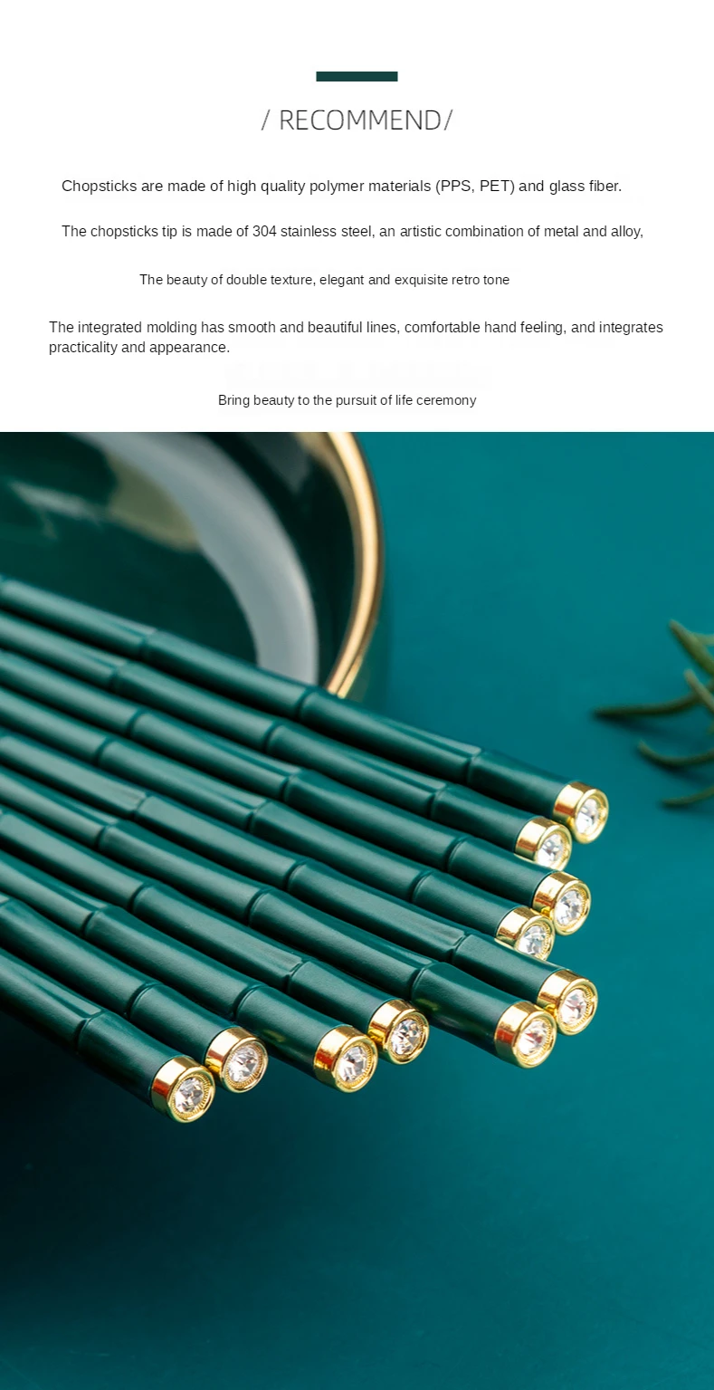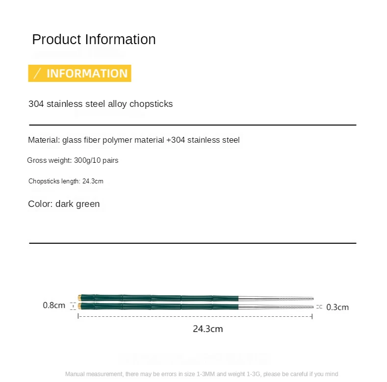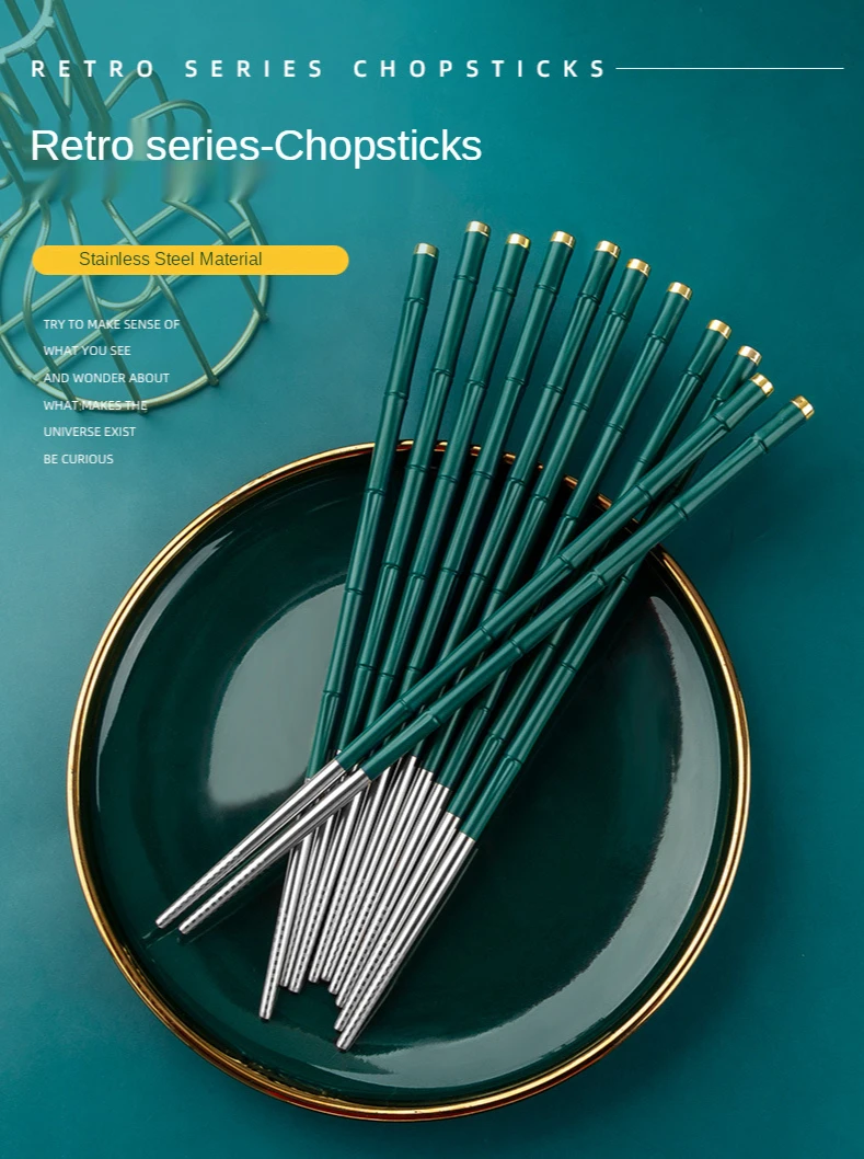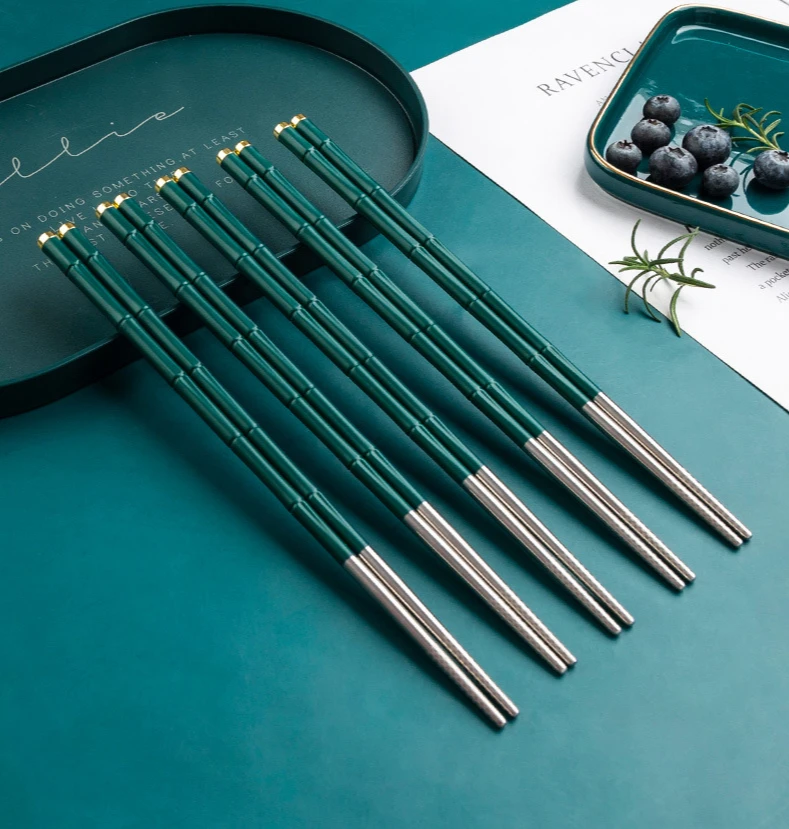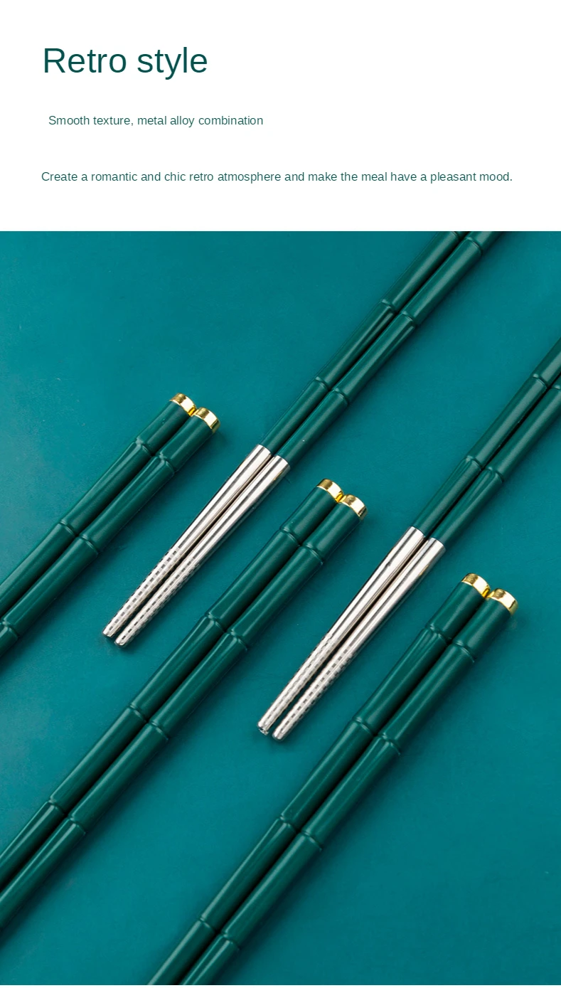Conjunto de pauzinhos de aço inoxidável japonês chinês de bambu verde/preto de alta qualidade pauzinhos de aço antiderrapante de metal reutilizáveis alimentos sushi varas ferramentas de cozinha