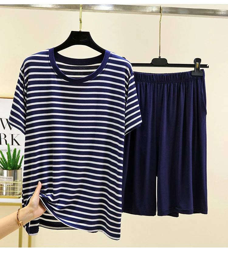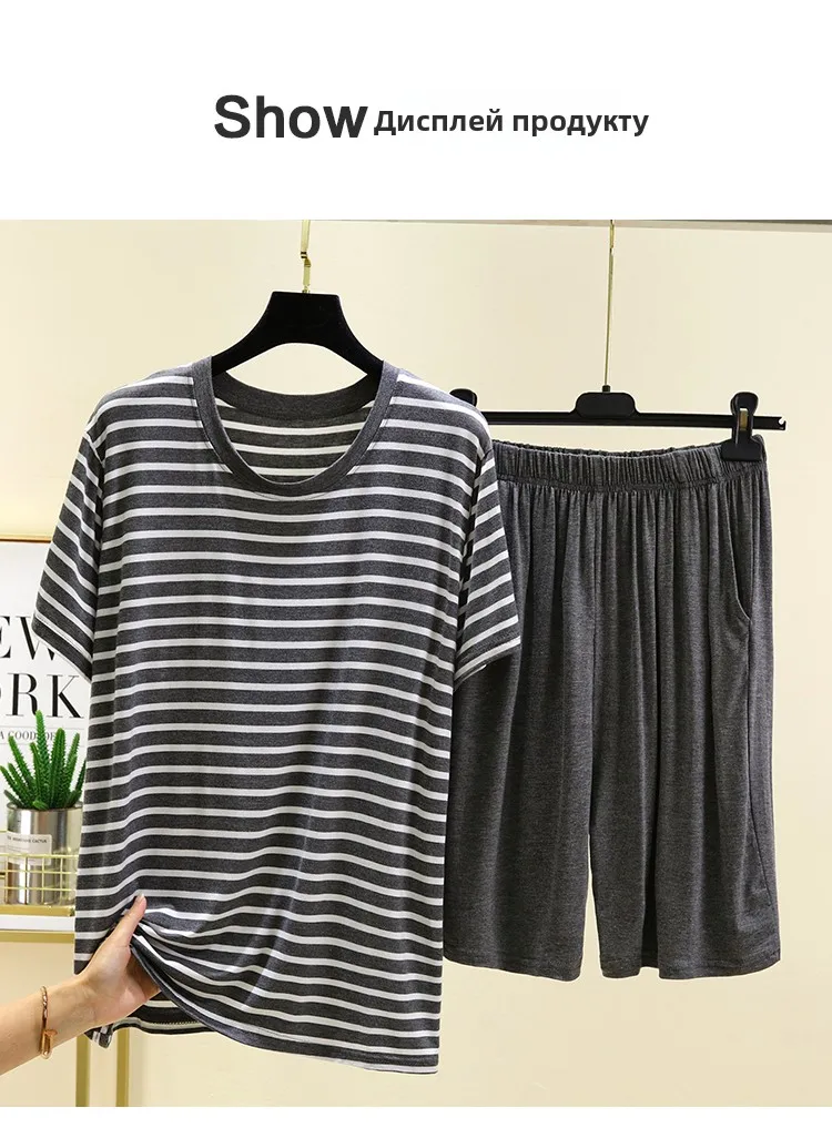 Conjunto de Pijamas Masculinos em Modal para o Verão, Cseta de Manga Curta e Calças Curtas, Roupas Casuais Leves e Confort...