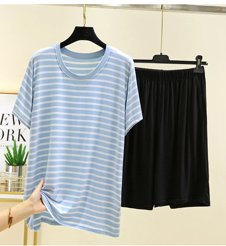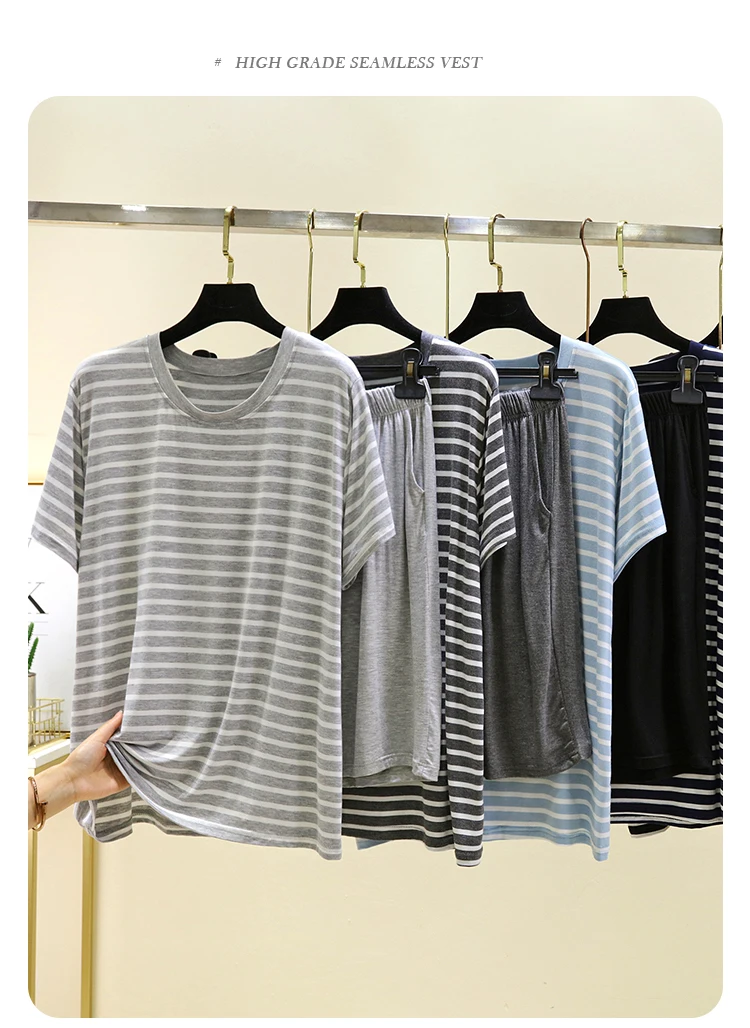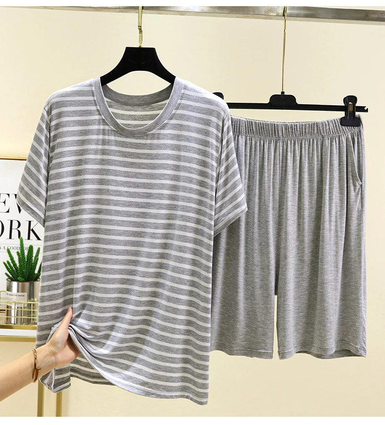 - > Conjunto de Pijamas Masculinos em Modal para o Verão, Cseta de Manga Curta e Calças Curtas, Roupas Casuais Leves e Confort...