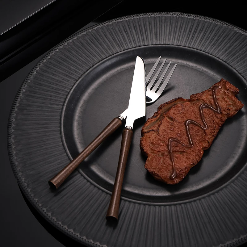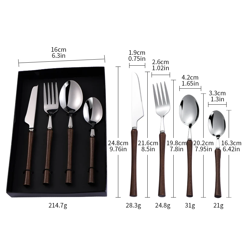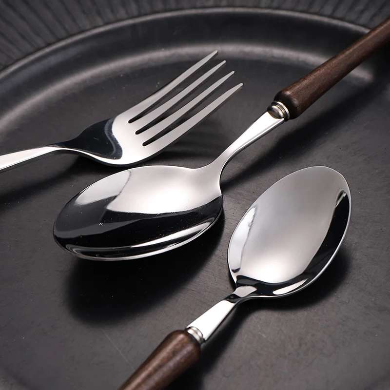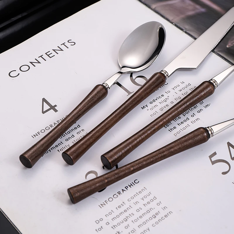 Conjunto de talheres com cabo de madeira, conjunto coreano de talheres de aço inoxidável, garfo, faca, colher, alta qualidade, conjunto de jantar de luxo