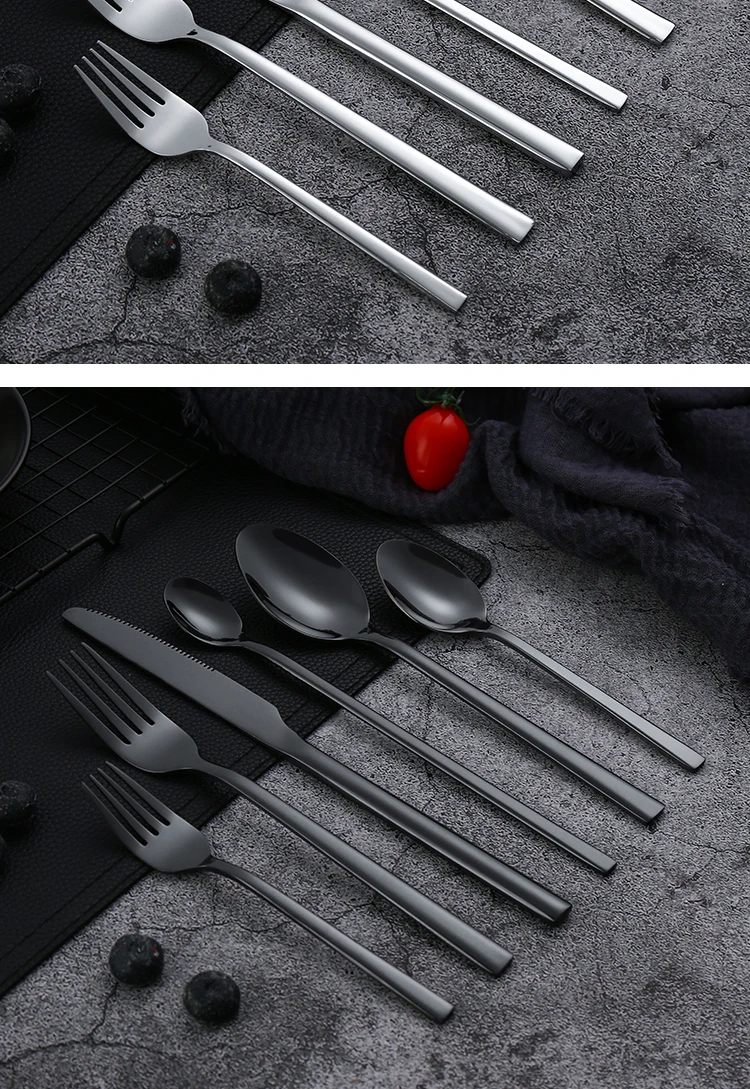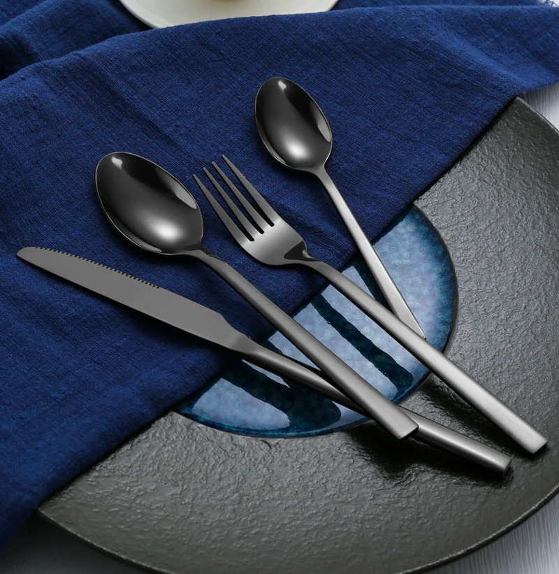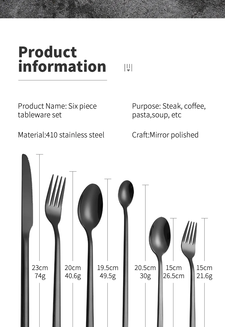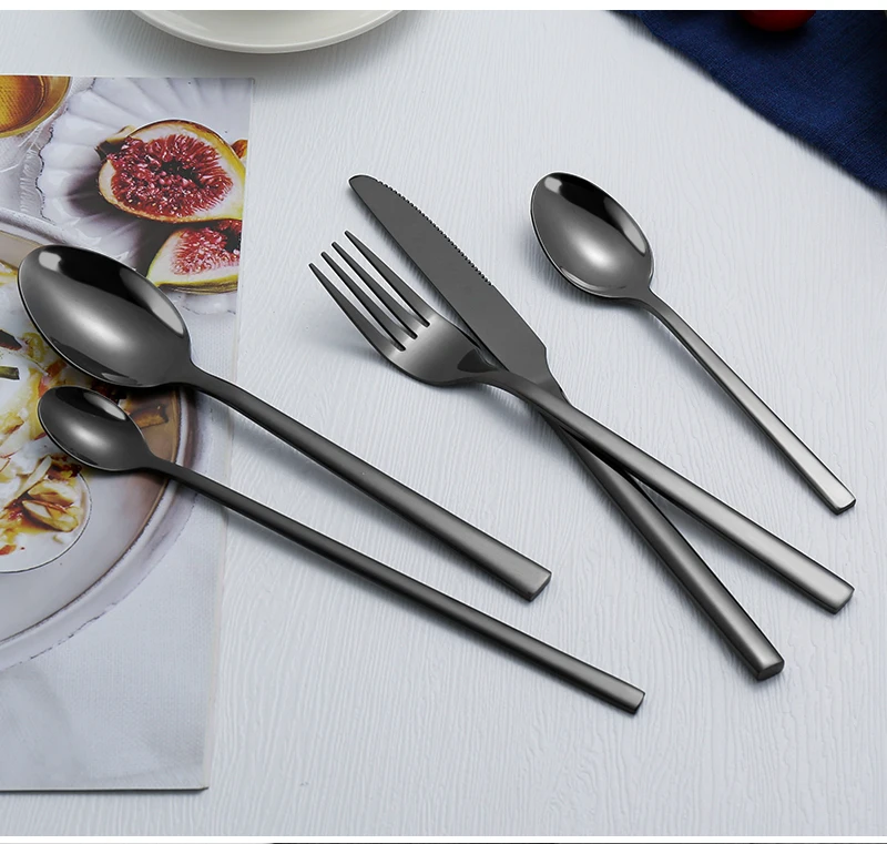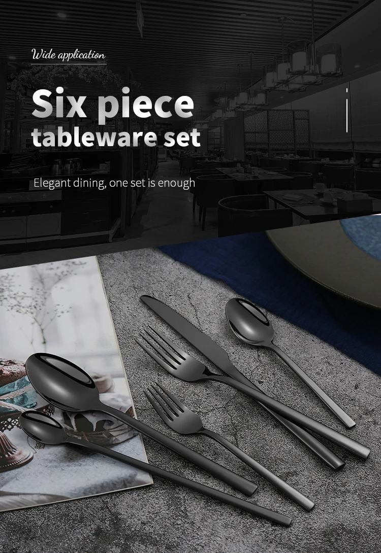 Conjunto de talheres de aço inoxidável para festa, talheres clássicos, talheres ocidentais pretos, faca, garfo, IceTea colher, 6 PCs