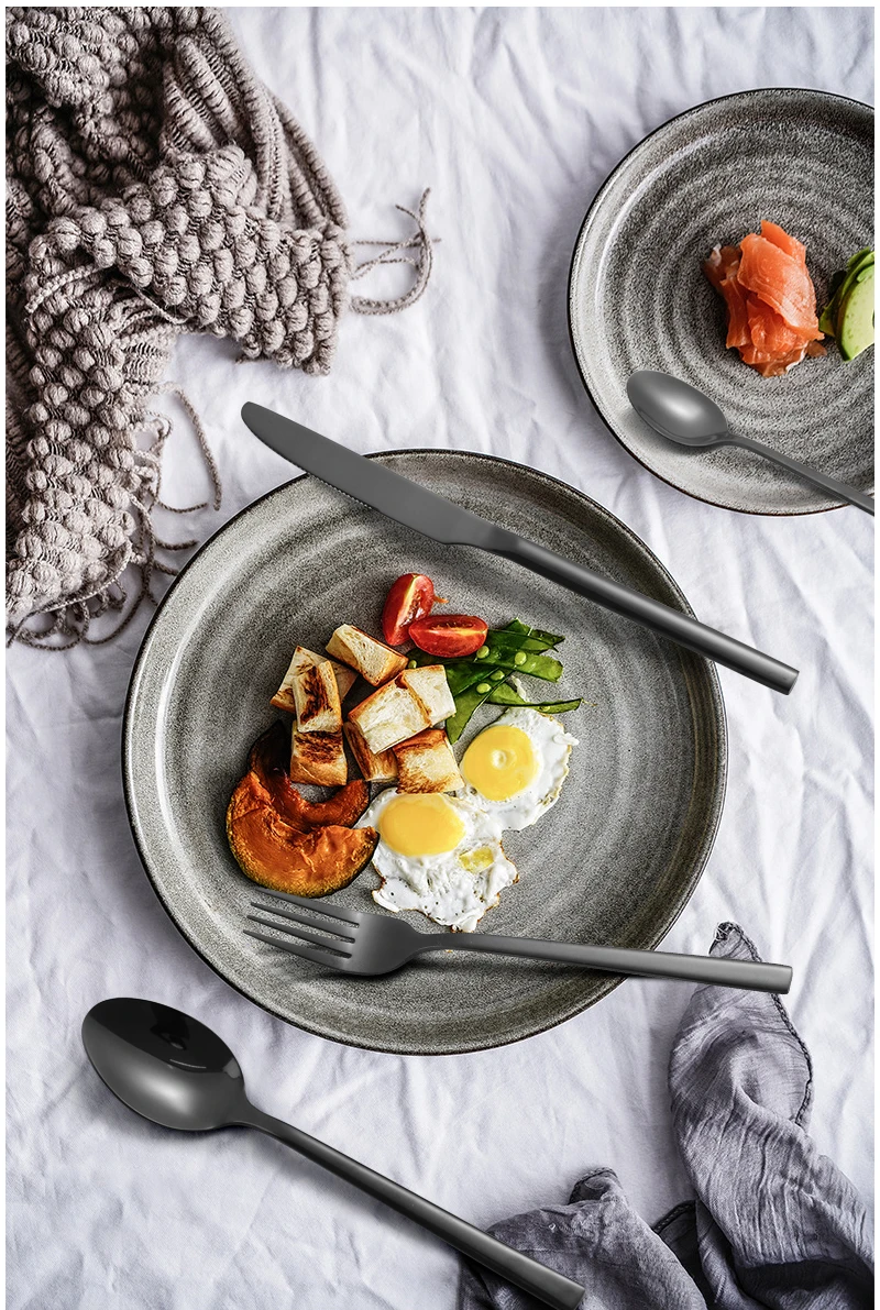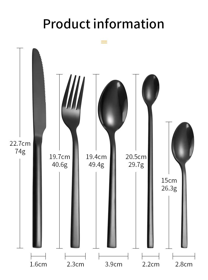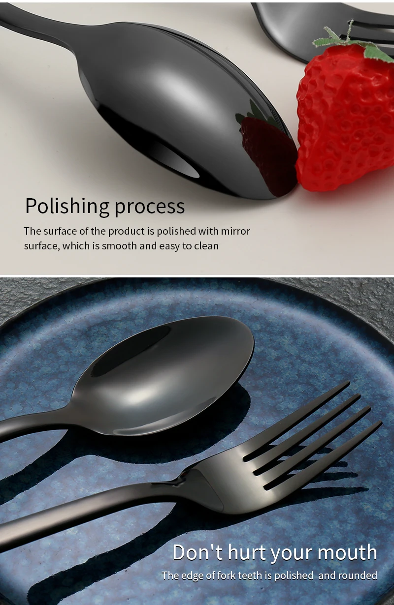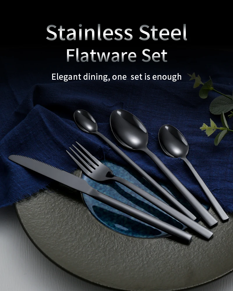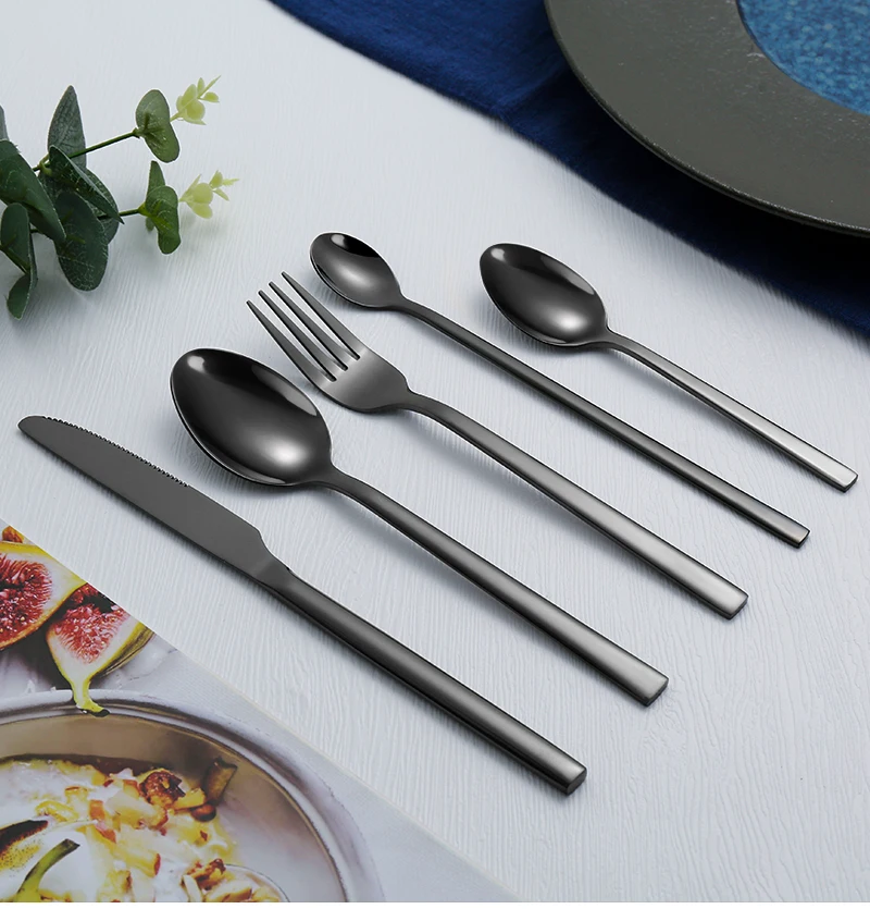 Conjunto de talheres de aço inoxidável para festa, talheres clássicos, talheres ocidentais pretos, faca, garfo, IceTea colher, 6 PCs