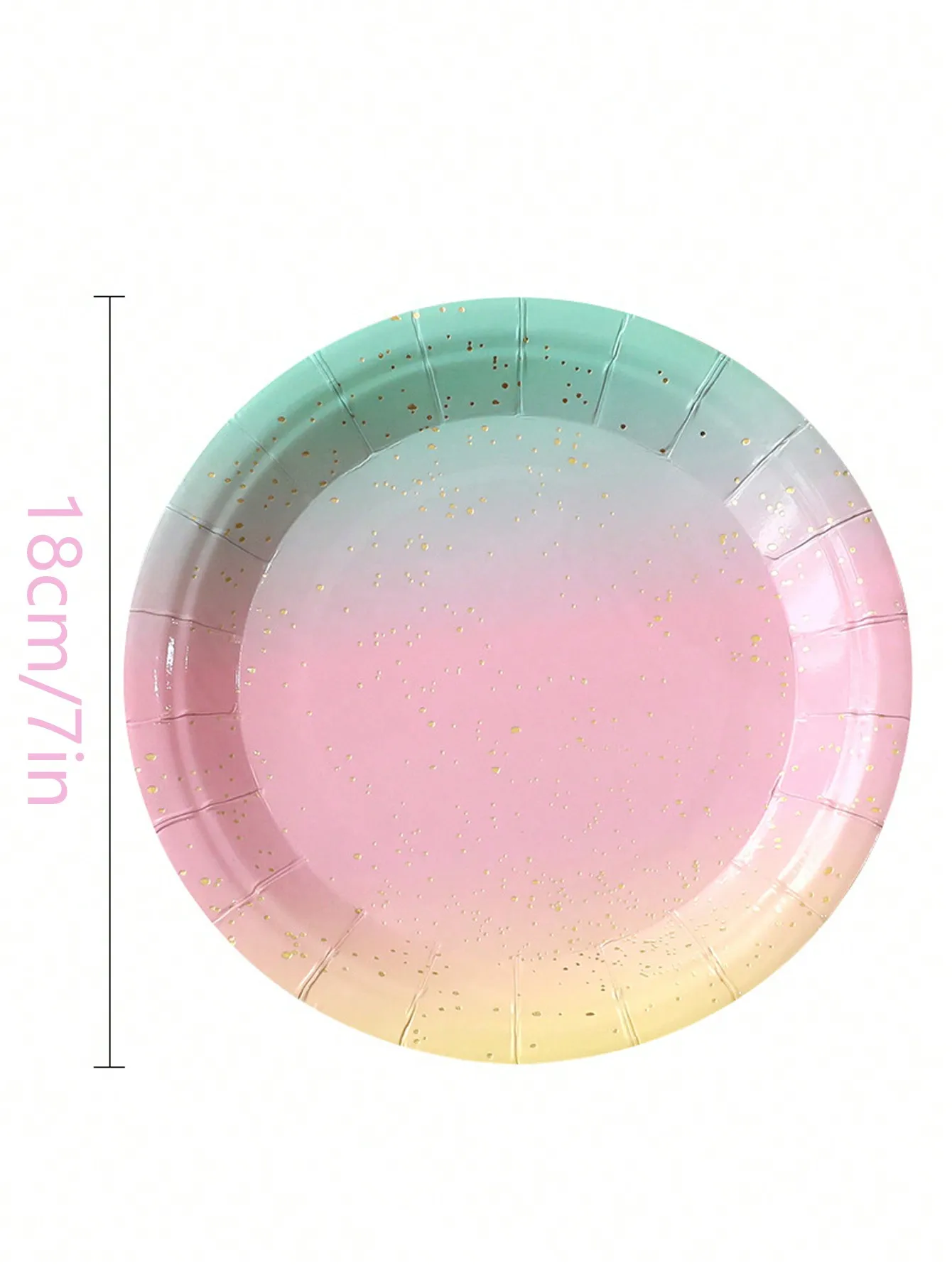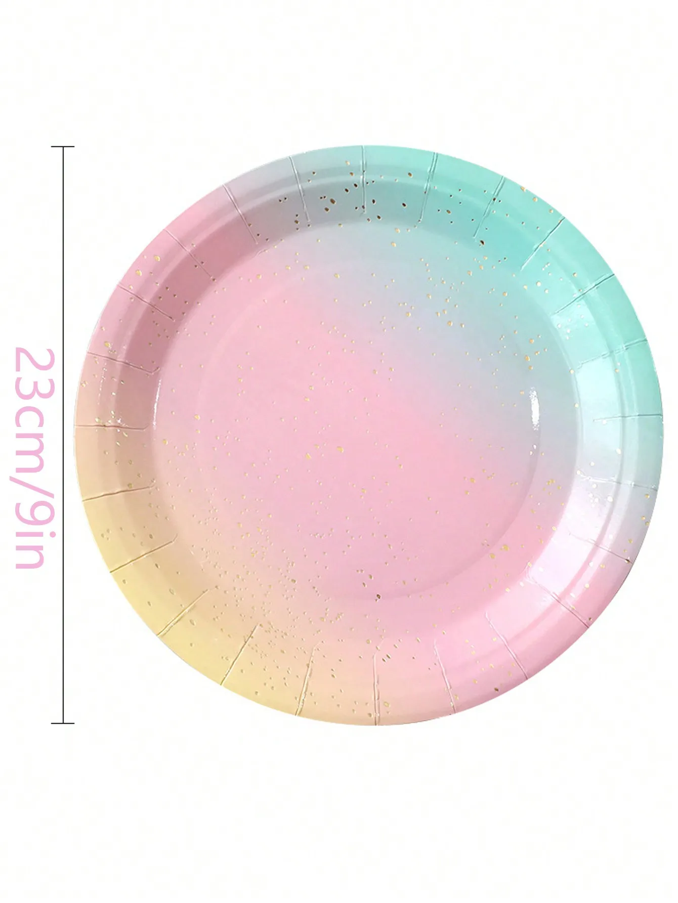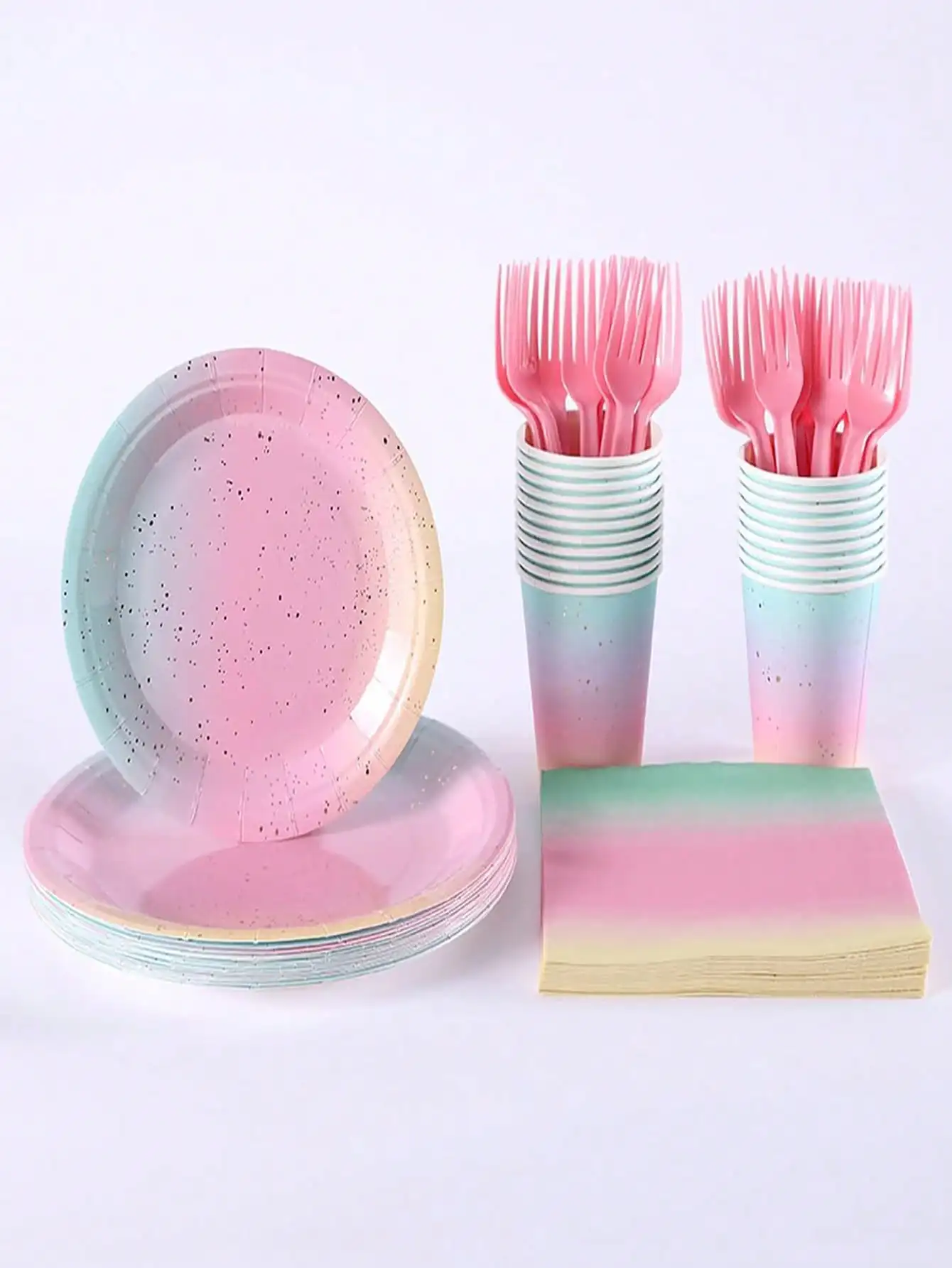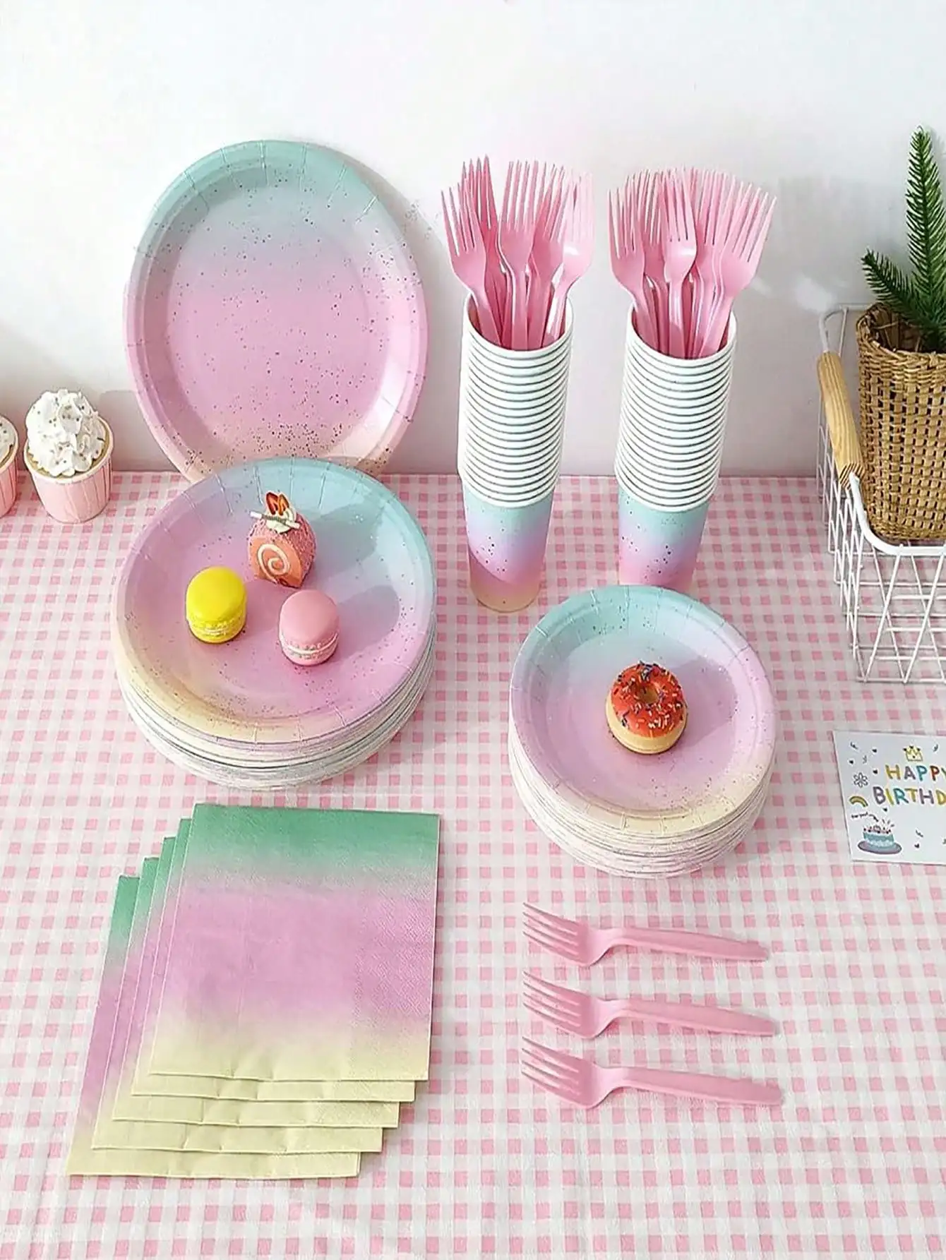 Conjunto de talheres para festa pastel arco-íris, prato de papel descartável, guardanapo, copo, garfo, utensílios de mesa para festa de aniversário, batizado, casamento
