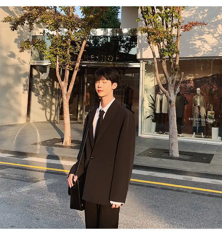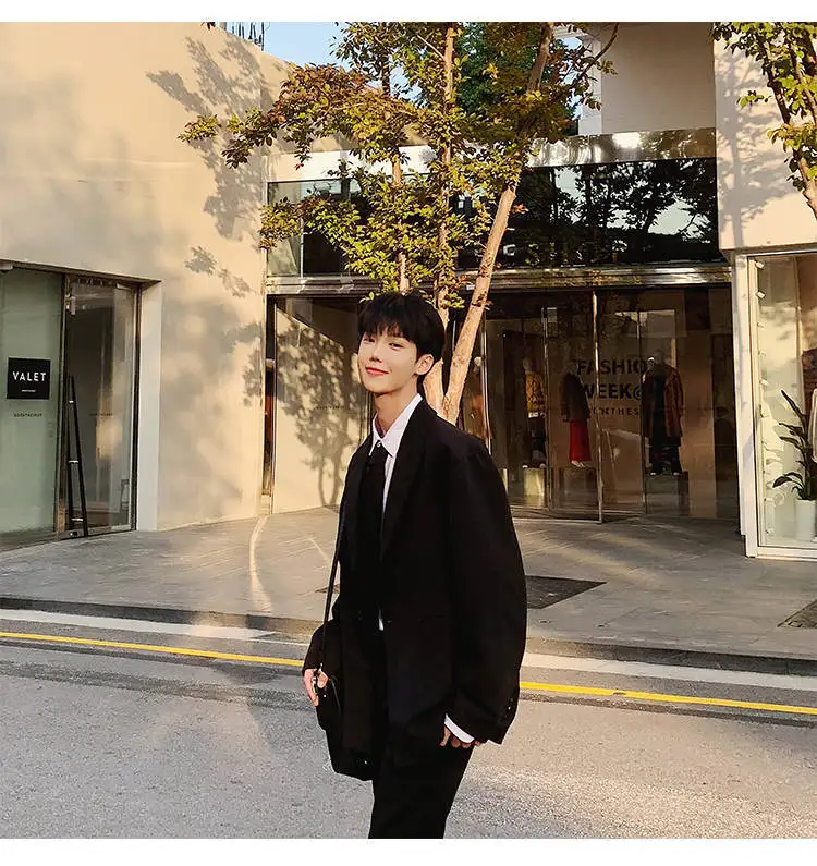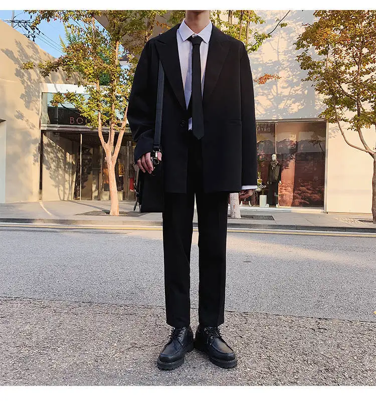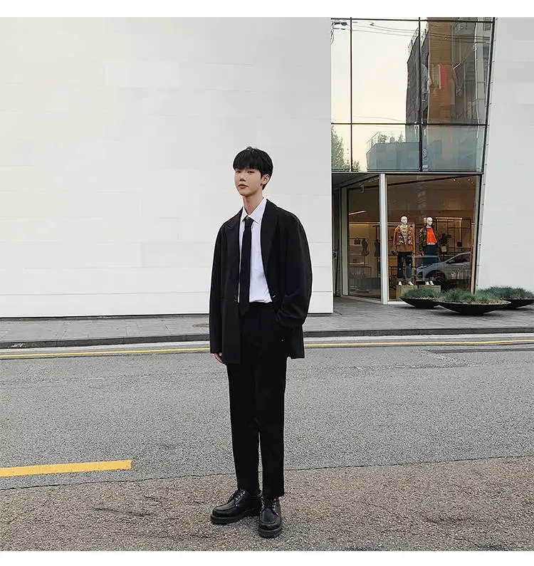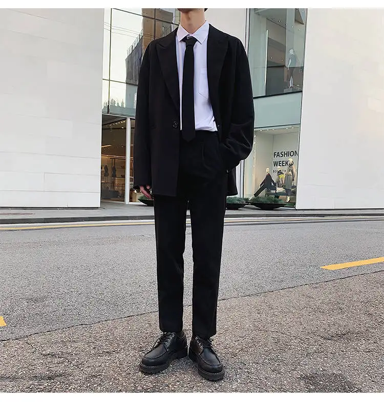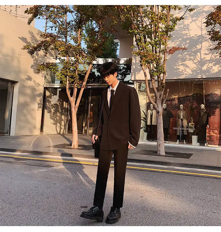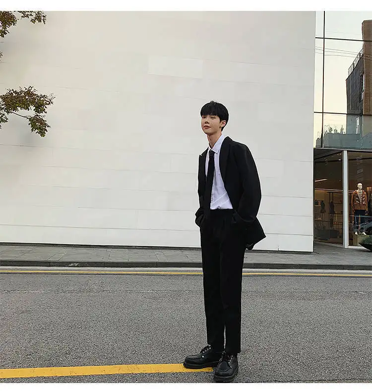 - > Conjunto de Terno Slim Fit Masculino Outono Inverno Estilo Coreano Csa e Calças Casual Jovem Estilo Britânico Universitári...
