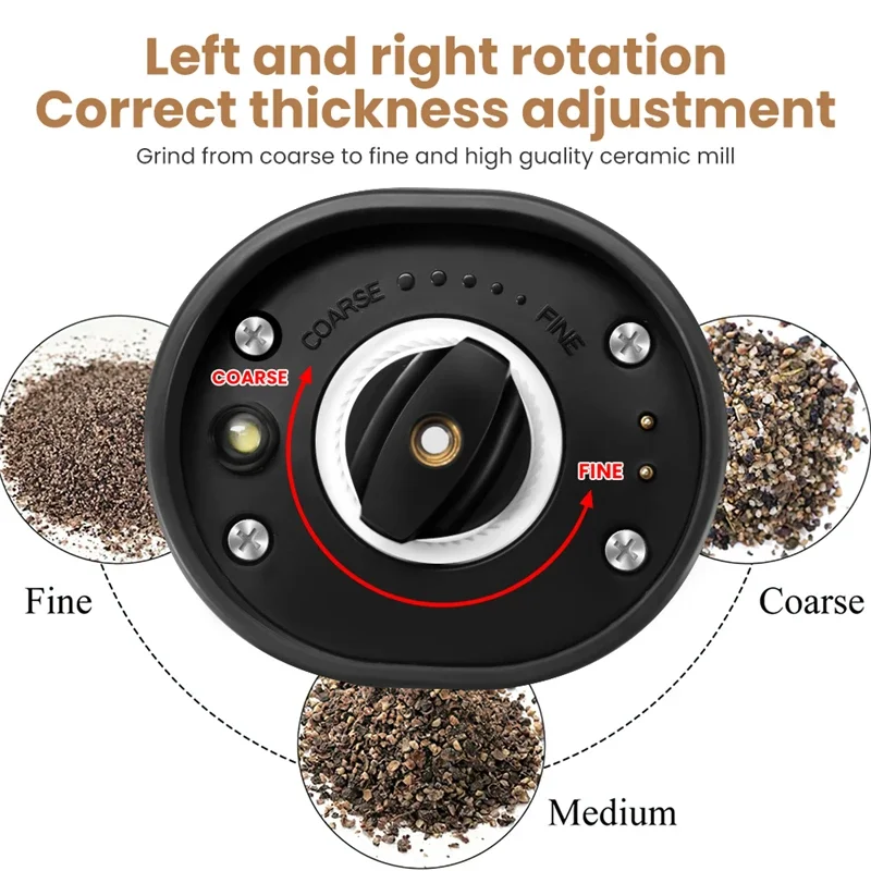 Conjunto elétrico automático de moedor de sal e pimenta com luz led conjunto moinho de especiarias ajustável moedor de especiarias ferramentas de cozinha