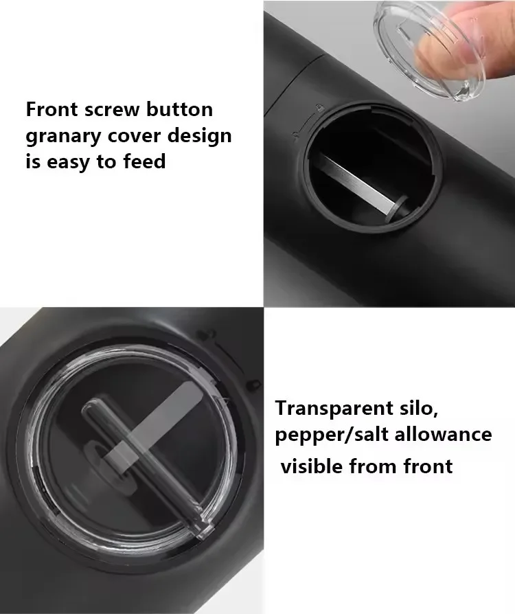 4.Silo transparente com equilíbrio pimenta/sal visível na frente