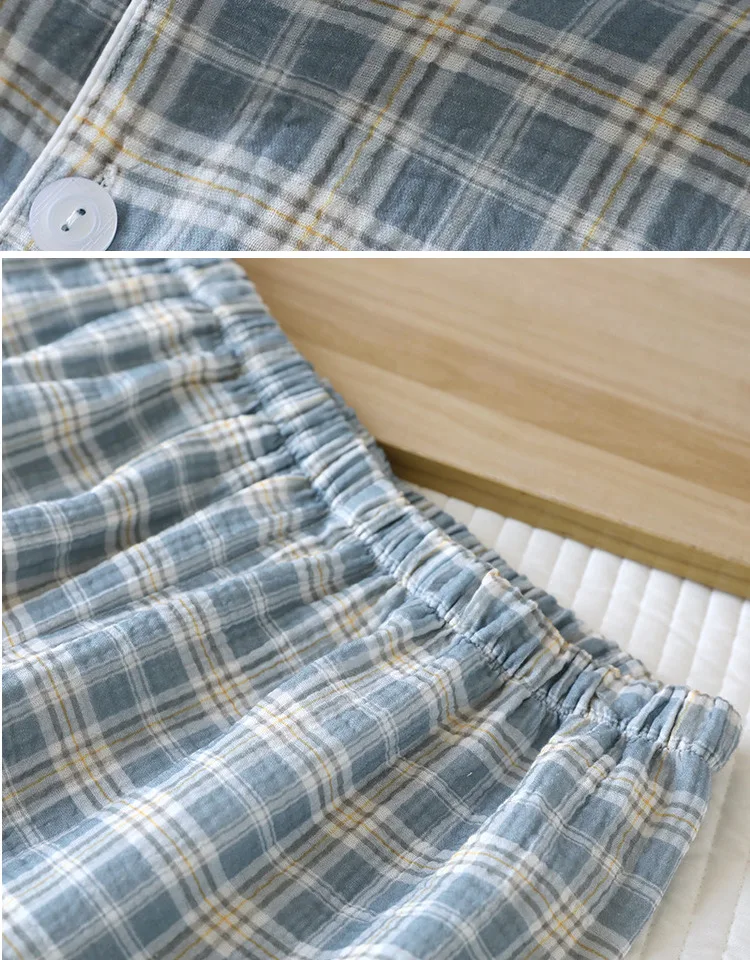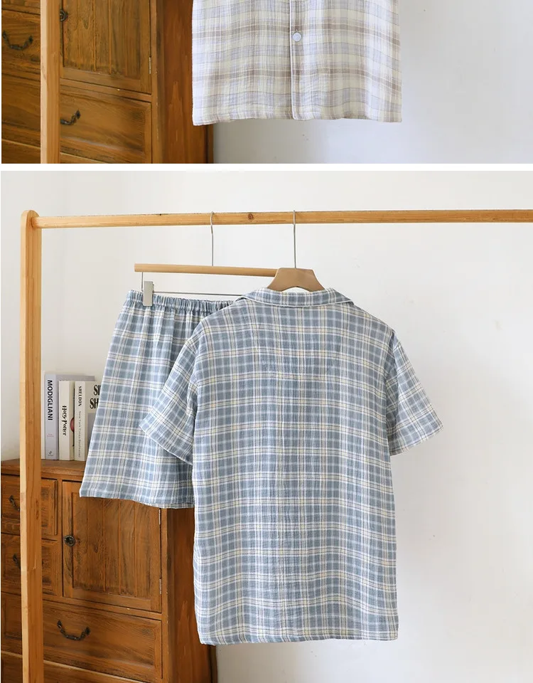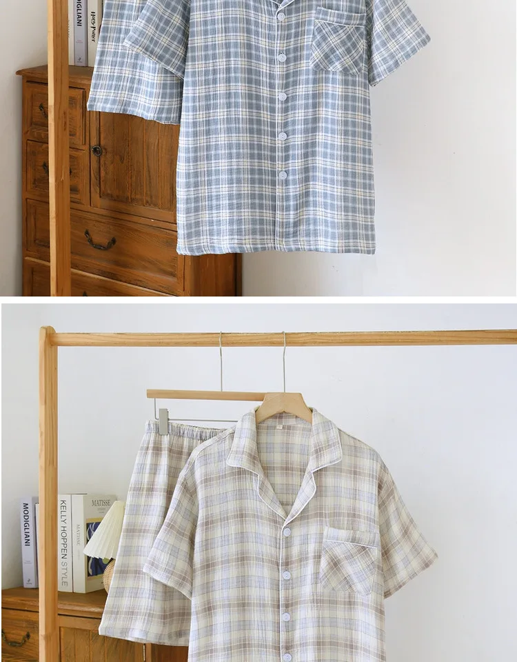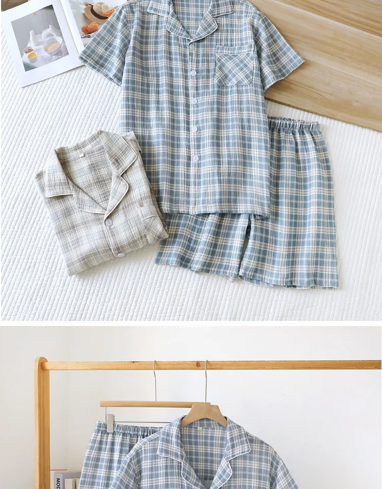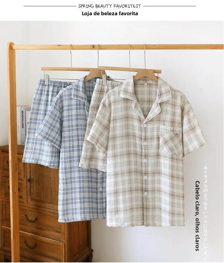 Conjunto Masculino de Verão Leve em Aodão Puro com Manga Curta, Roupa Casual para Casa, Pijama Xadrez Tamanho ande para U...