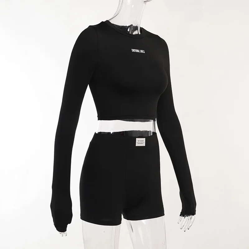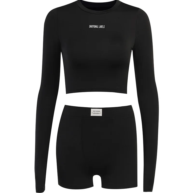 Conjunto versátil esportivo de duas peças feminino, gola redonda, longo, manga curta, shorts 3/4, moda europeia e americana, primavera, verão