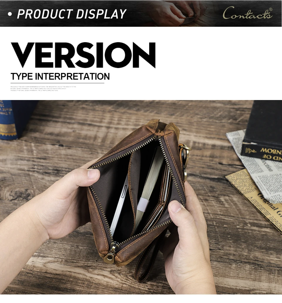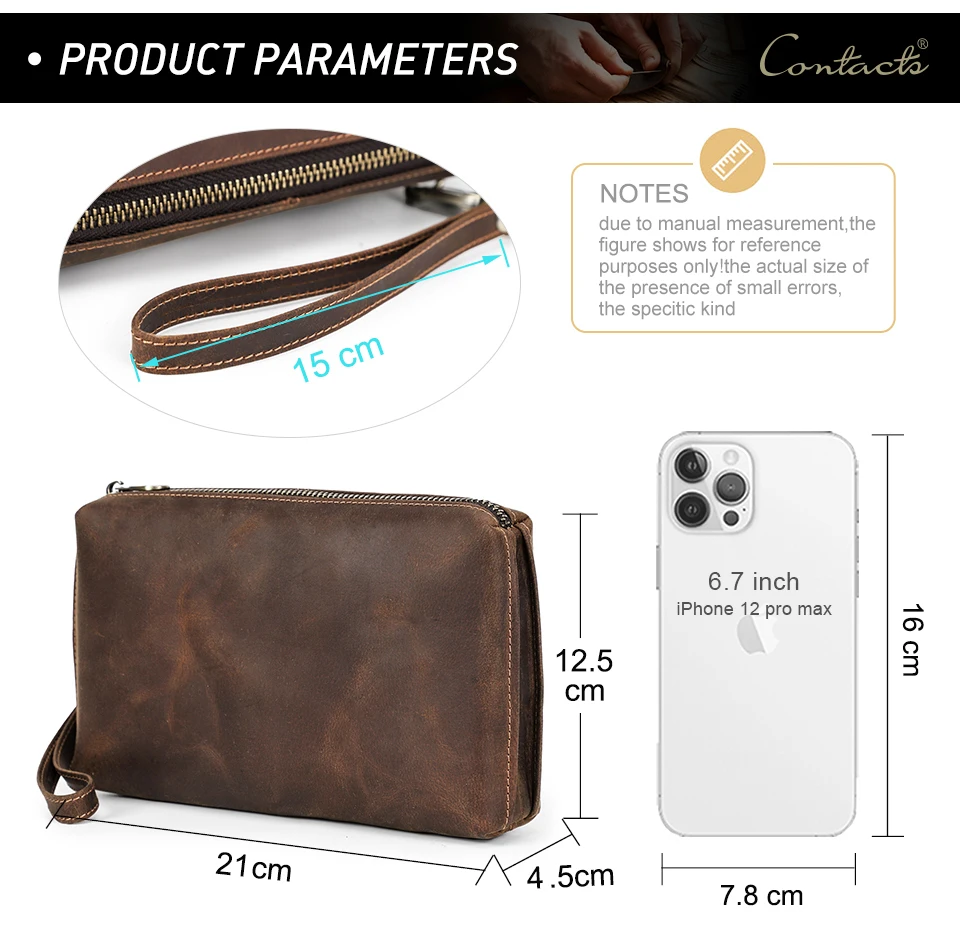 - > Contact's vintage masculino bolsa de embreagem rfid couro genuíno embreagem carteira saco casual longo bolsa grande capacidade bolsa viagem masculino