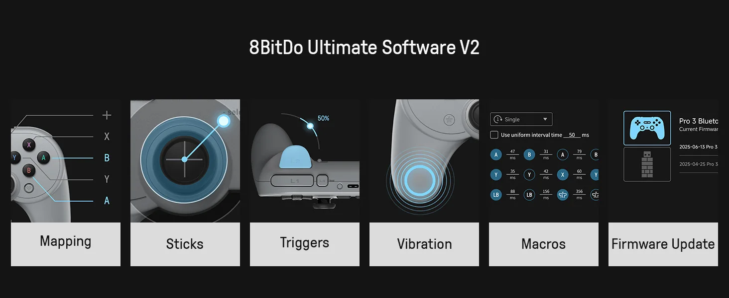 ? Controlador Bluetooth 8BitDo Pro 3, gamepad tipo C sem fio com joysticks TMR para NS Nintendo Switch 2, PC Windows,ANDROID, iOS