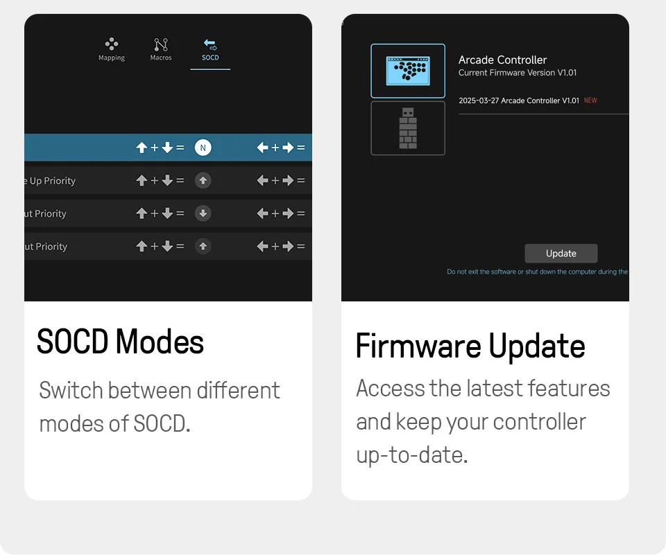 Experimente precisão incomparável e entradas ultrarrápidas com um design de arcade completo e layout preciso de quatro movimentos.Execute combos com maior velocidade e precisão do que nunca.Construído para jogos de luta competitivos – tudo com ótimo valor.