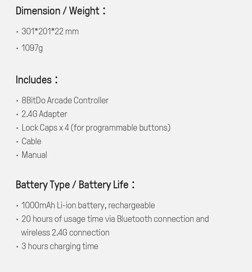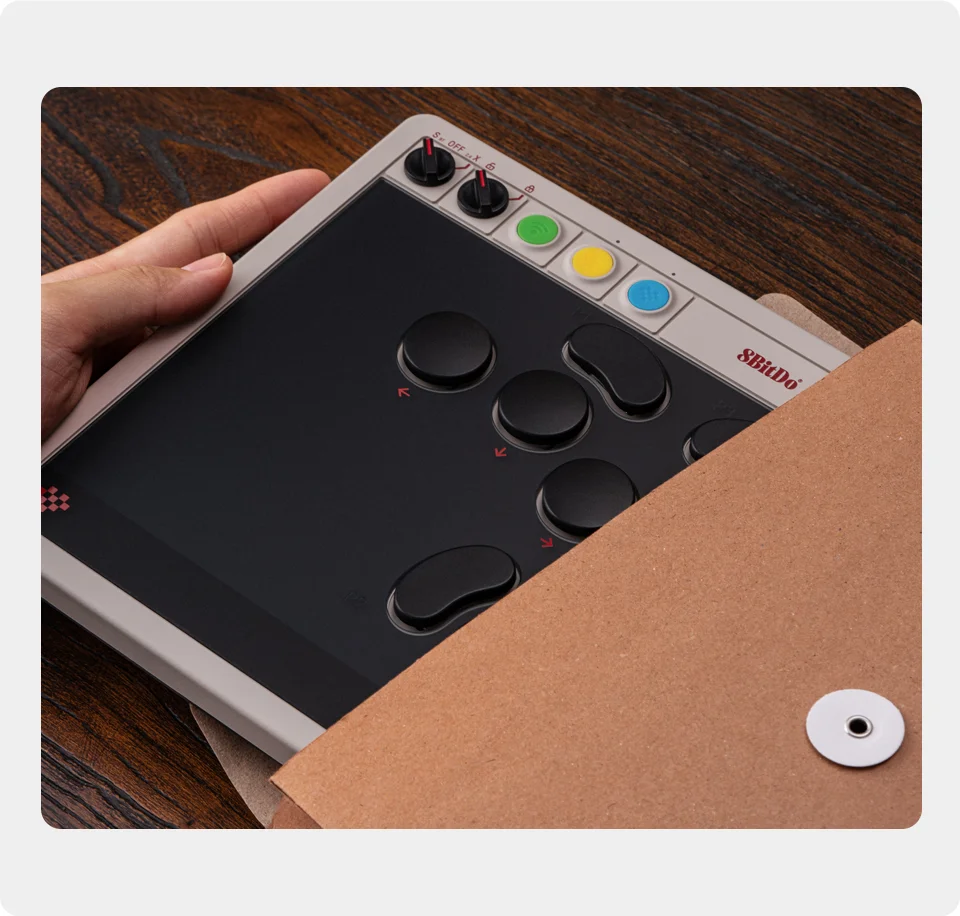 Quase do mesmo tamanho de uma folha de papel A4, e tão fina quanto 1,6 cm - quase 1/3 da espessura do 8BitDo Arcade Stick.Lute a qualquer hora, em qualquer lugar.