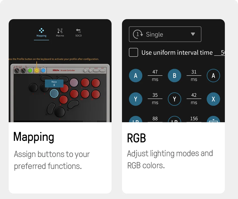 Personalize seu controlador com o software 8BitDo Ultimate e tenha controle de elite sobre cada peça do seu controlador.